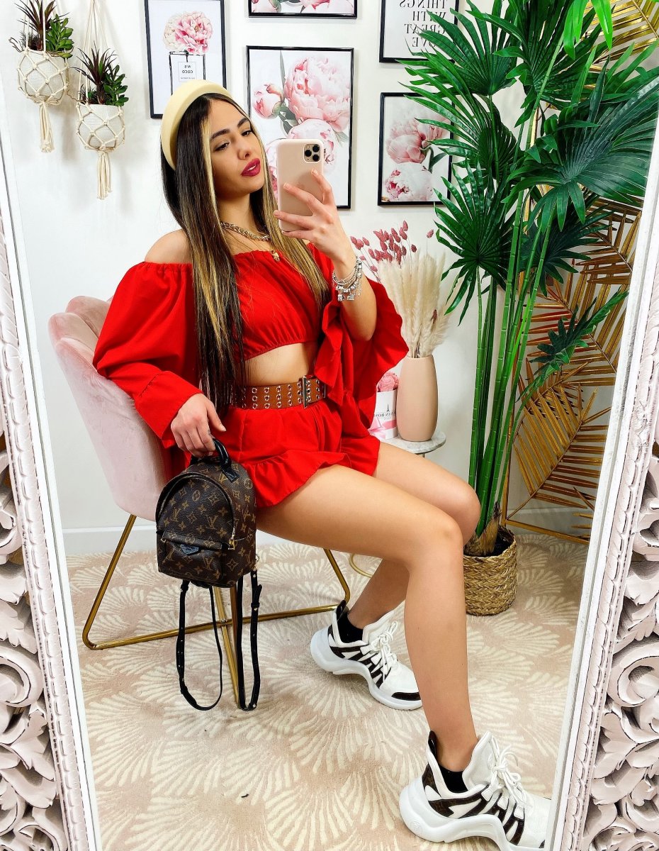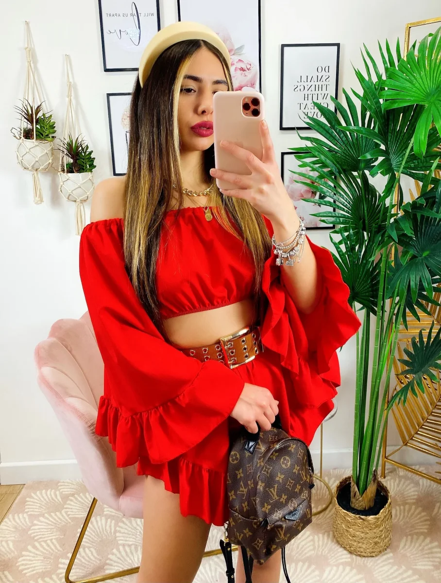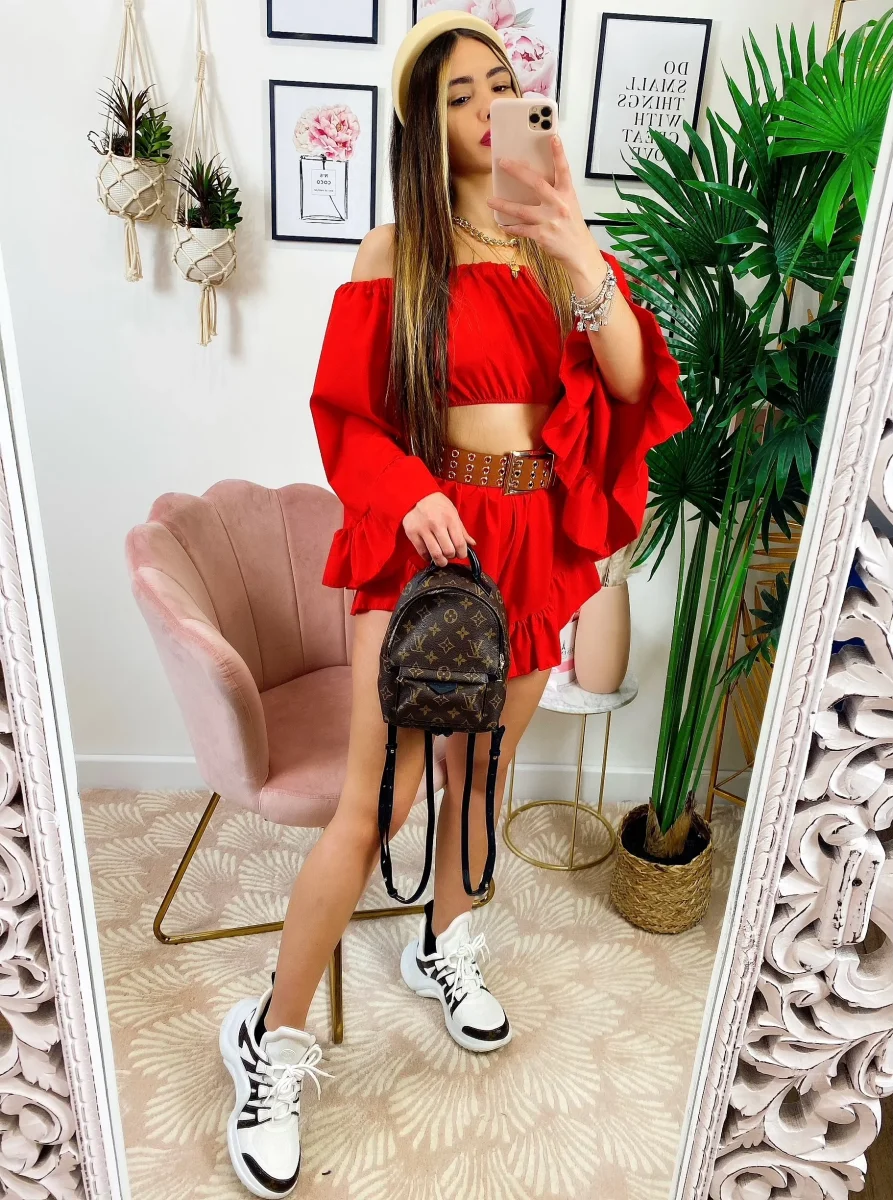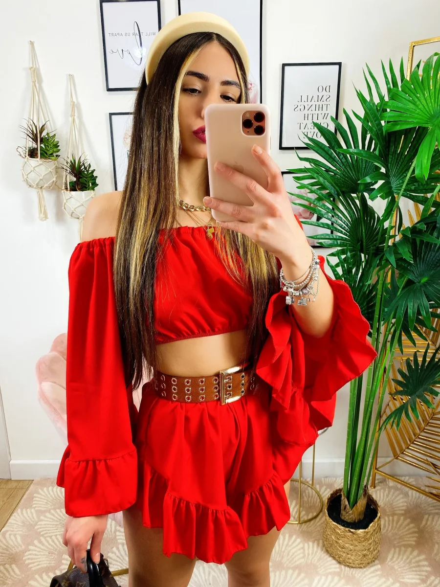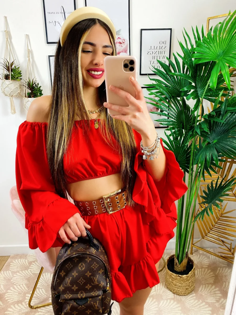 Completo composto da top e Short. Particolarissimi tagli per un look wow.