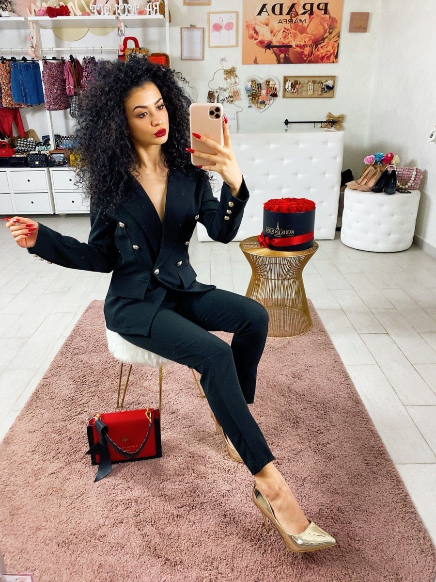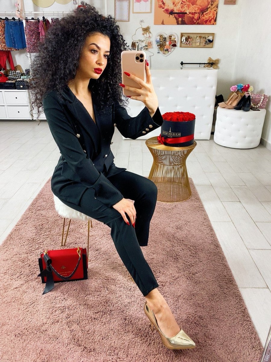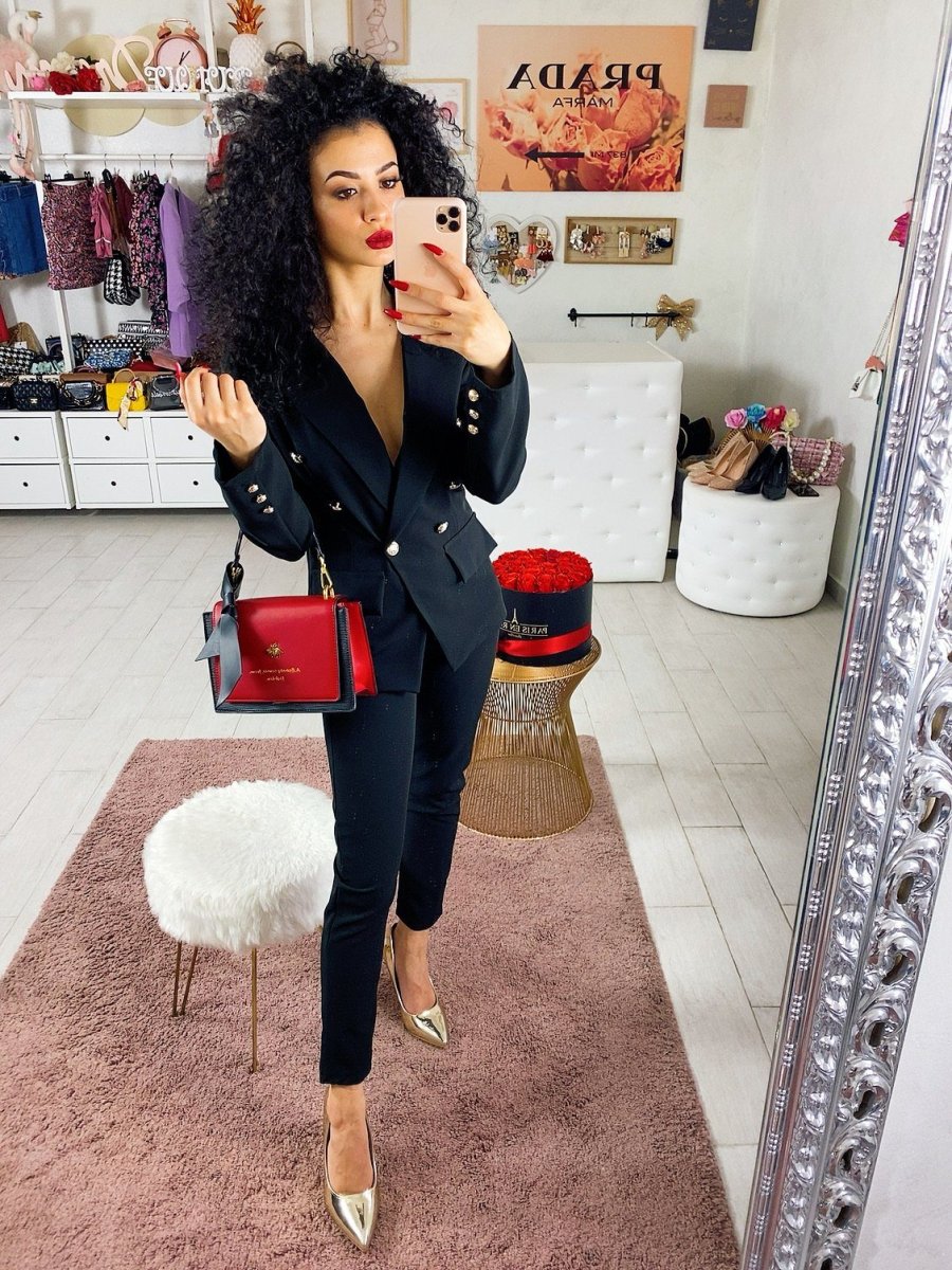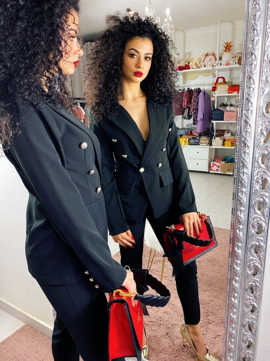 Completo composto da pantalone e giacca dalla vestibilità piccola. Leggermente elasticizzato.
