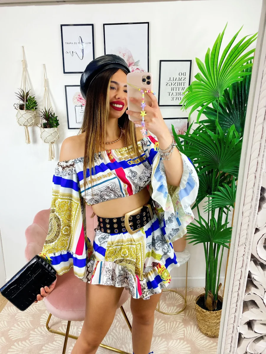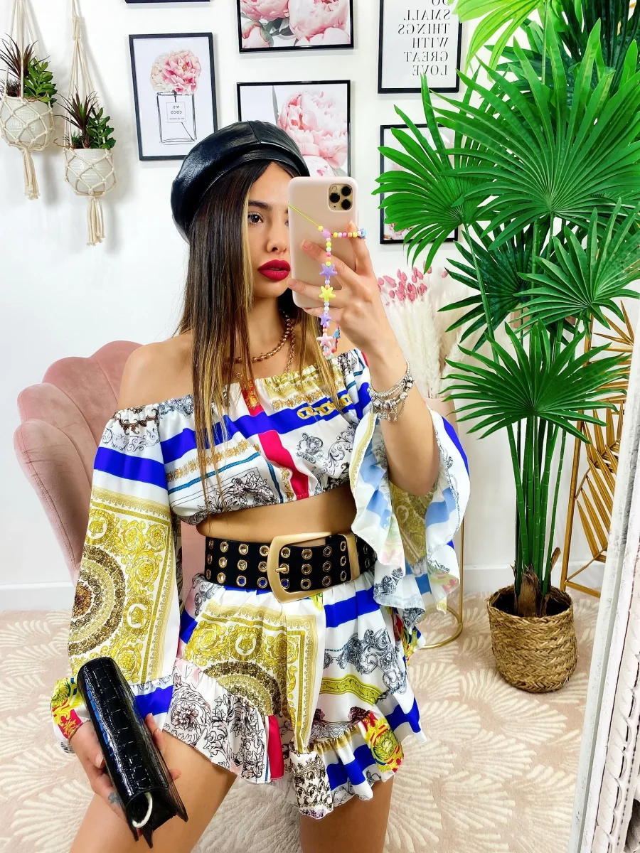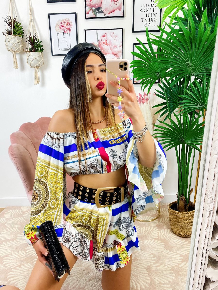 Completo composto da top e Short. Particolarissimi tagli per un look wow.
