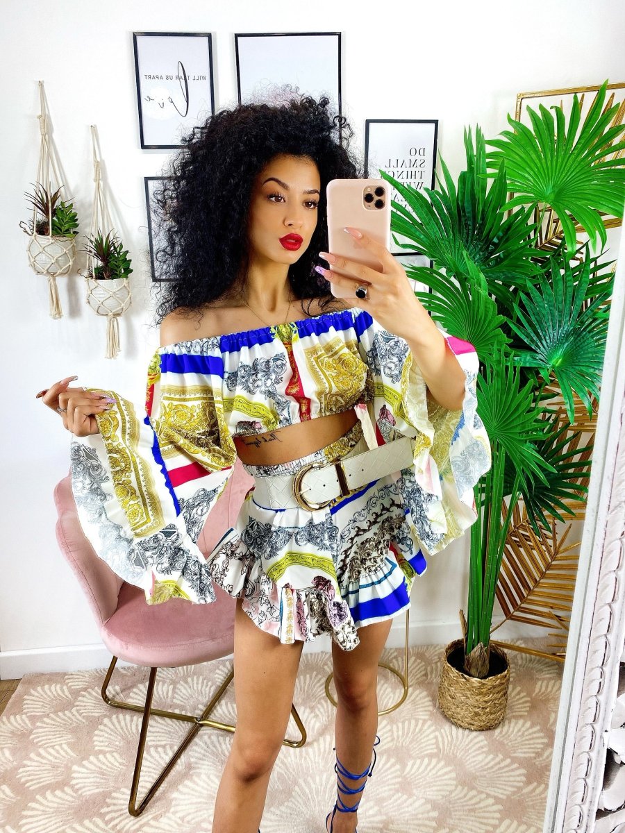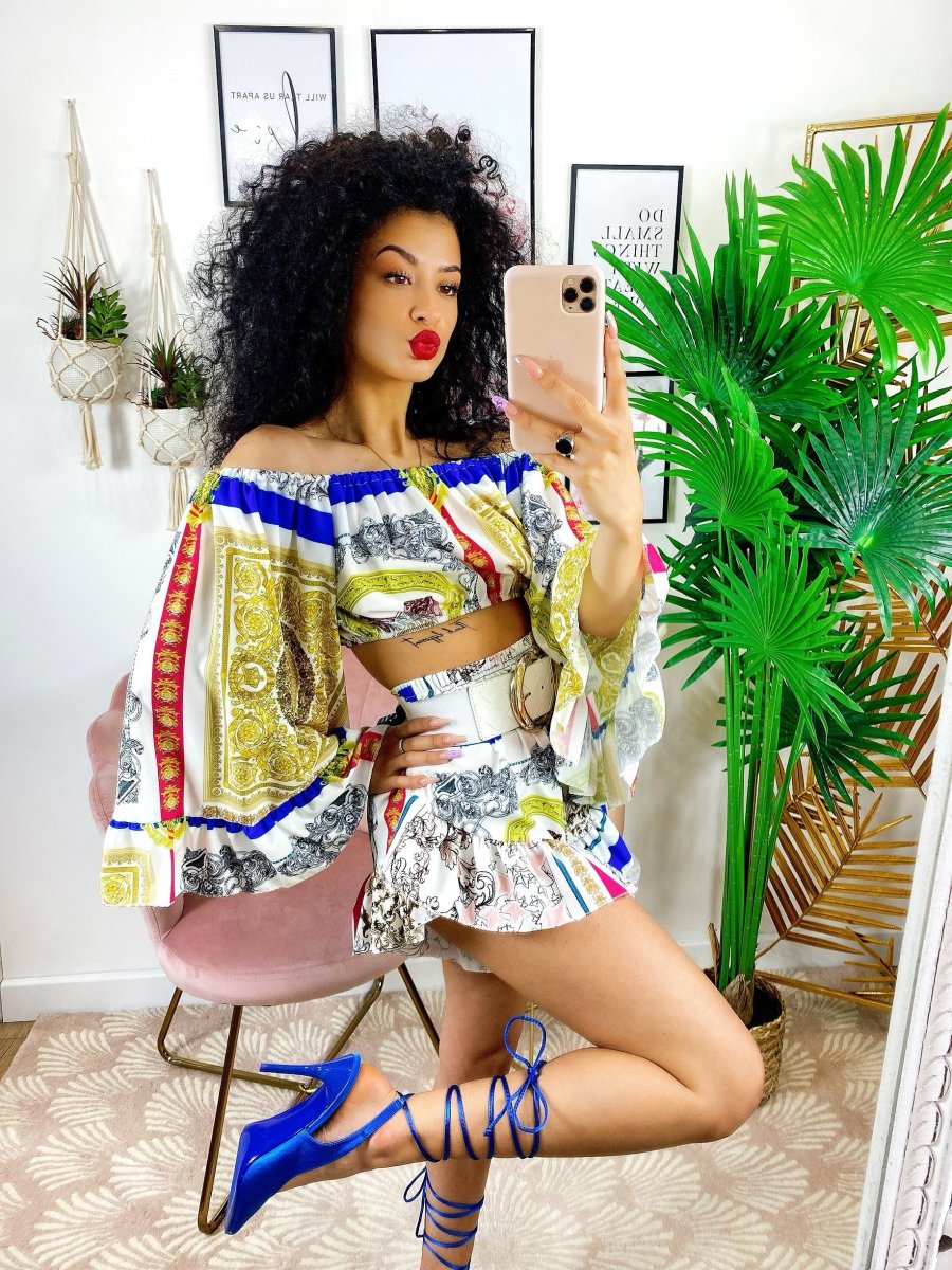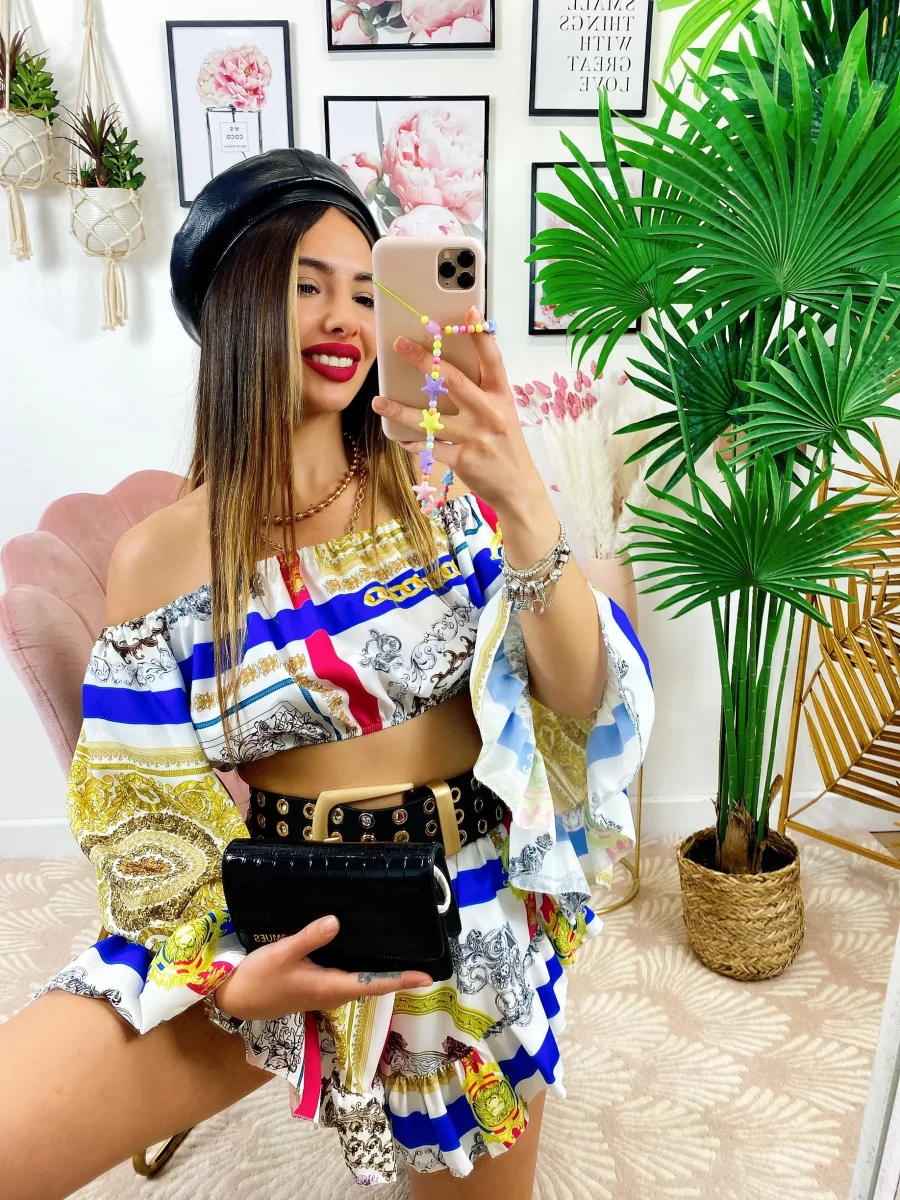 Completo composto da top e Short. Particolarissimi tagli per un look wow.