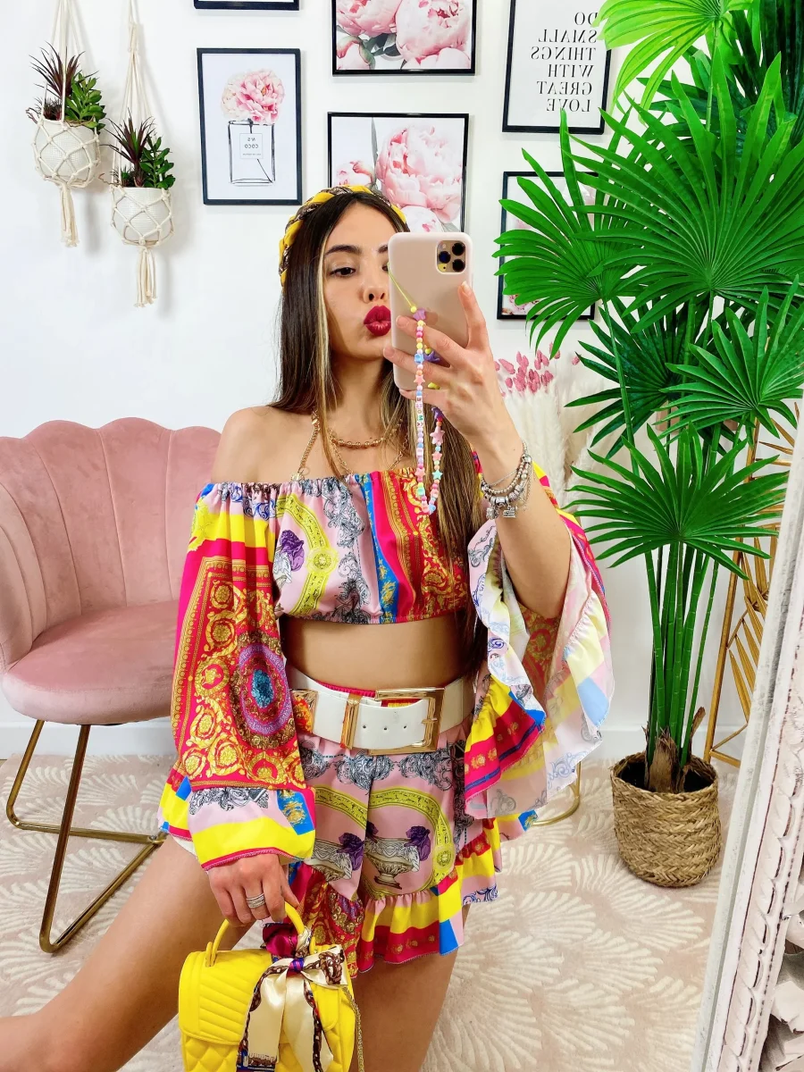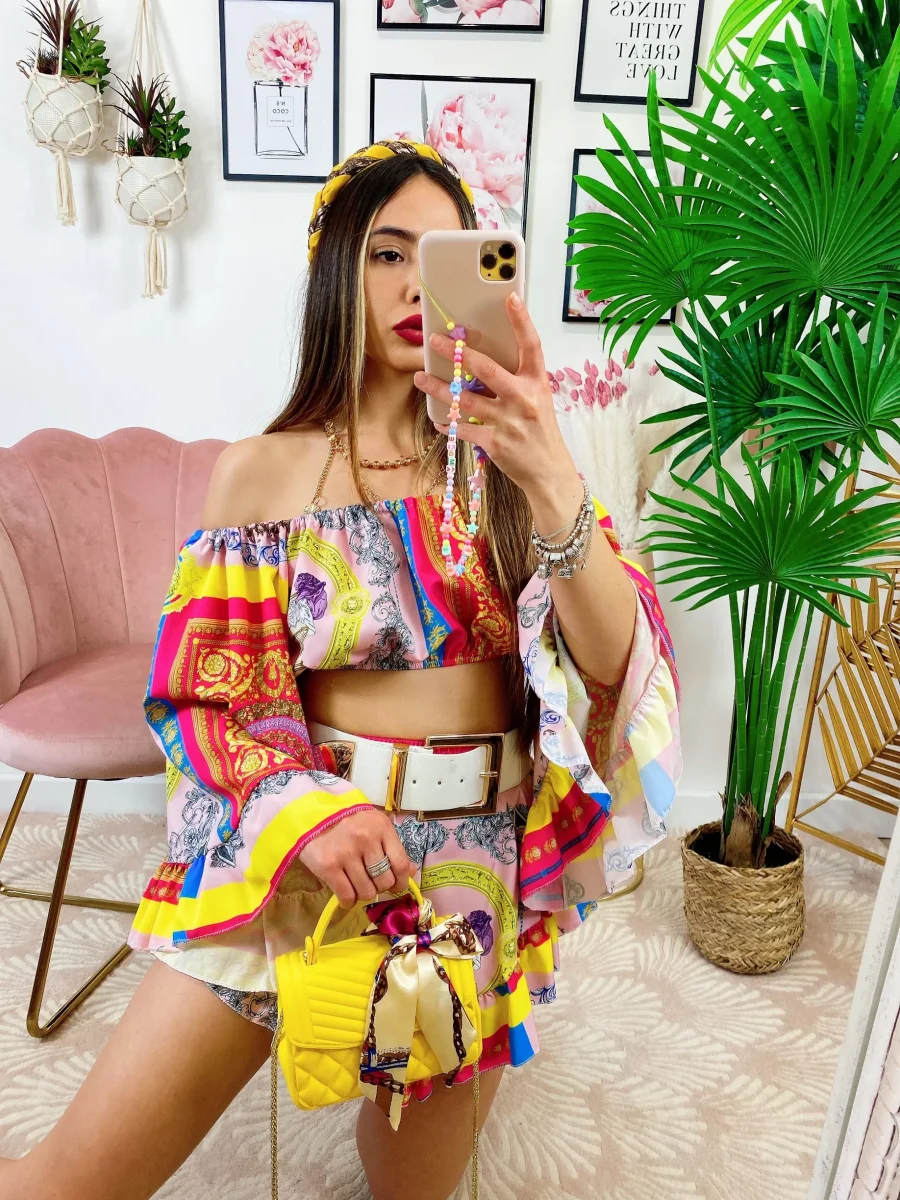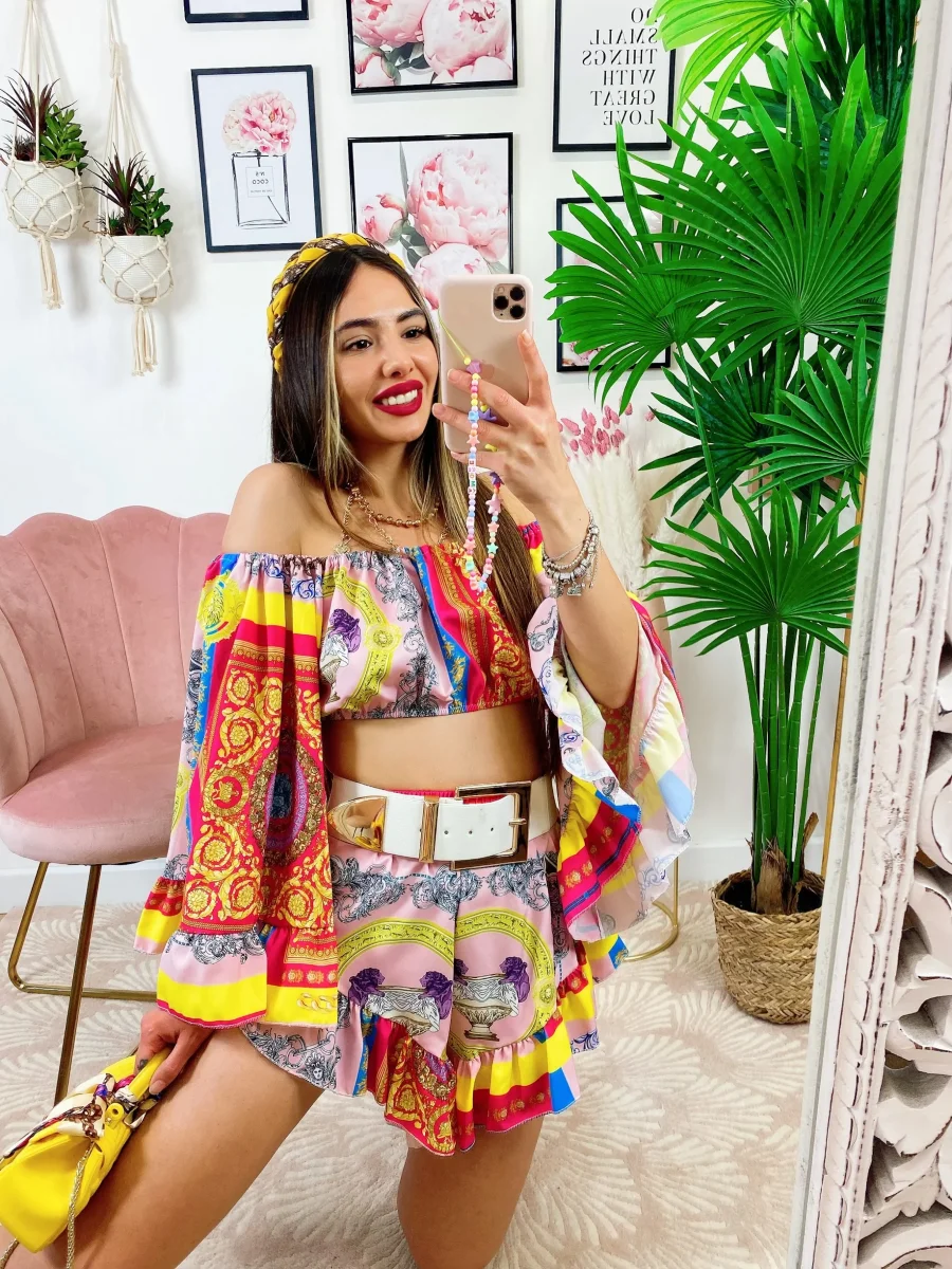 Completo composto da top e Short. Particolarissimi tagli per un look wow.