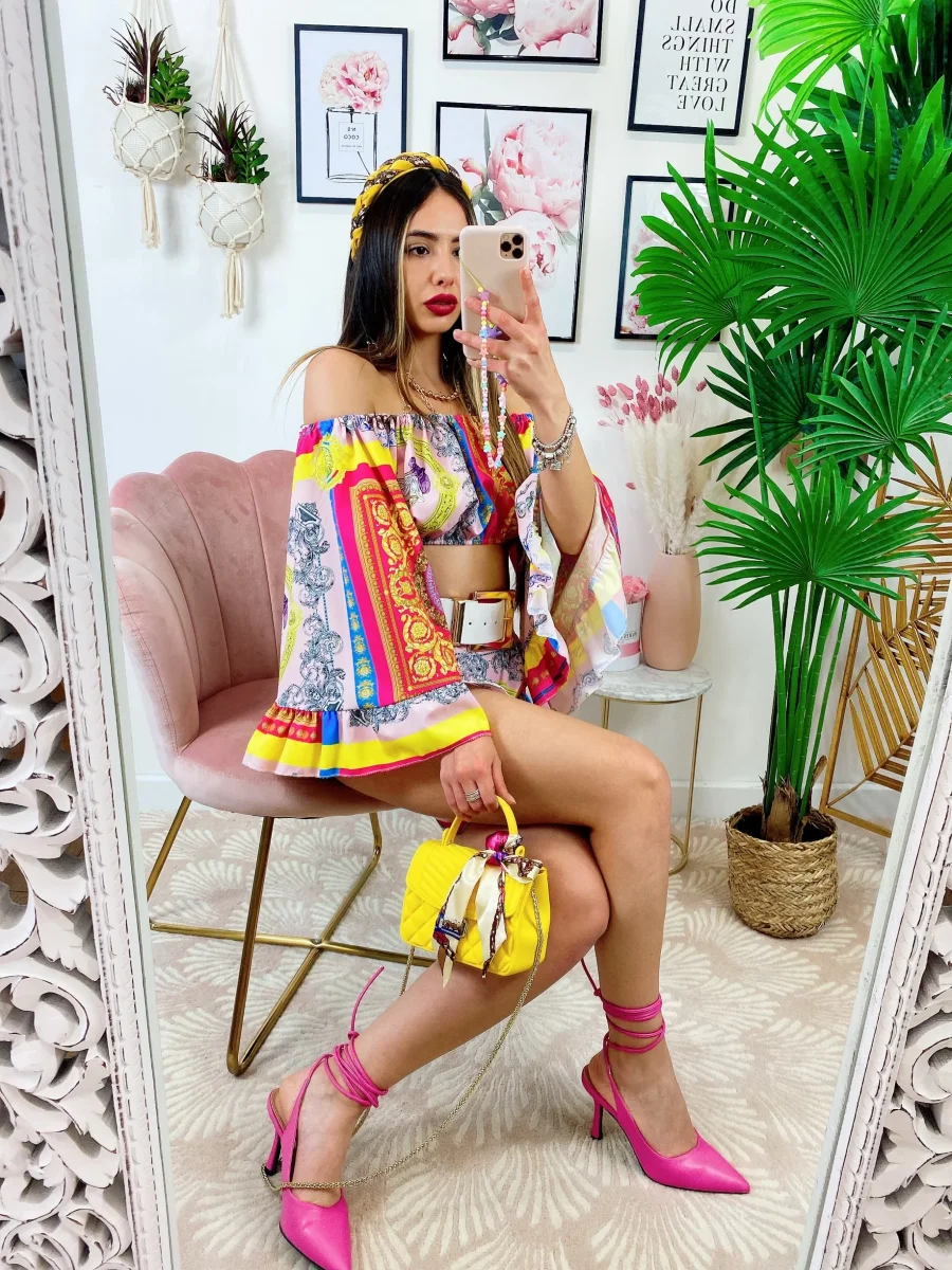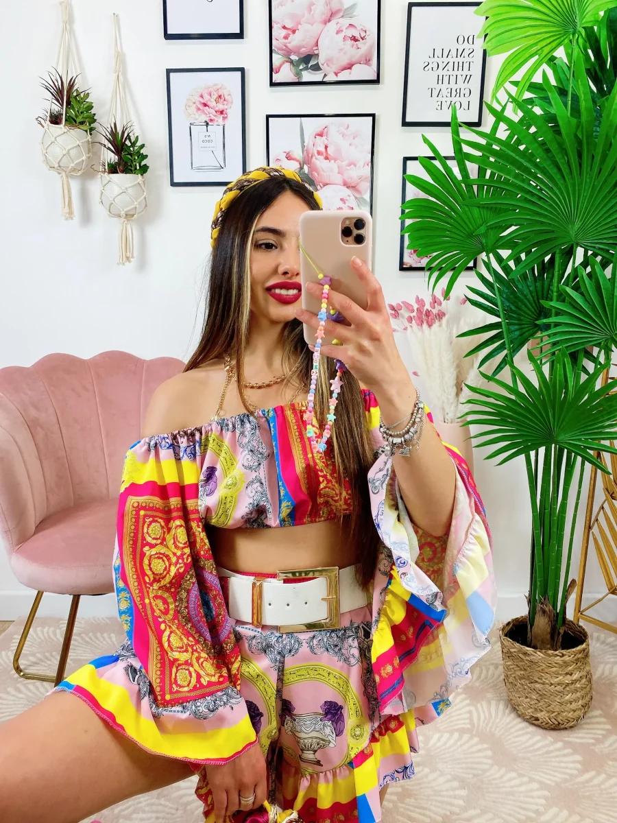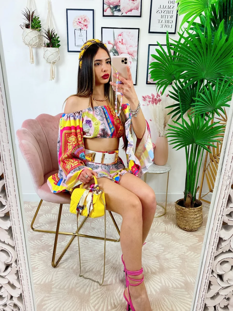 Completo composto da top e Short. Particolarissimi tagli per un look wow.