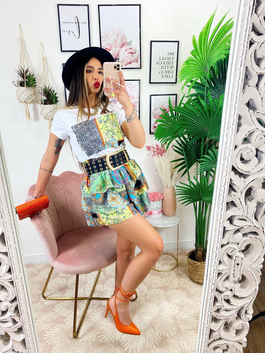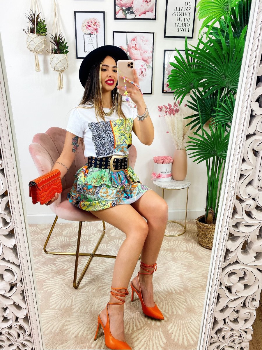 Completo etnico gonna e t-shirt base verde