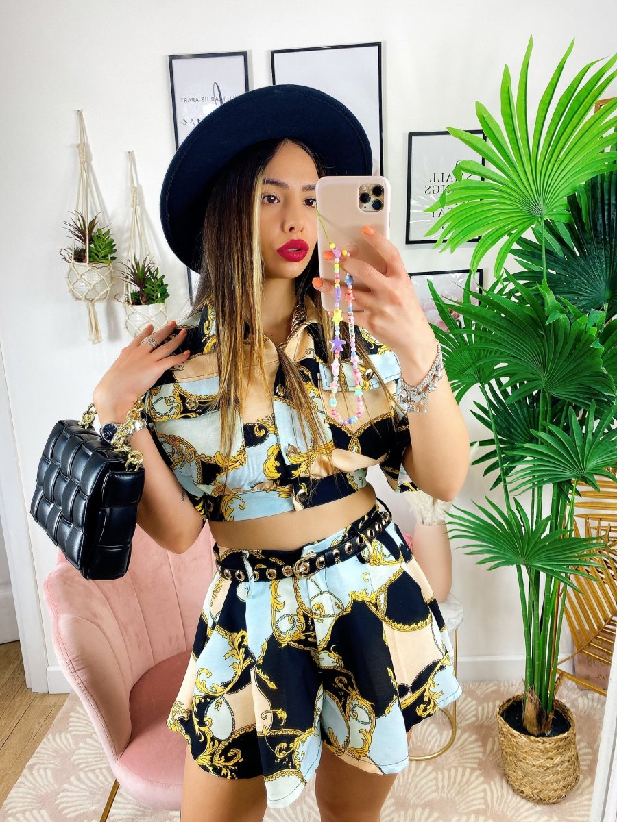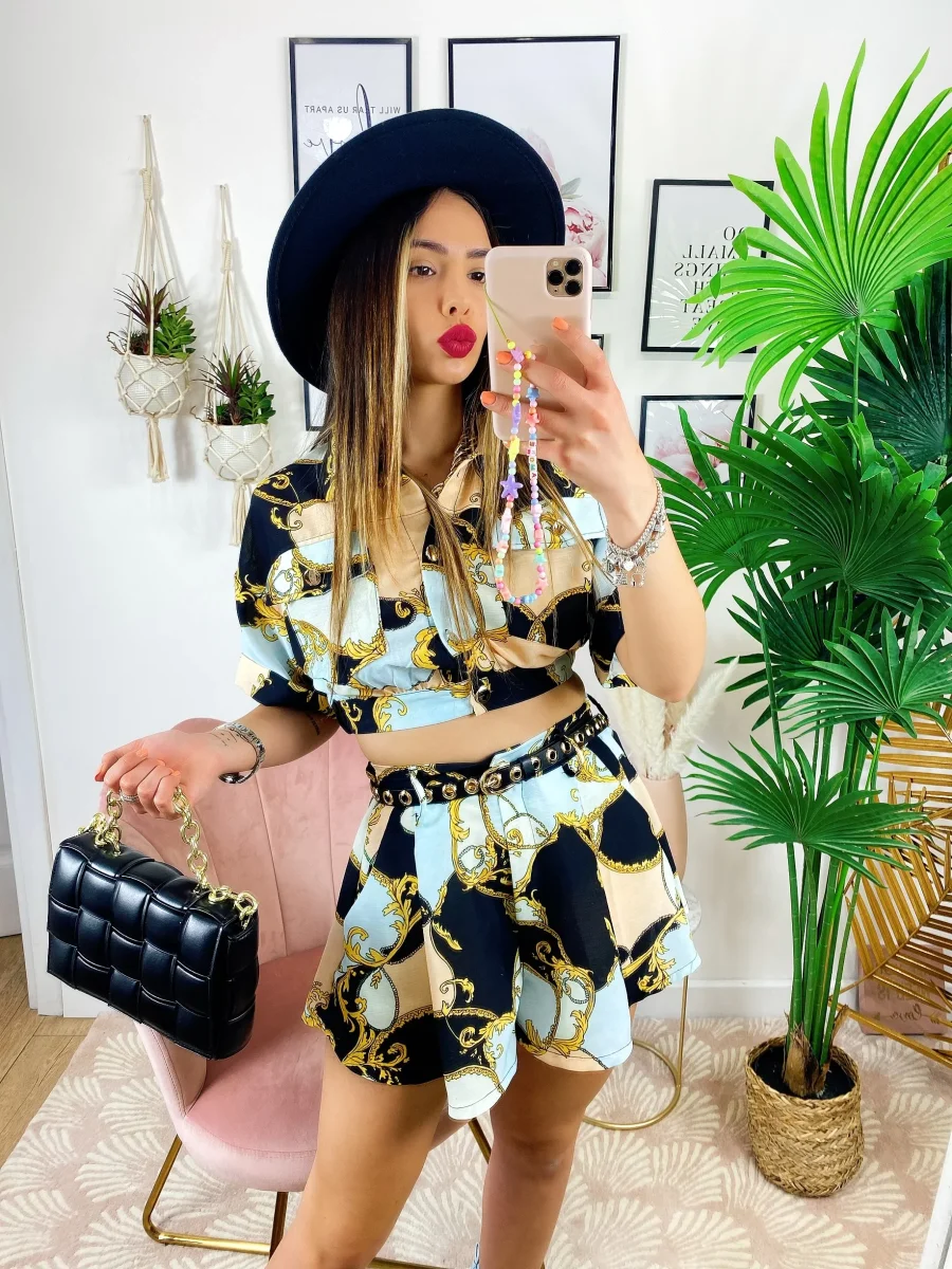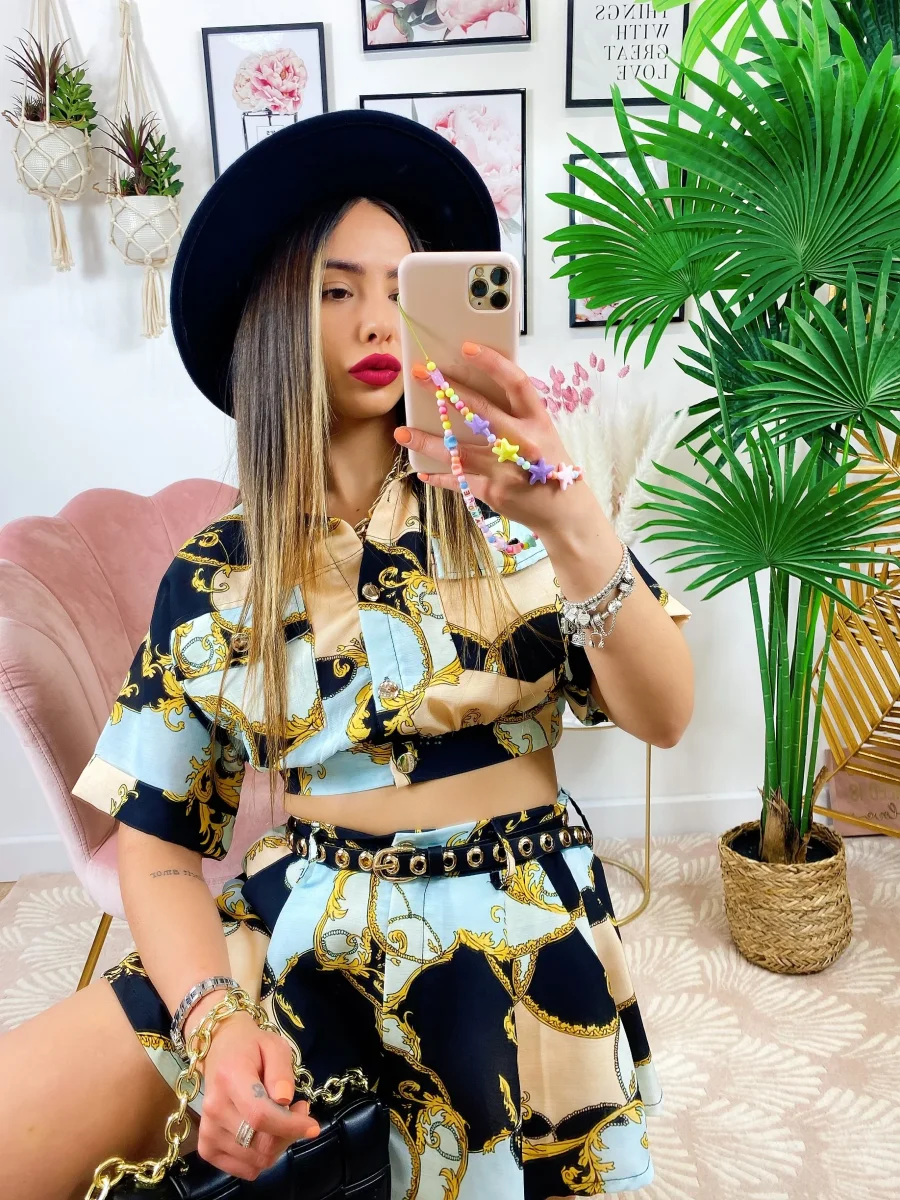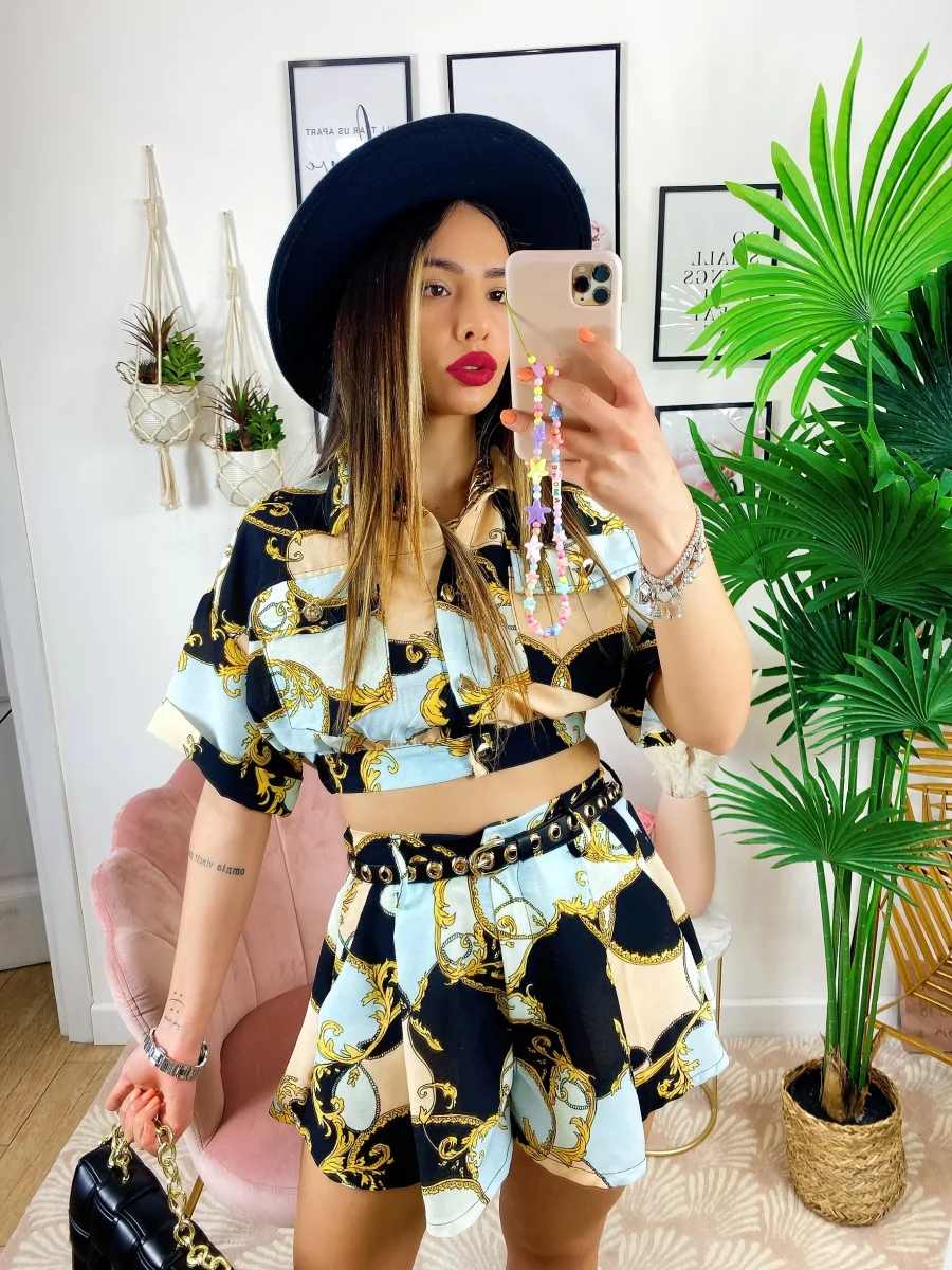 Completo etnico Short e Giacca base Nera, ottimo tessuto con stampa.