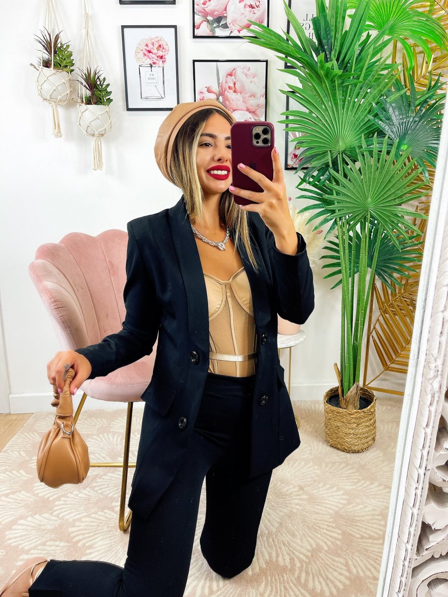 -pantalone leggermente elasticizzato con bottone e gamba finale normale.