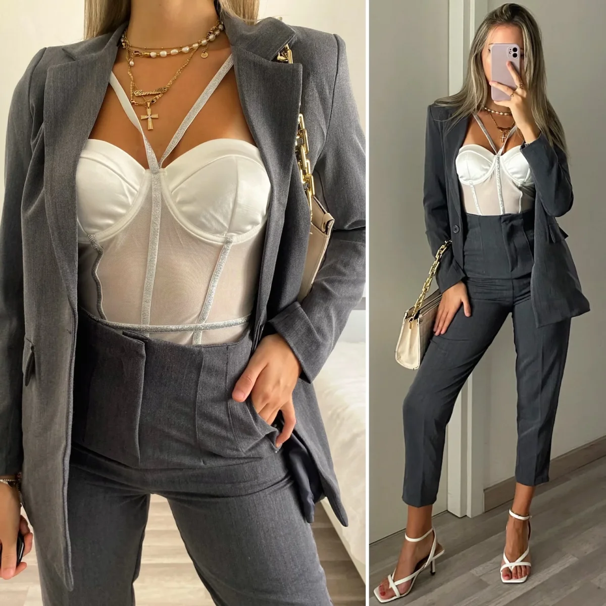 completo composto da giacca e pantalone in tessuto invernale foderato, in foto taglia M