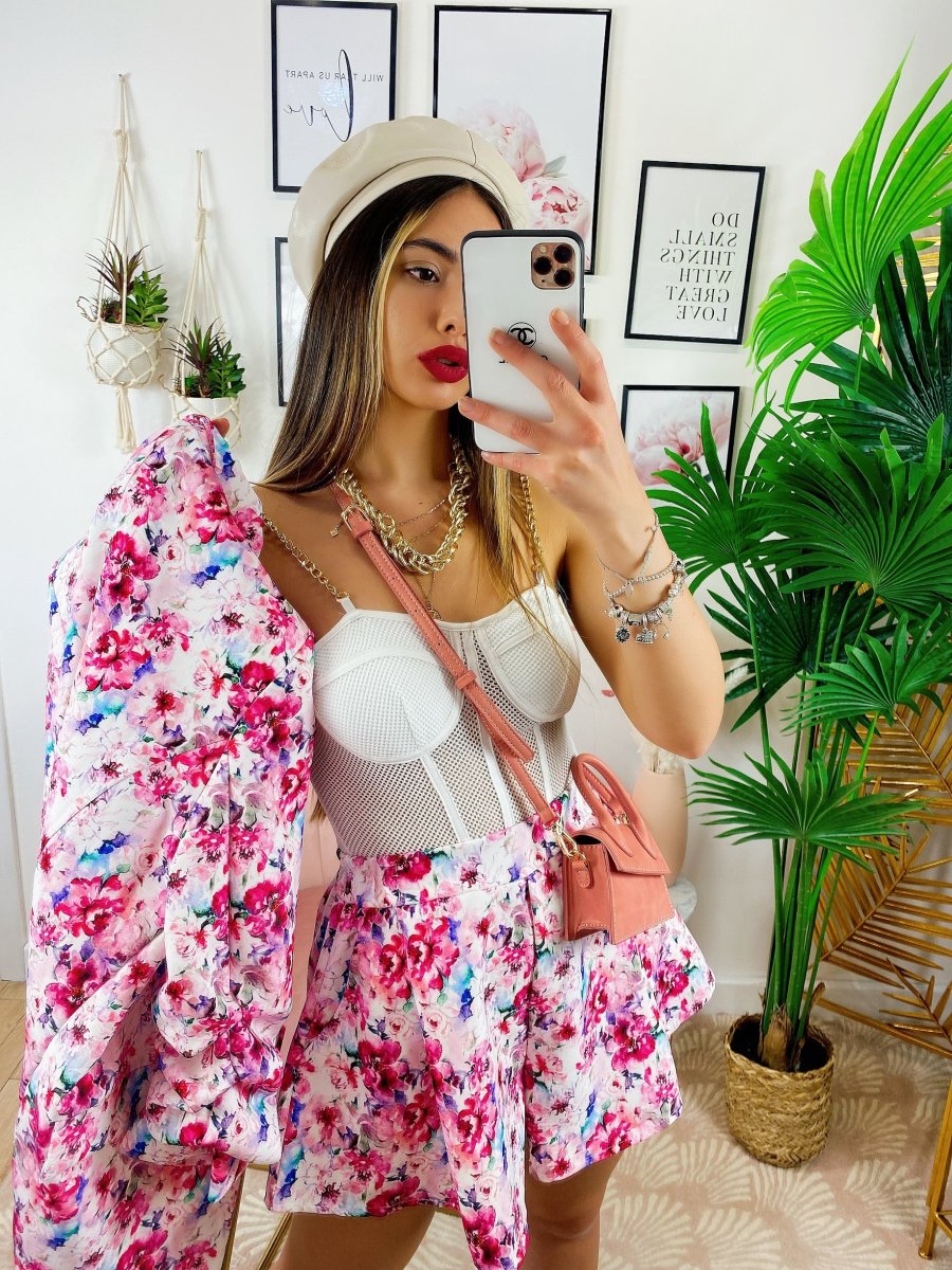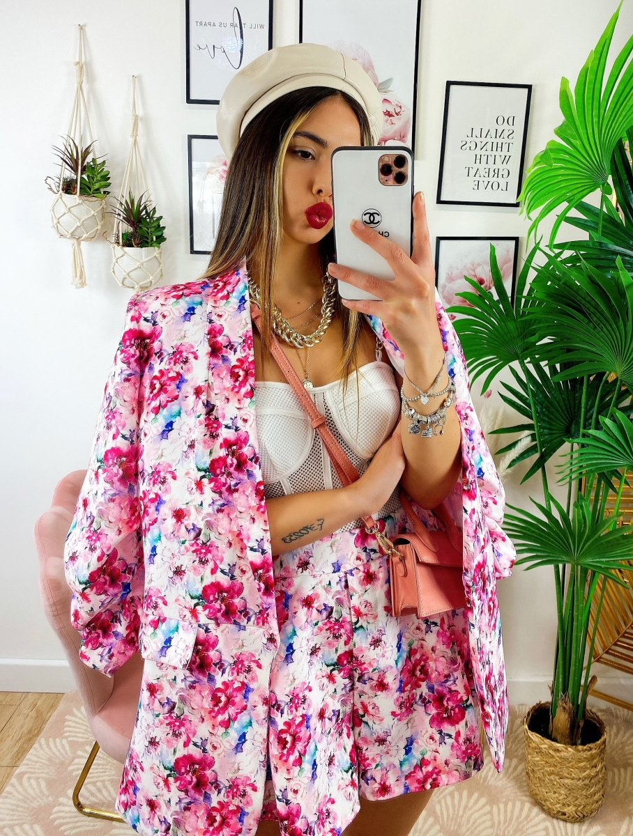 Completo Giacca e Short entrambi elasticizzati, tessuti freschi e primaverili