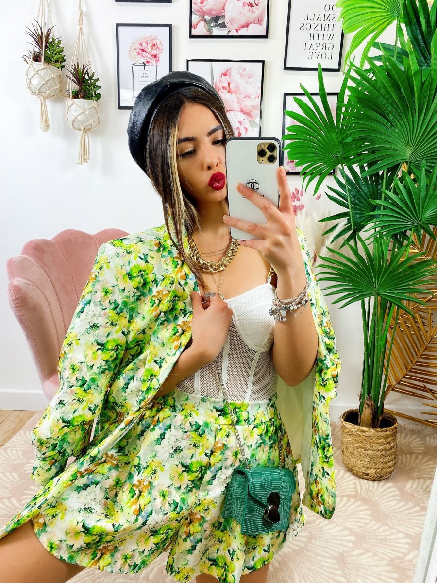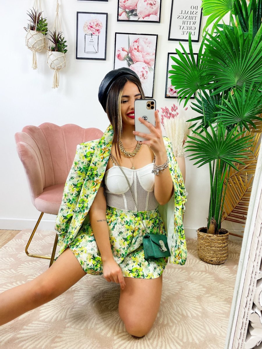 Completo Giacca e Short fiori lime