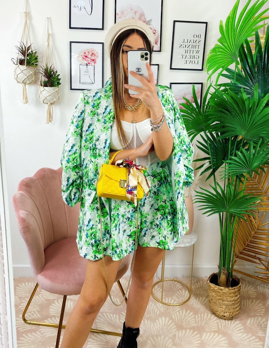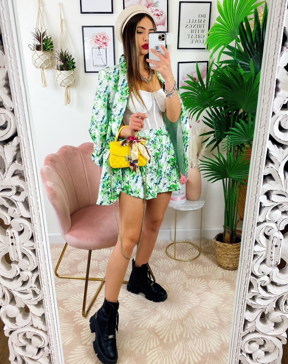 Completo Giacca e Short entrambi elasticizzati, tessuti freschi e primaverili.