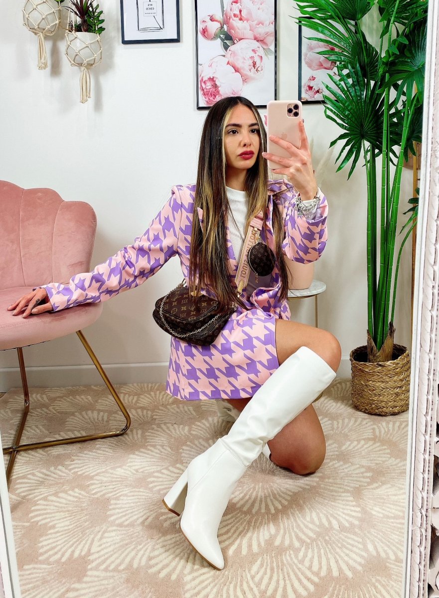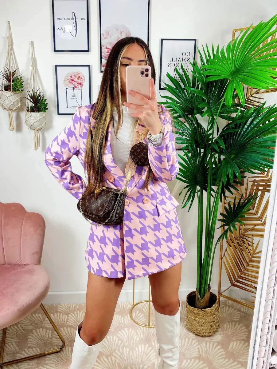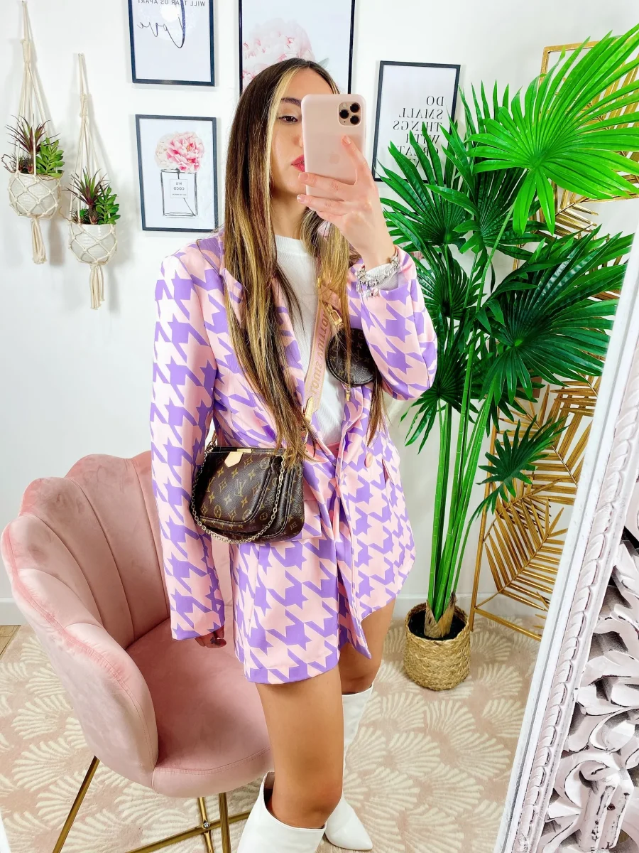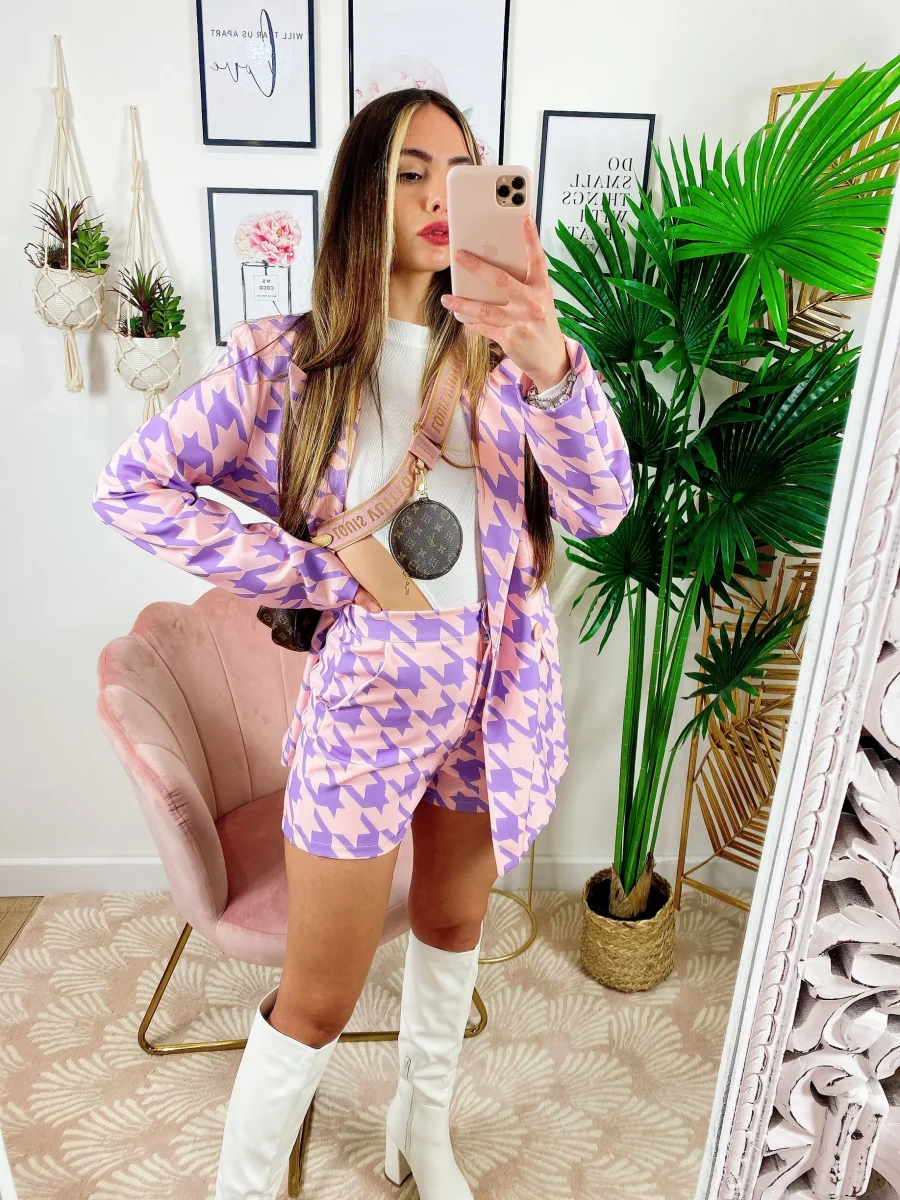Completo giacca e Short a quadri Lilla Alta qualità.