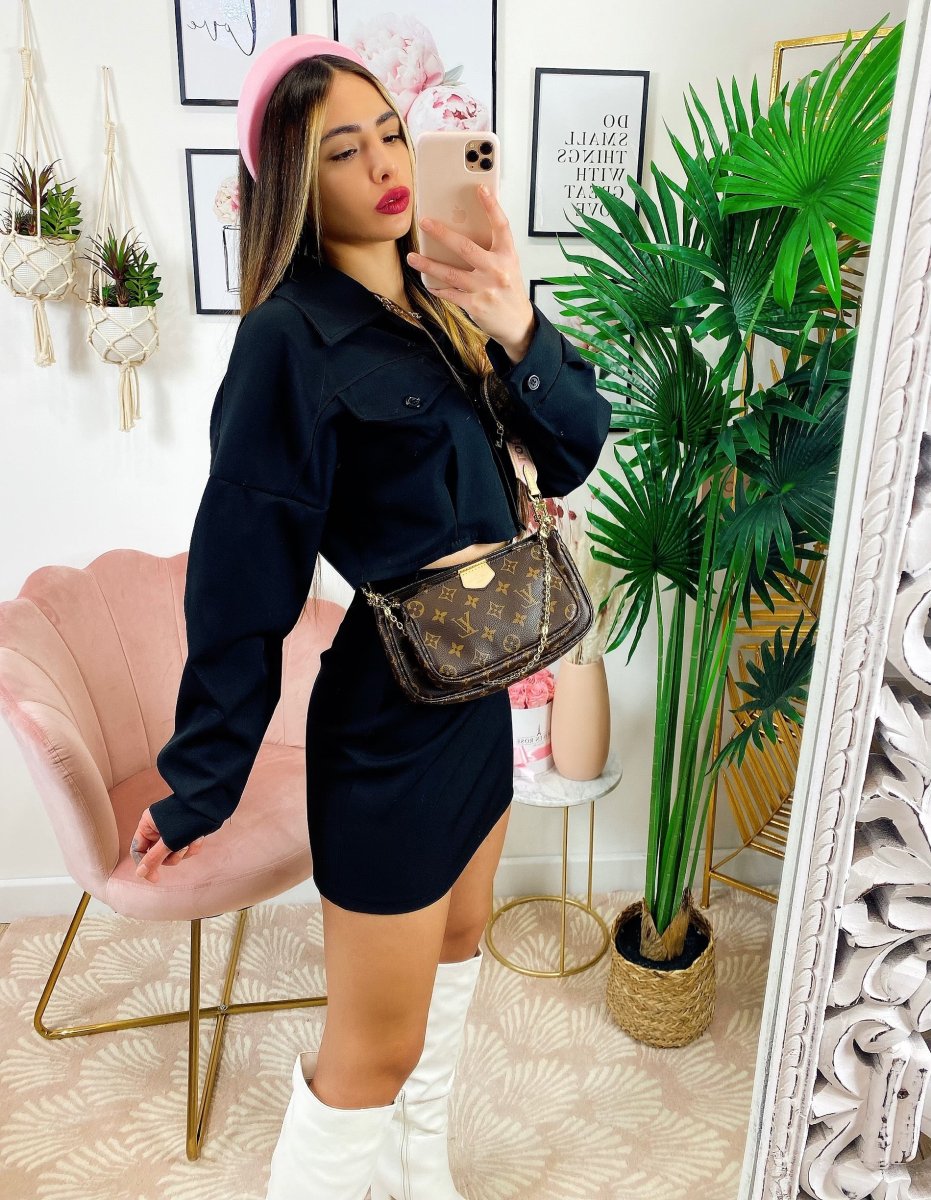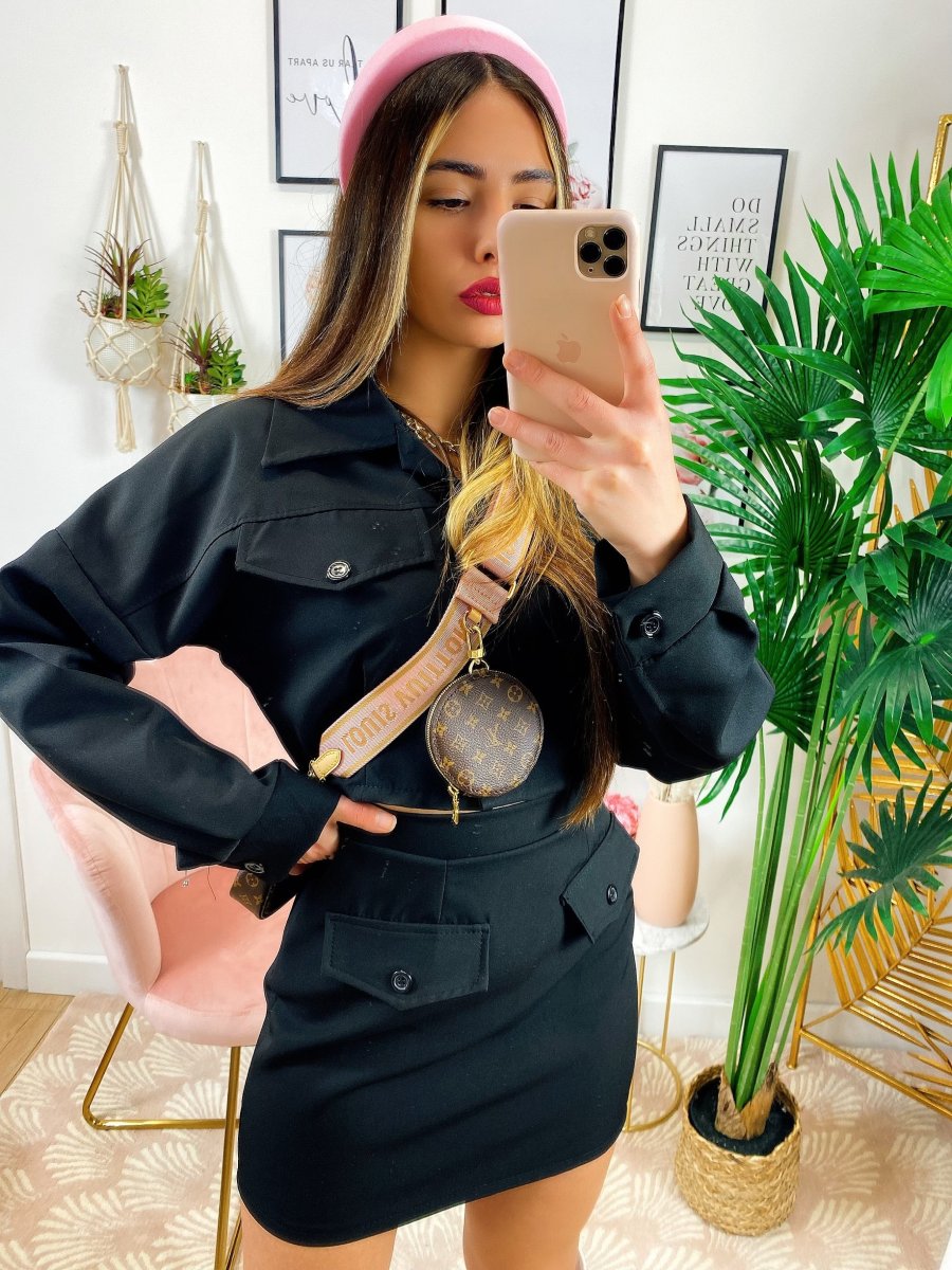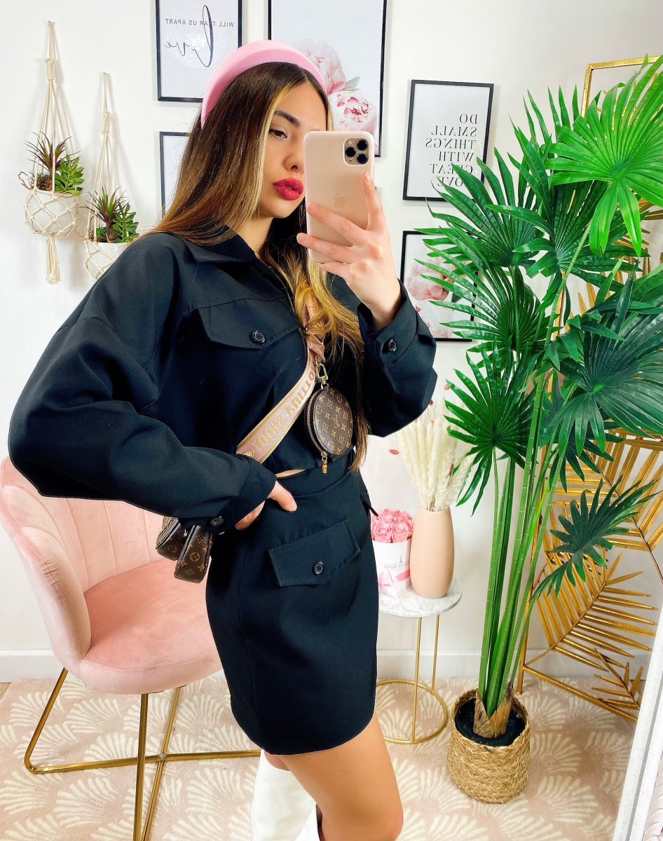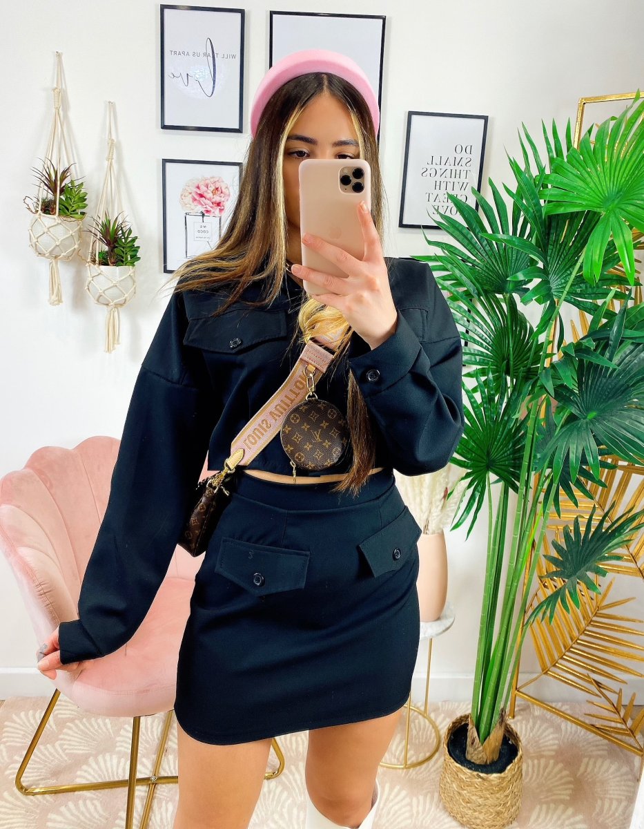 Completo Gonna e felpa Nero In tessuto elasticizzato. Vestibilità ottima