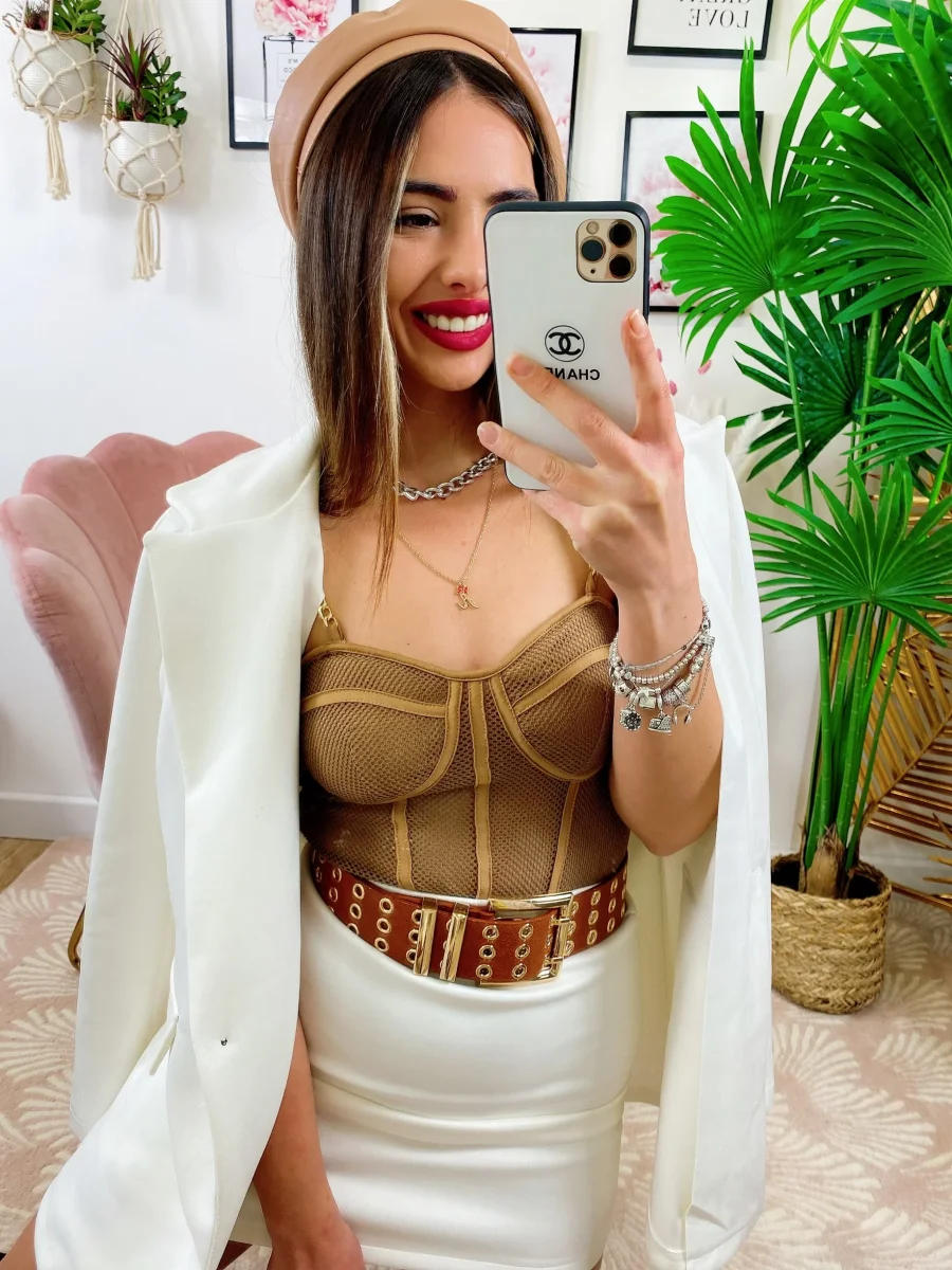 Completo Gonna e giacca in camoscio , gonna elasticizzata, giacca con bottone.