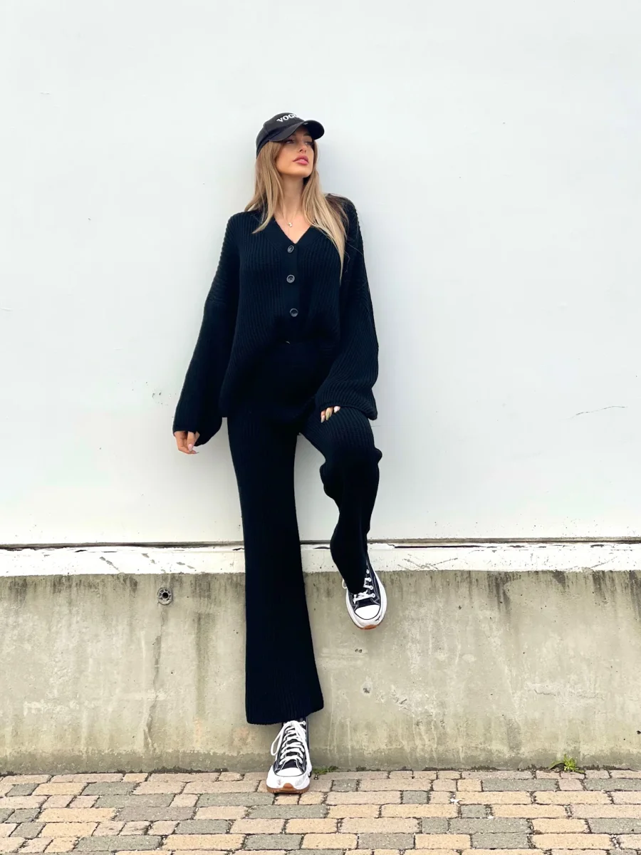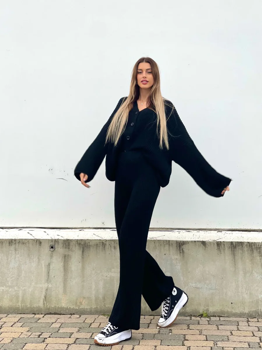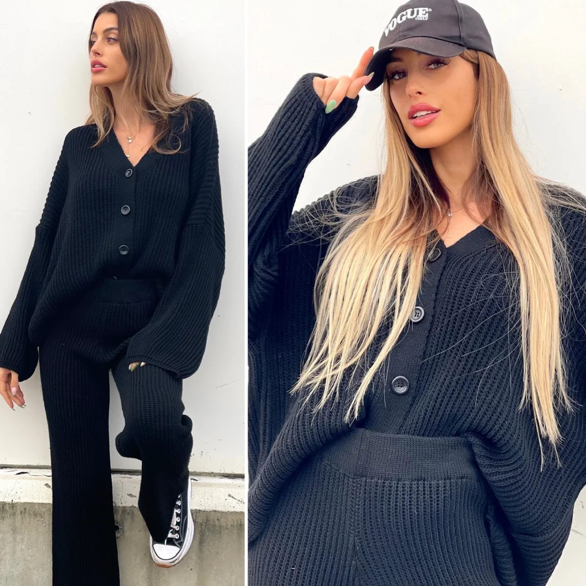 Morbidissimo completo composto da maglia e pantalone in un tessuto caldissimo e morbido.