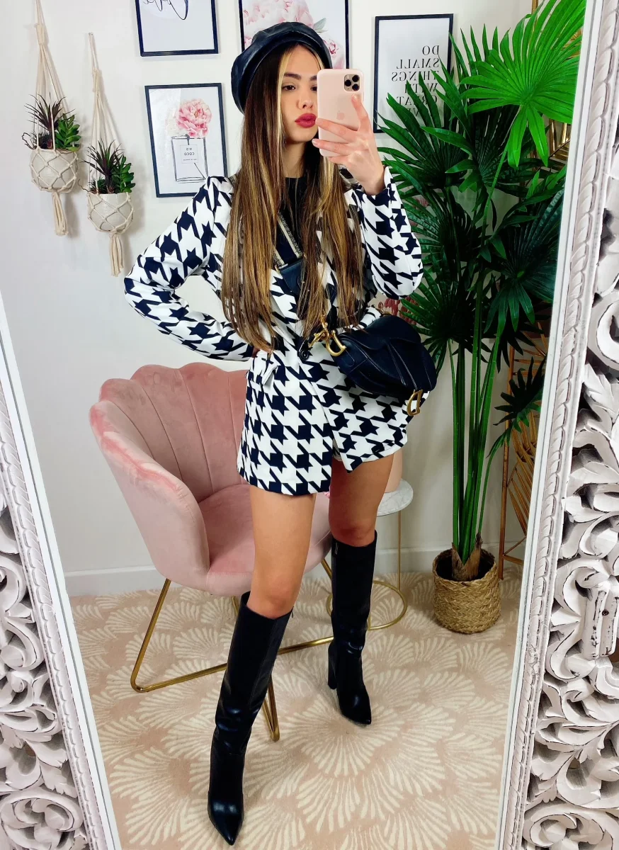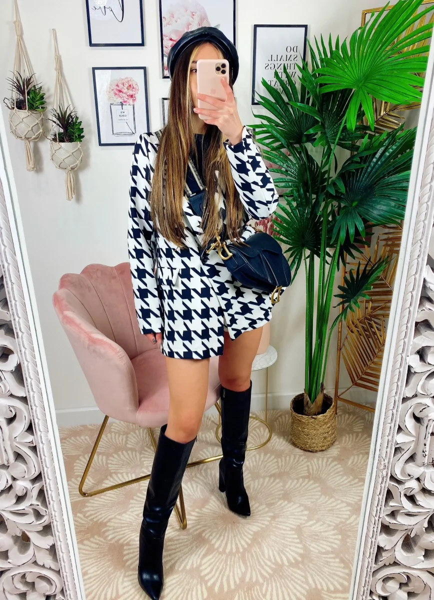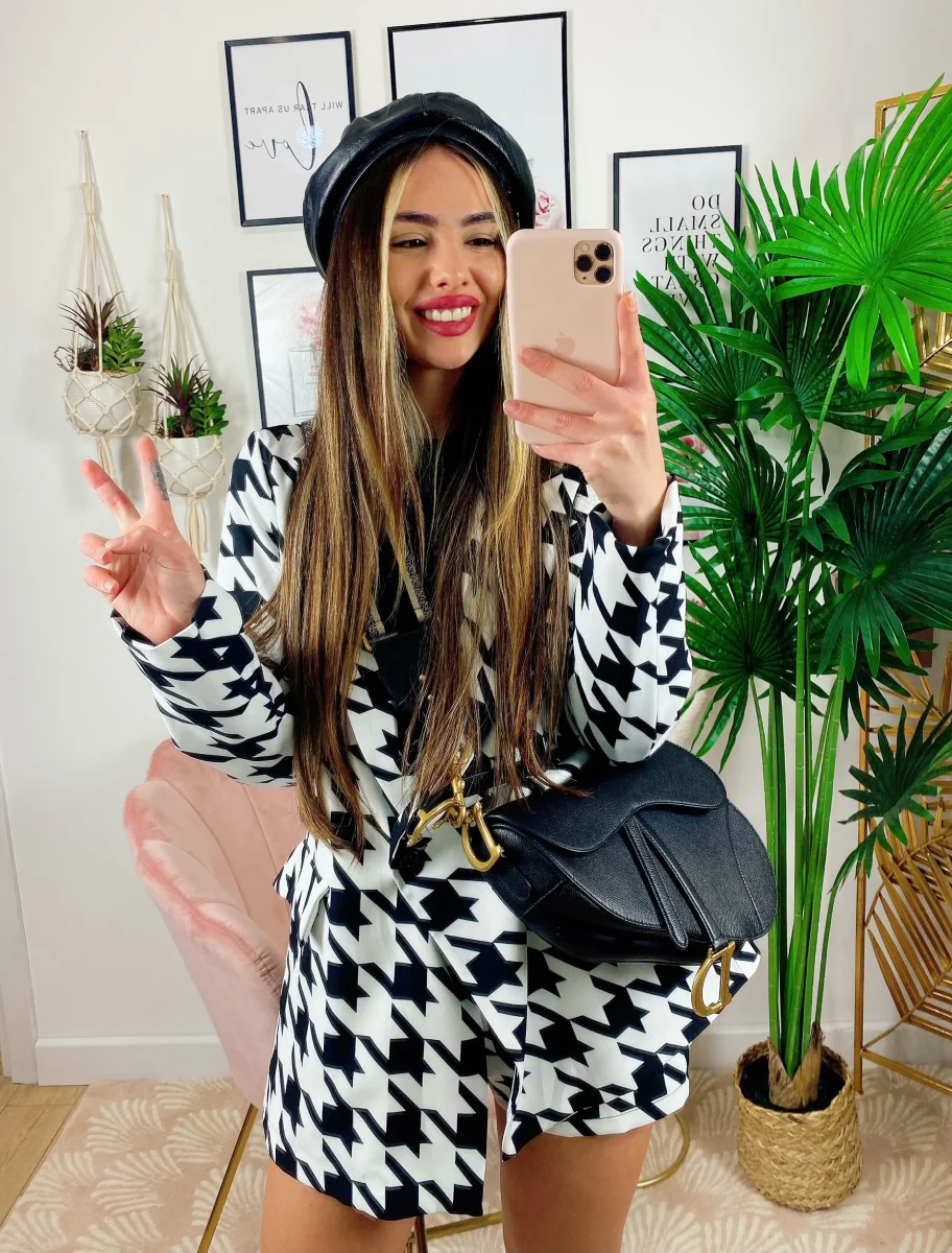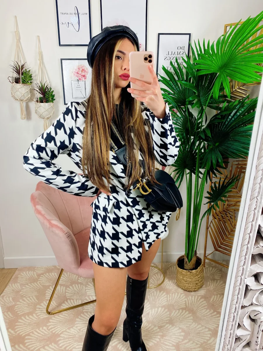 Completo pied de poule bianco e nero Short e giacca.