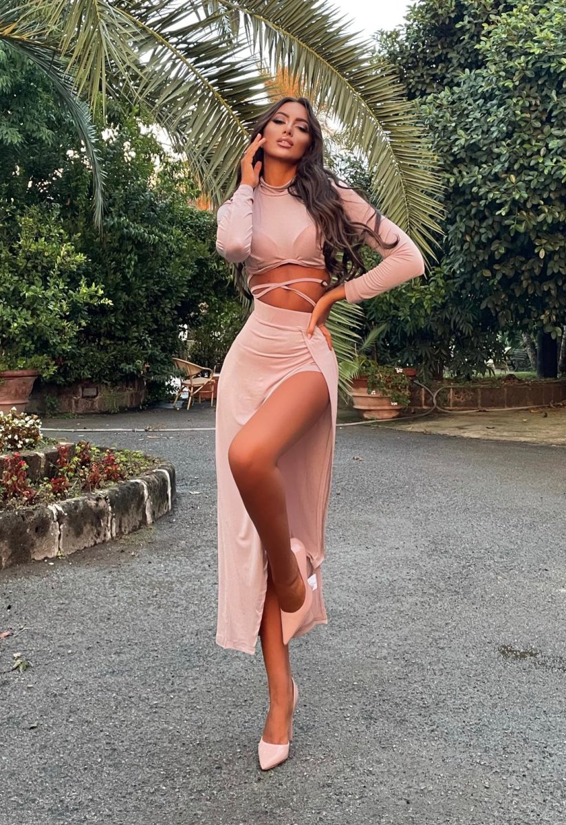 Completo rosa polvere top e gonna Anastasia