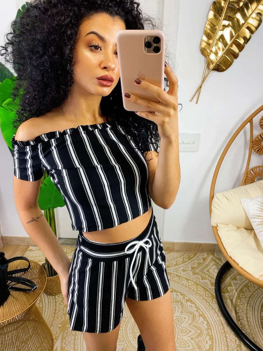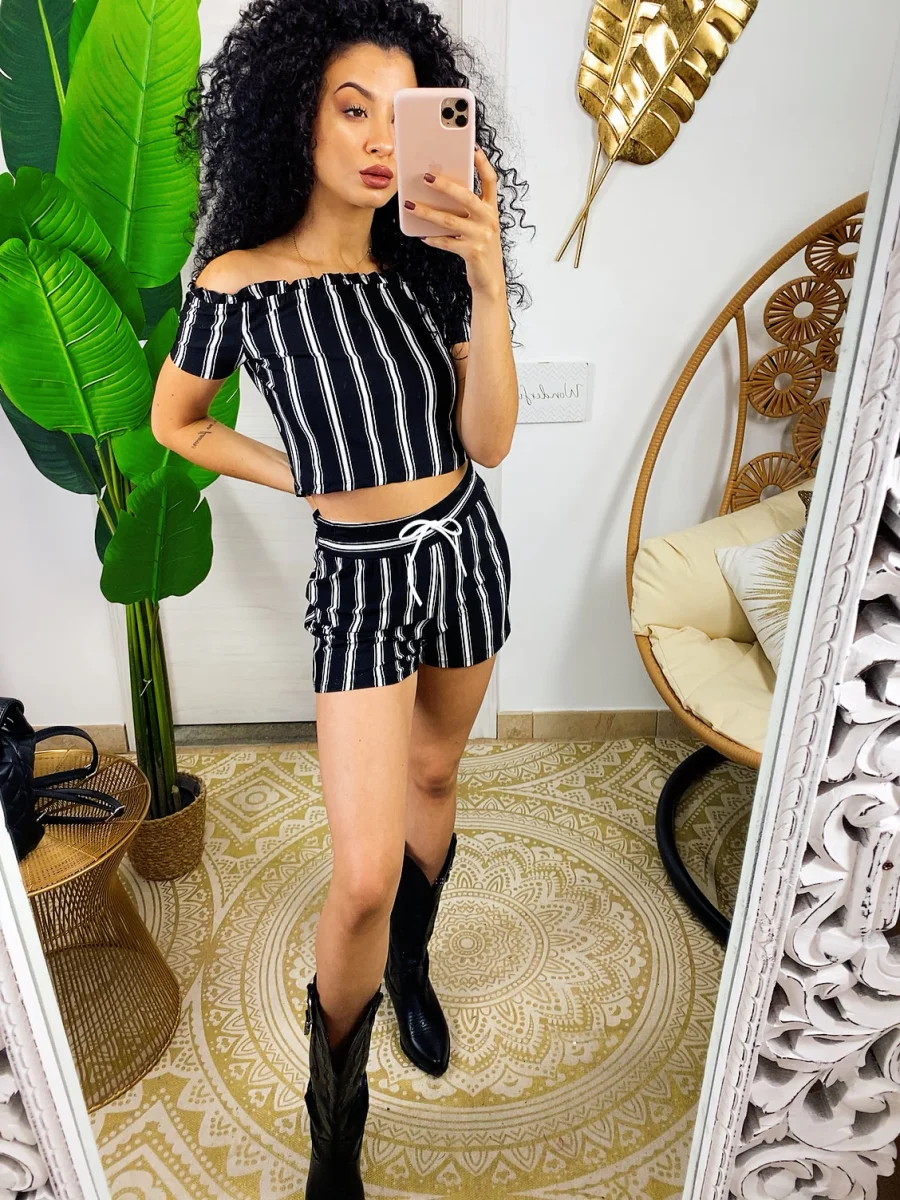 Completo maglia e pantaloncino sportivo nero. Elasticizzato e garzato per la stagione estiva.