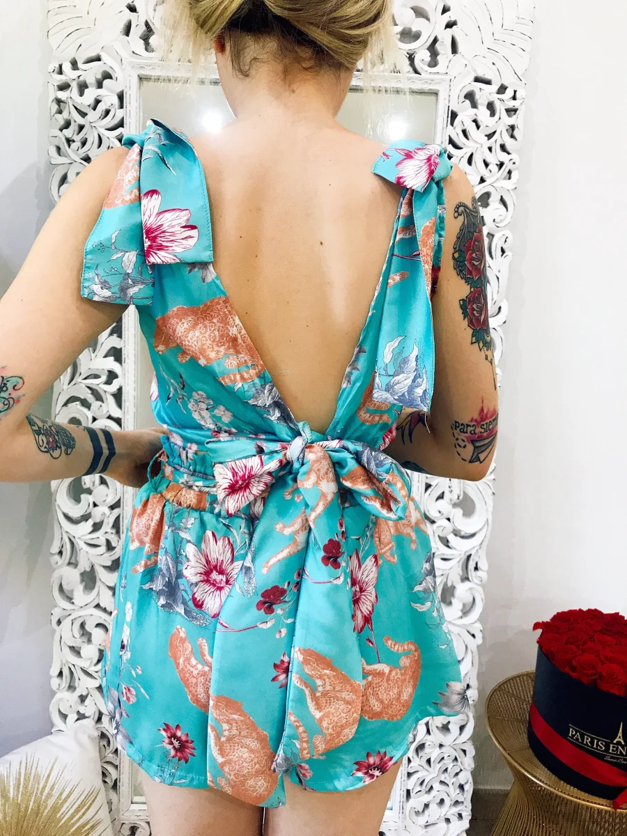 Completo versatile!! Puoi indossarlo come vuoi. Parte anteriore scollo a V con fiocco,schiena aperta e short in vita elasticizzato. Comodo e da tutti i giorni senza rinunciare al stile Ra Boutique che ti contraddistingue.