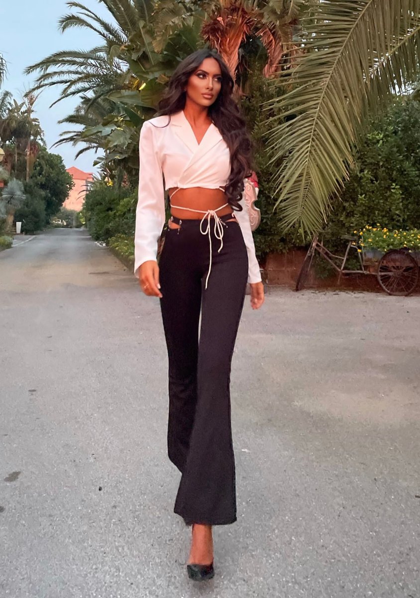 Scalda cuore bianco manica lunga con spalline e incrociato sulla vita