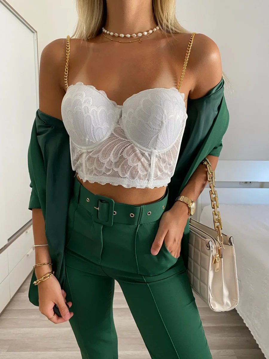 Corpino con coppe in pizzo ricamato, spalline in catena