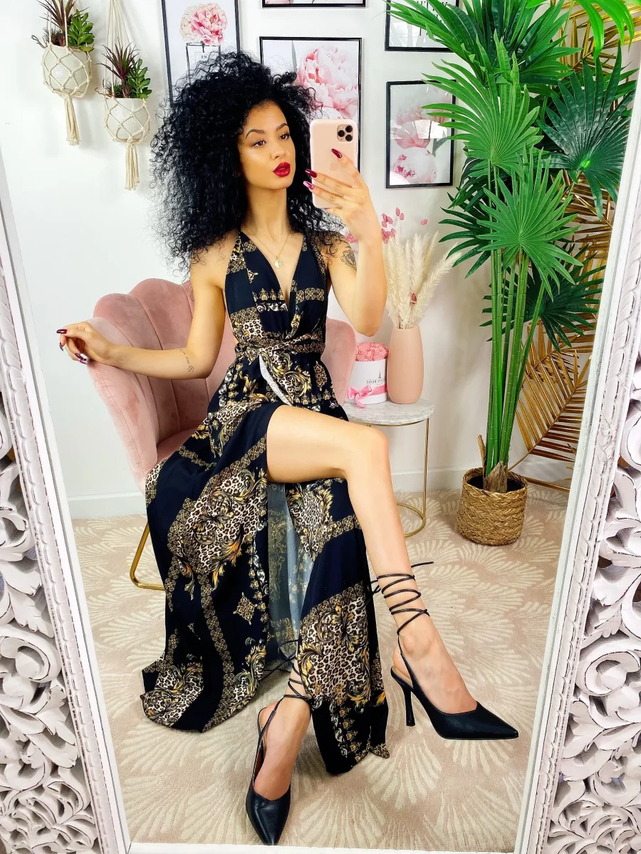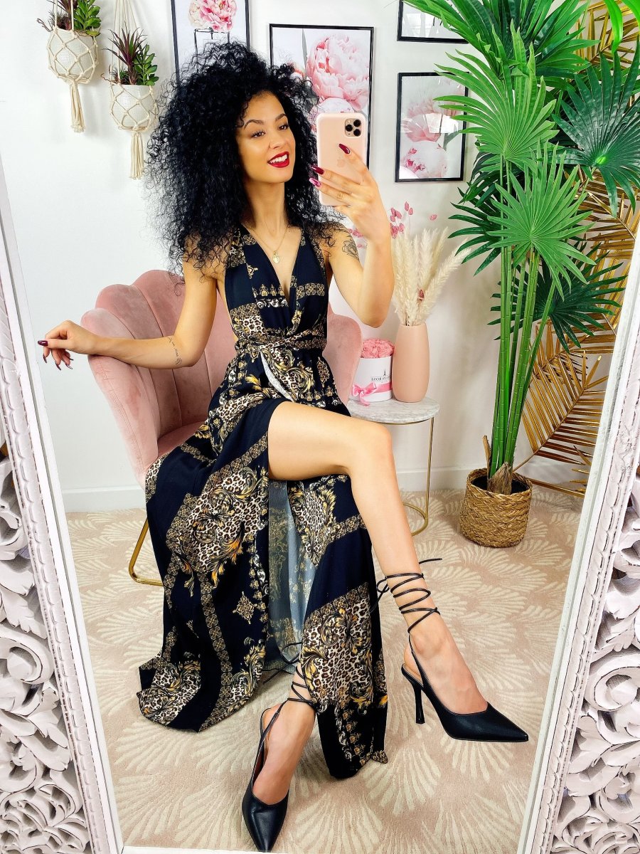 Dress Afrodite, abito lungo con maxi spacco. Con coppe e con possibilità di diverse modalità d’incrocio: a X dietro la schiena o solo al collo. In raso.