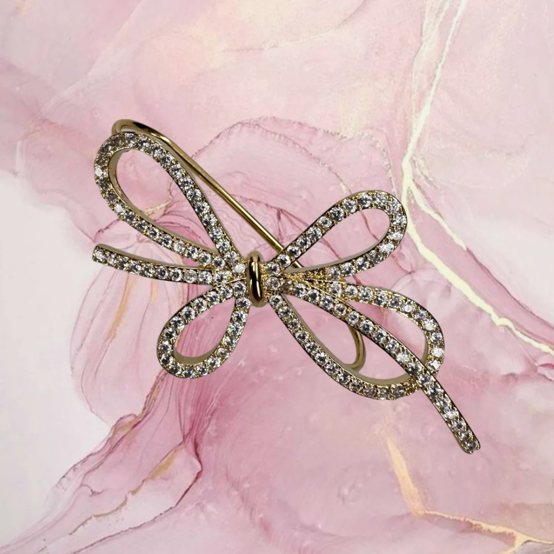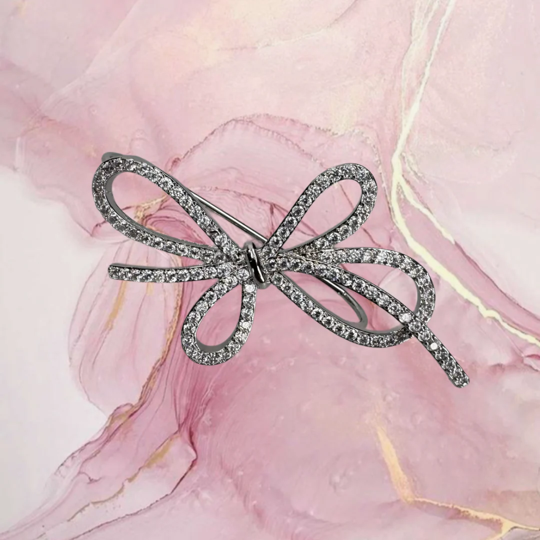 Orecchino singolo in acciaio inossidabile . Design a forma di fiocco con strass applicati, adatto anche per chi non ha fori alle orecchie