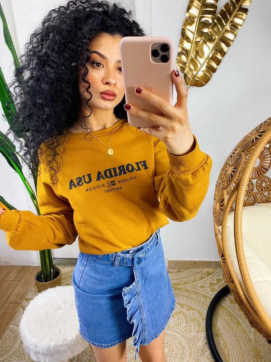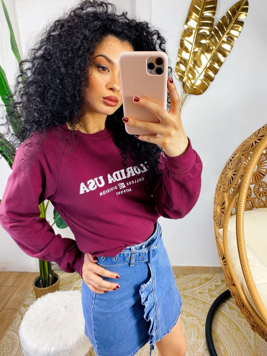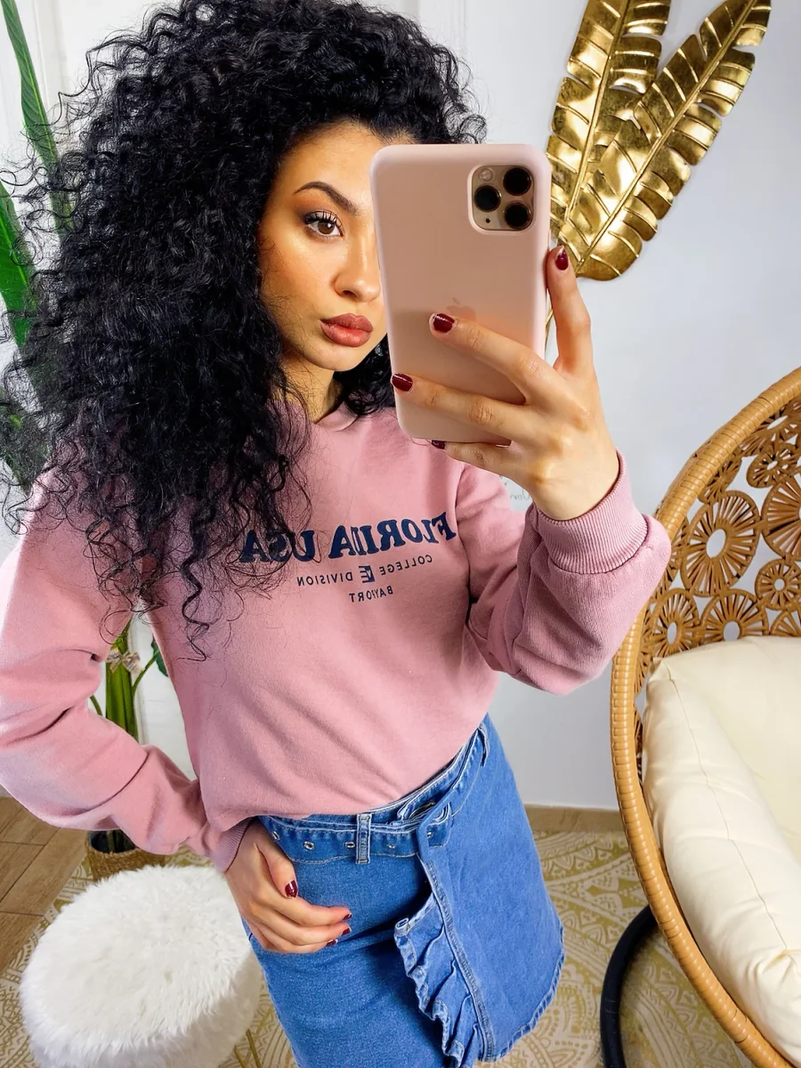 Felpa in tessuto garzato con stampa davanti