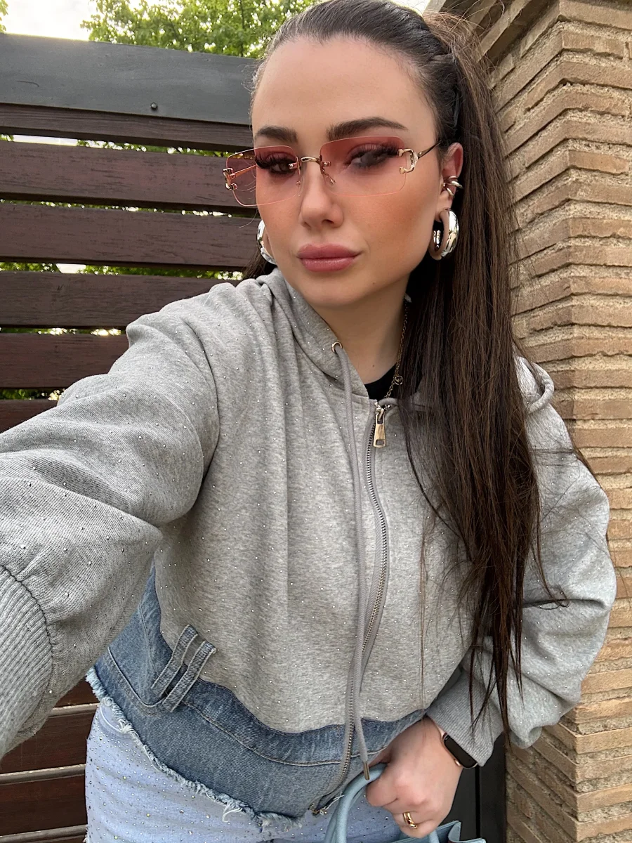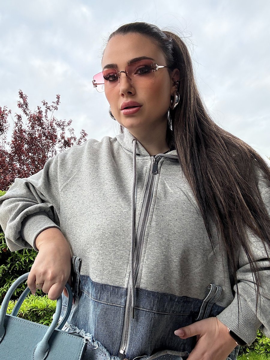 Felpa garzata leggera dalla vestibilità over con strass e dettaglio denim