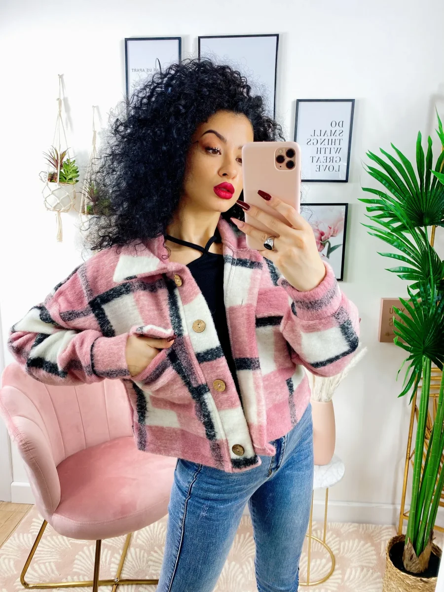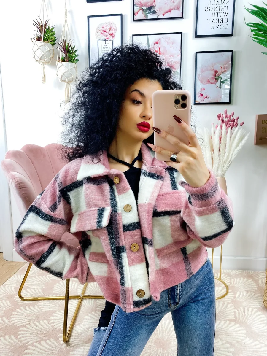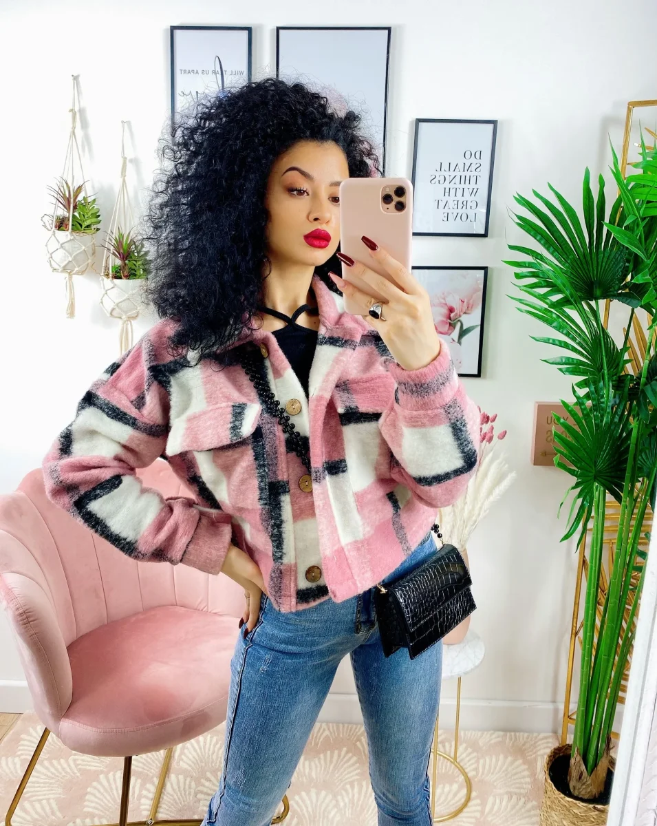 Giacca a quadri Rosa Con bottoni e tasche davanti.