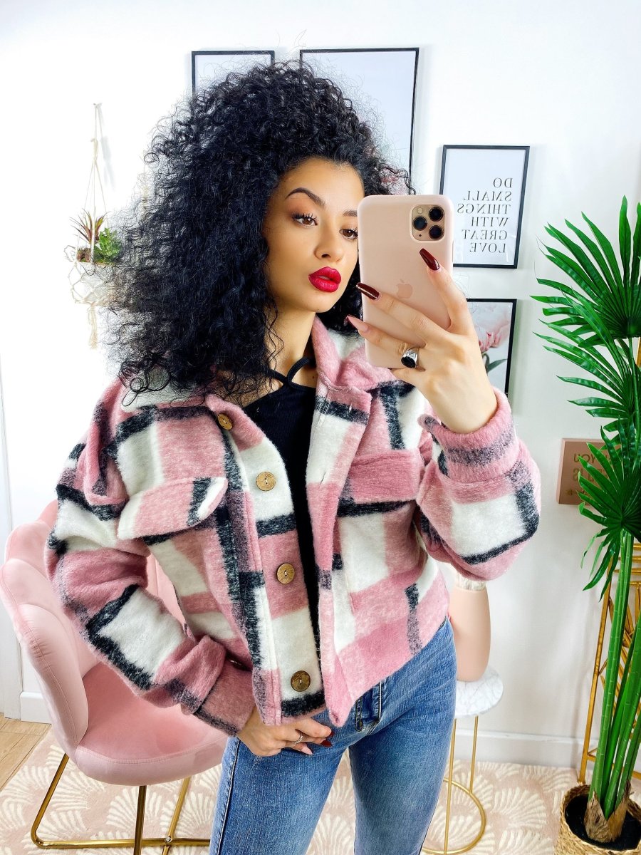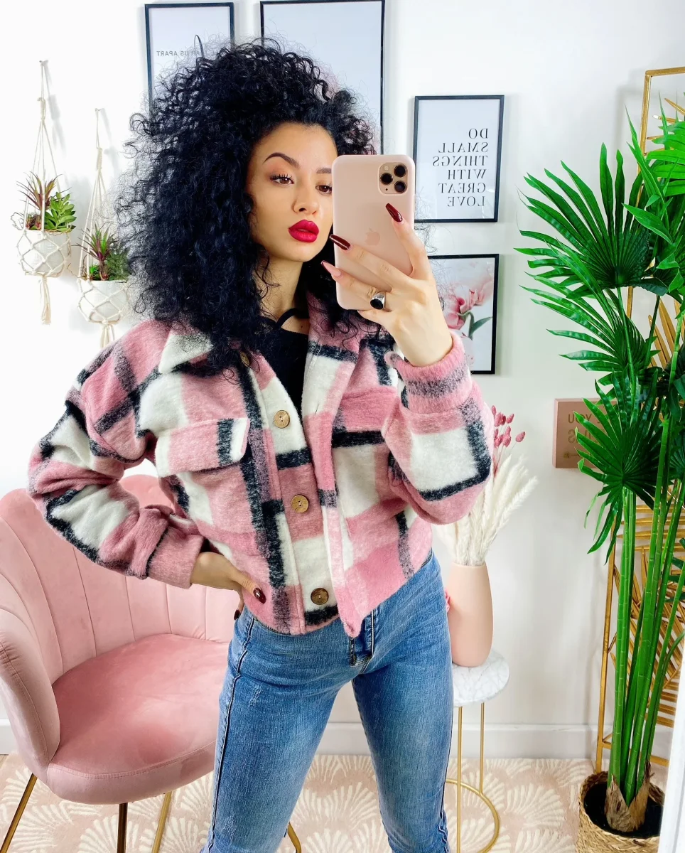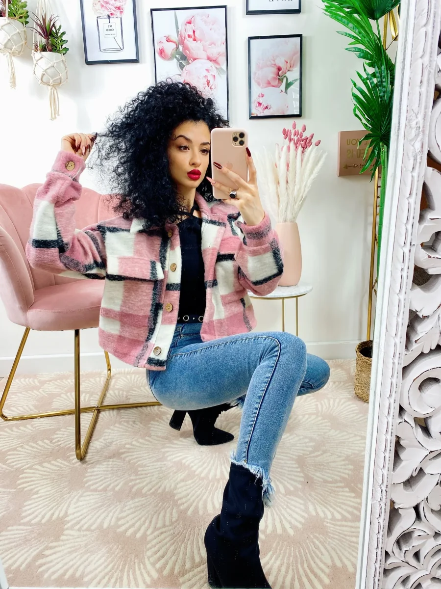 Giacca a quadri Rosa Con bottoni e tasche davanti.