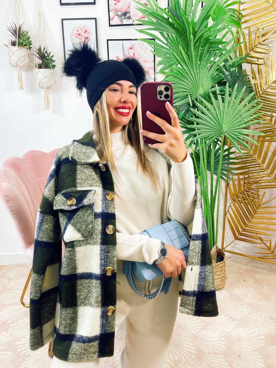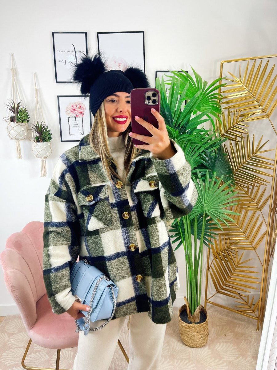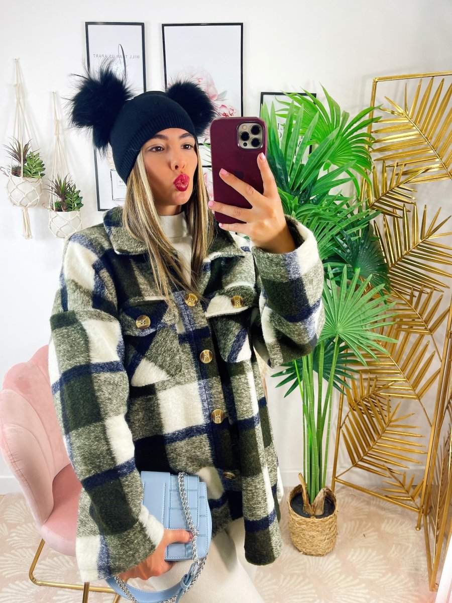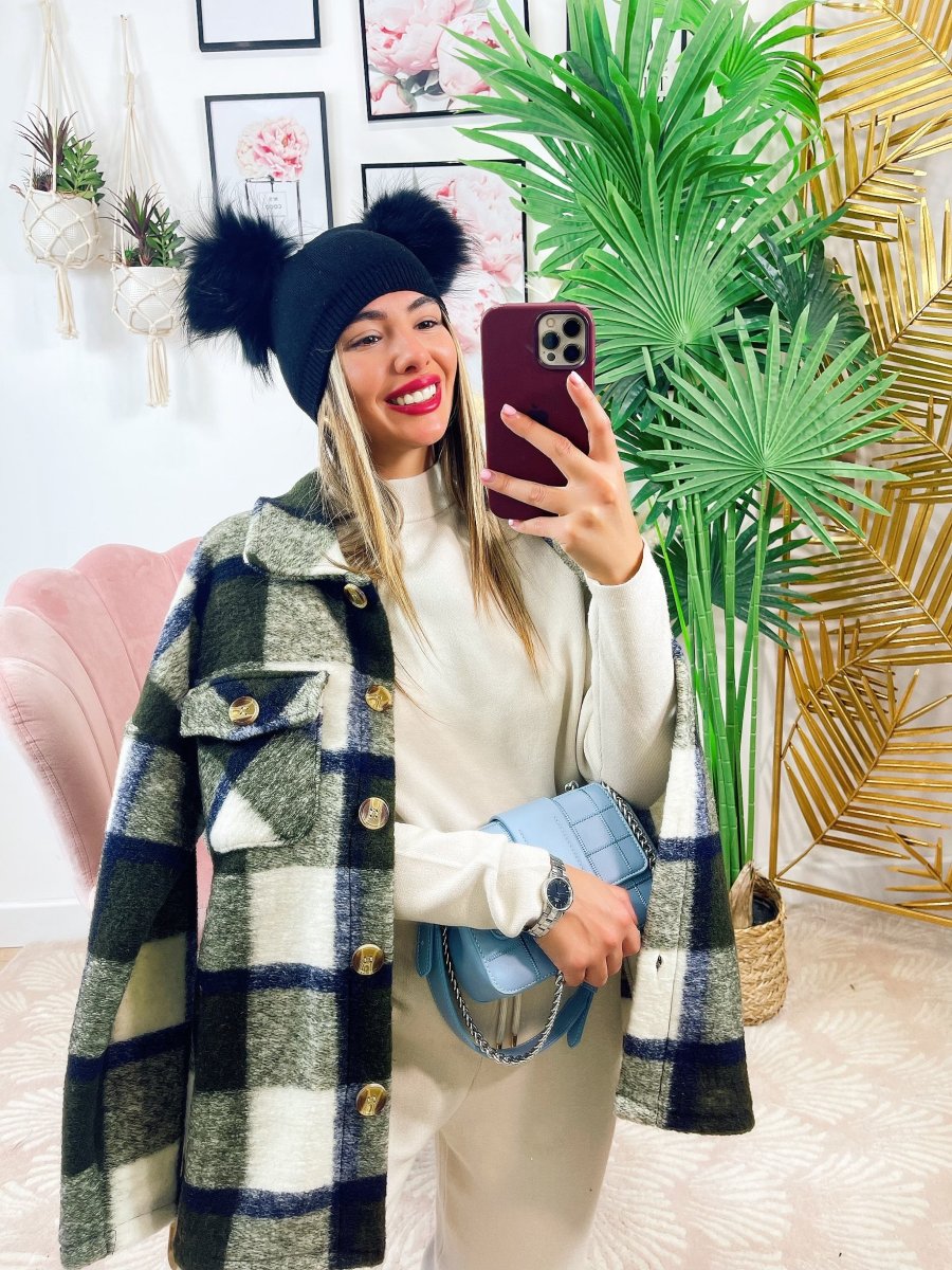 Giacca a quadri Nera Con bottoni e tasche davanti.