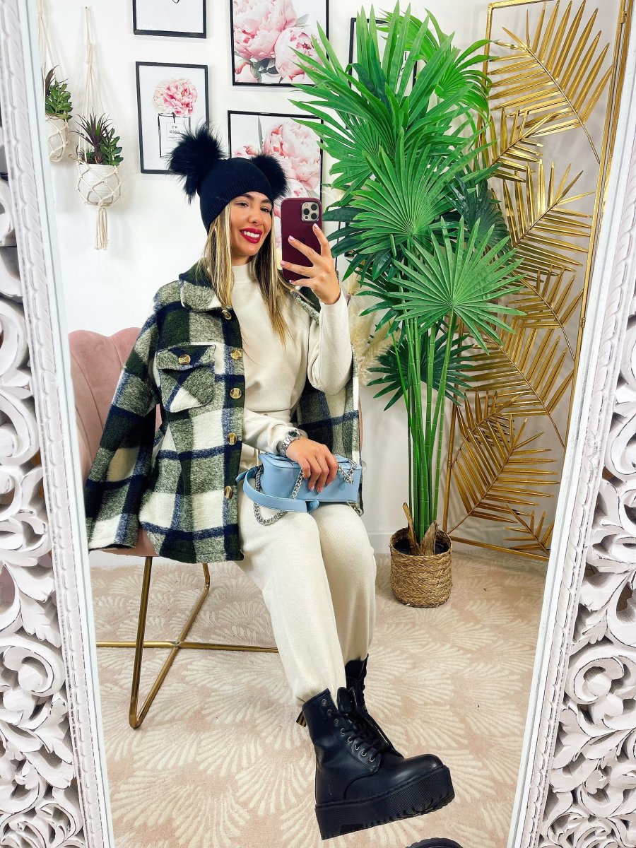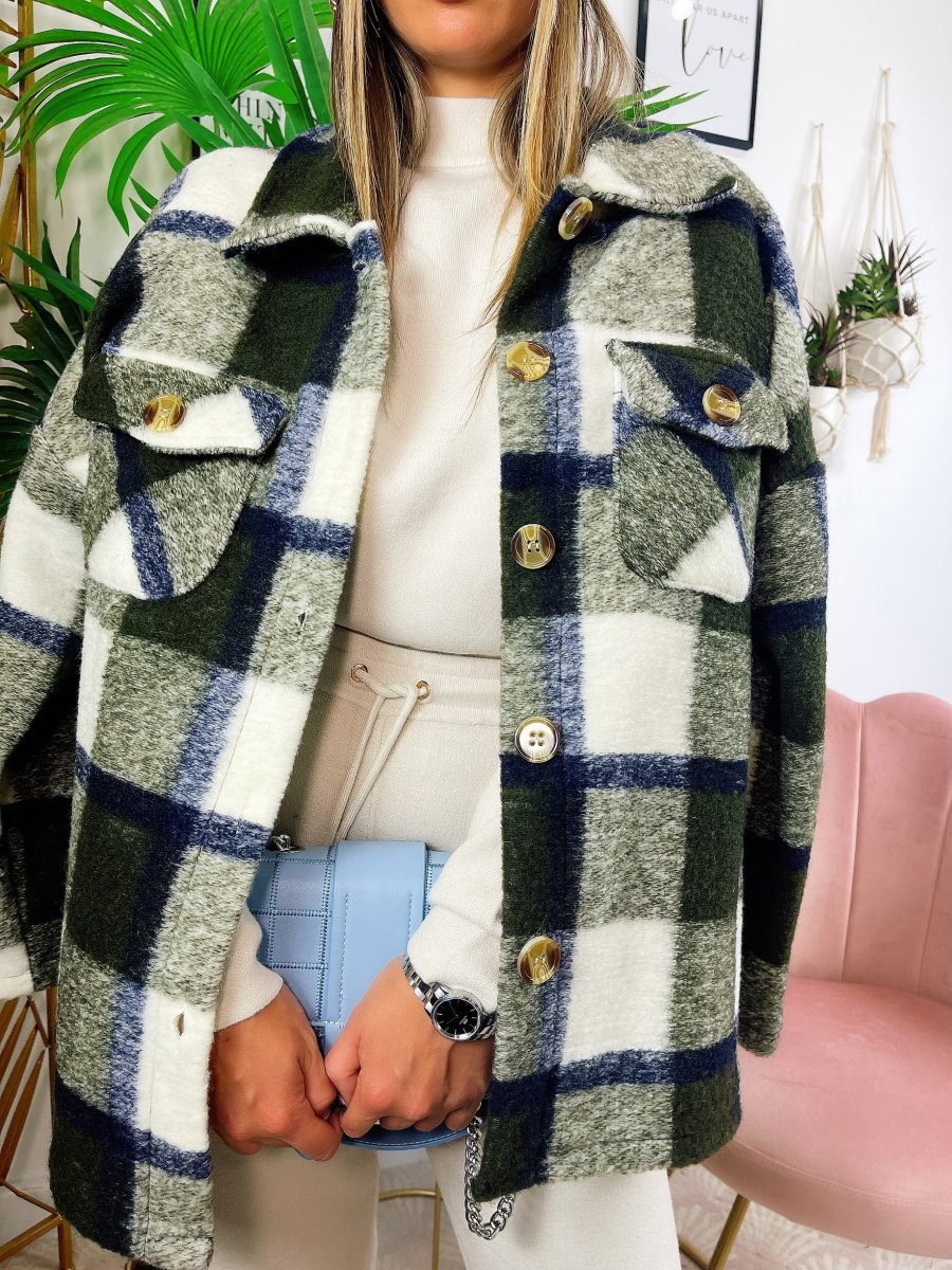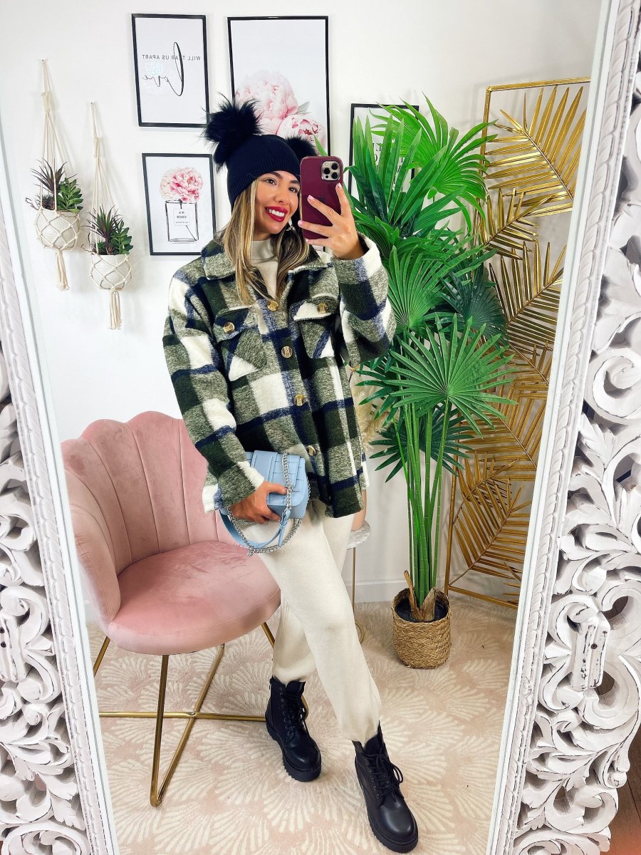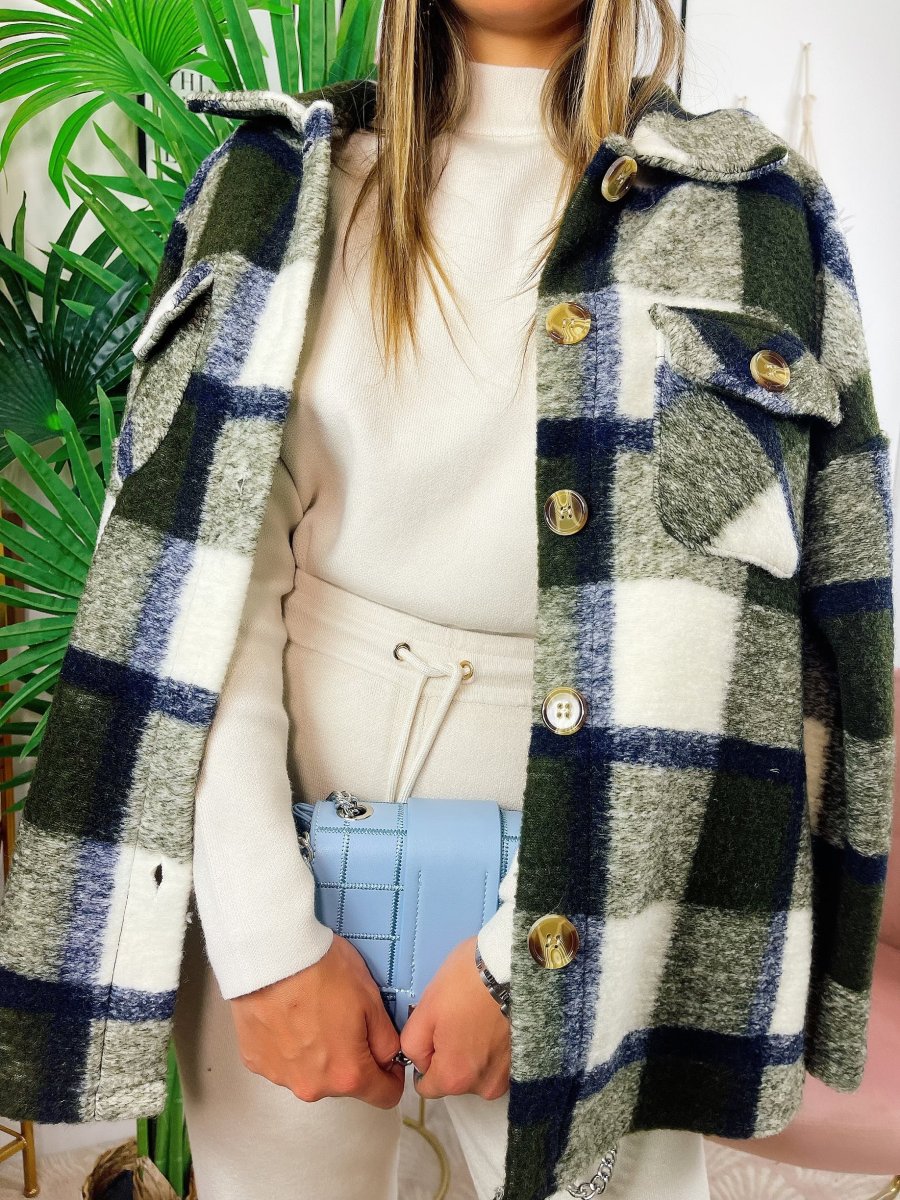 Giacca a quadri Nera Con bottoni e tasche davanti.