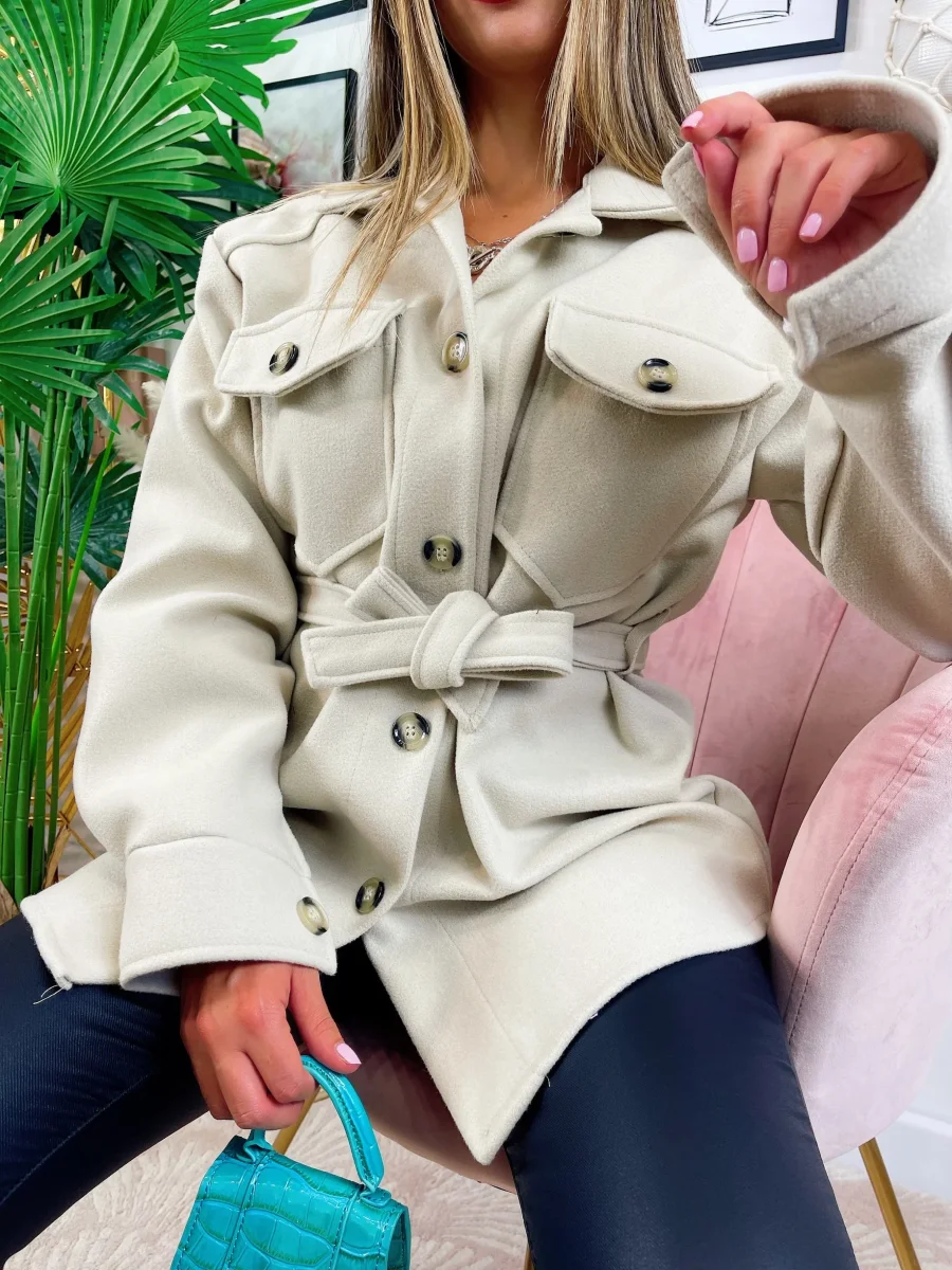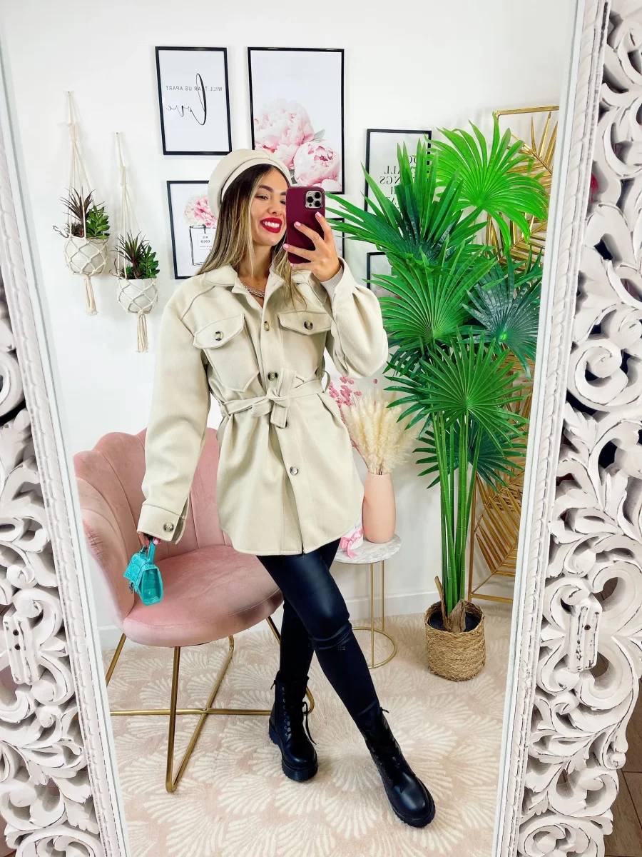 Giacca Camel con cintura, tiene caldo autunno/inverno ottima vestibilità.