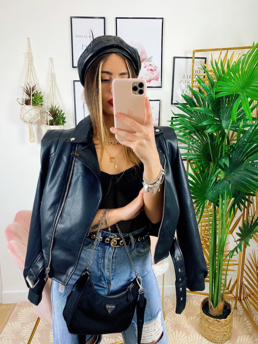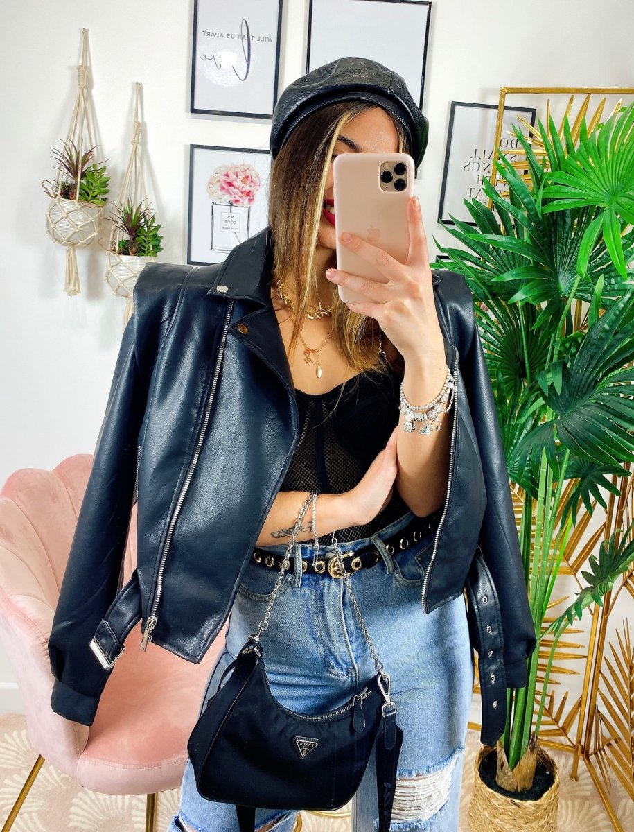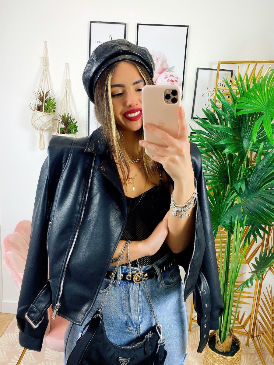 Giacca in ecopelle con cintura, da vera influencer.