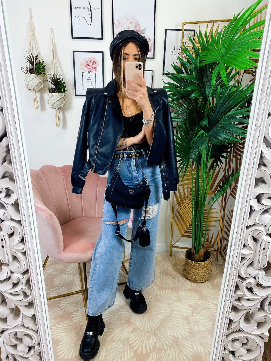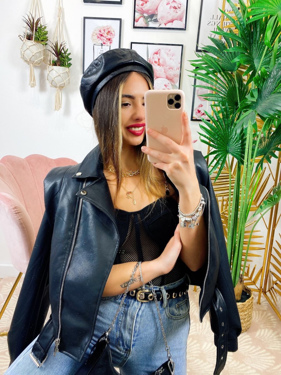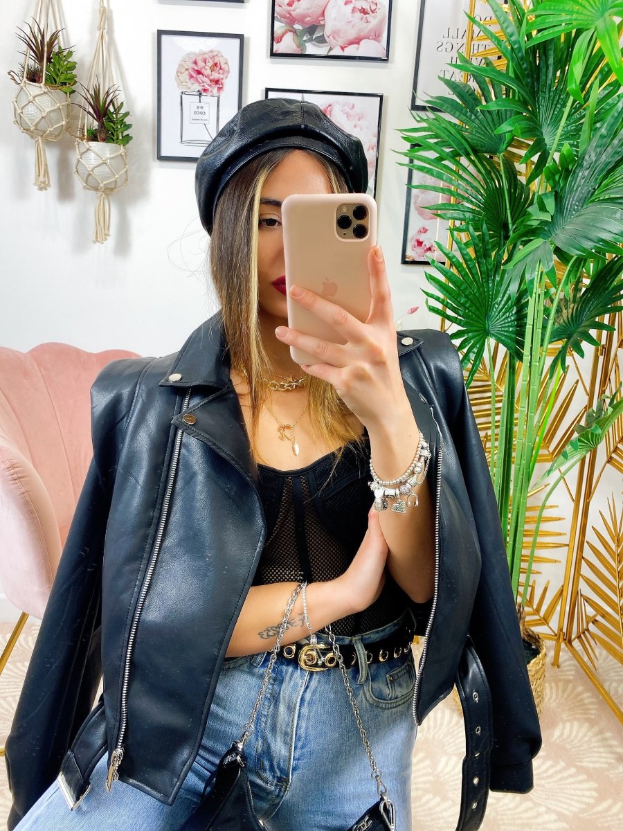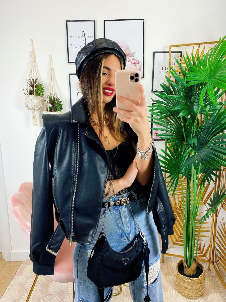 Giacca in ecopelle con cintura, da vera influencer.