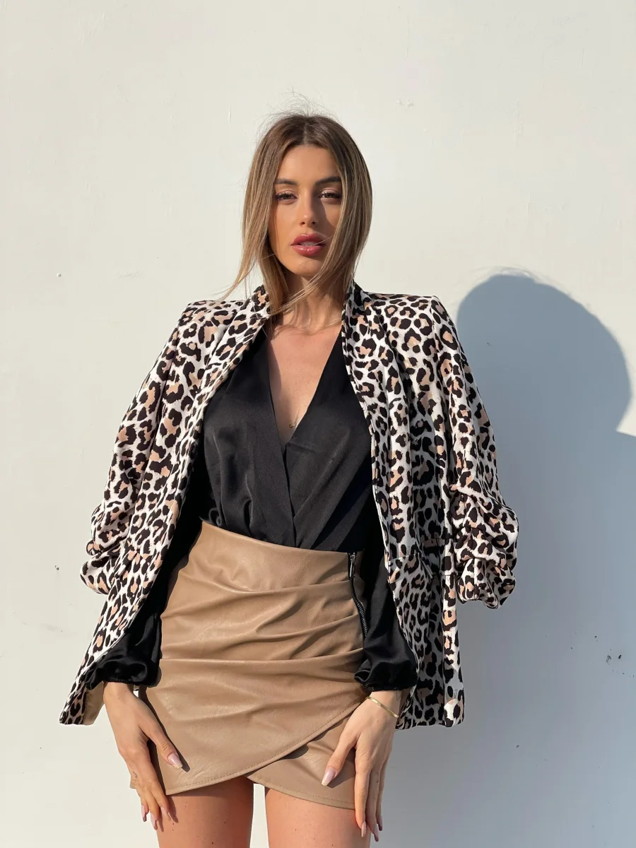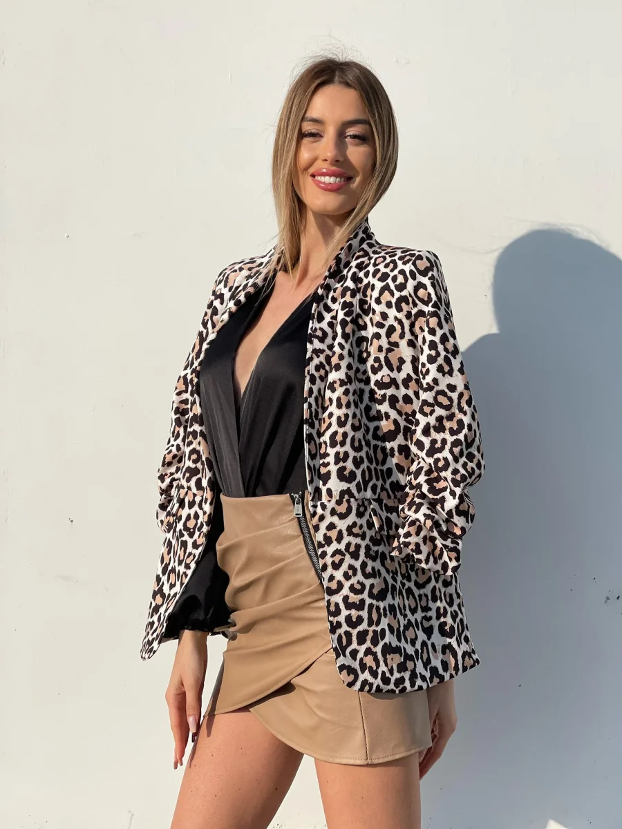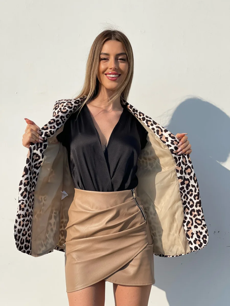 Giacca donna foderata in trama maculata Fuxia e nera. Manica leggermente arricciata.