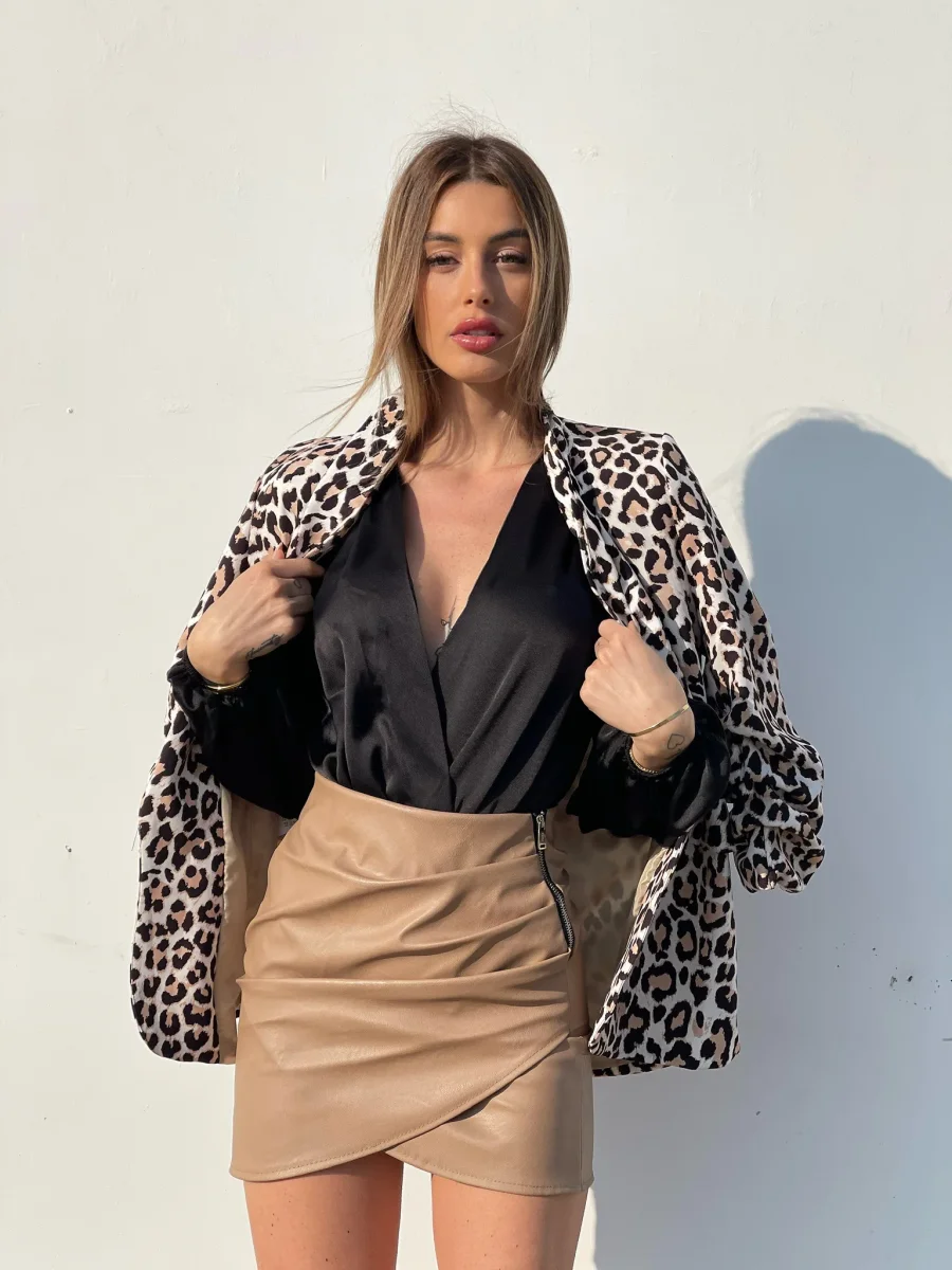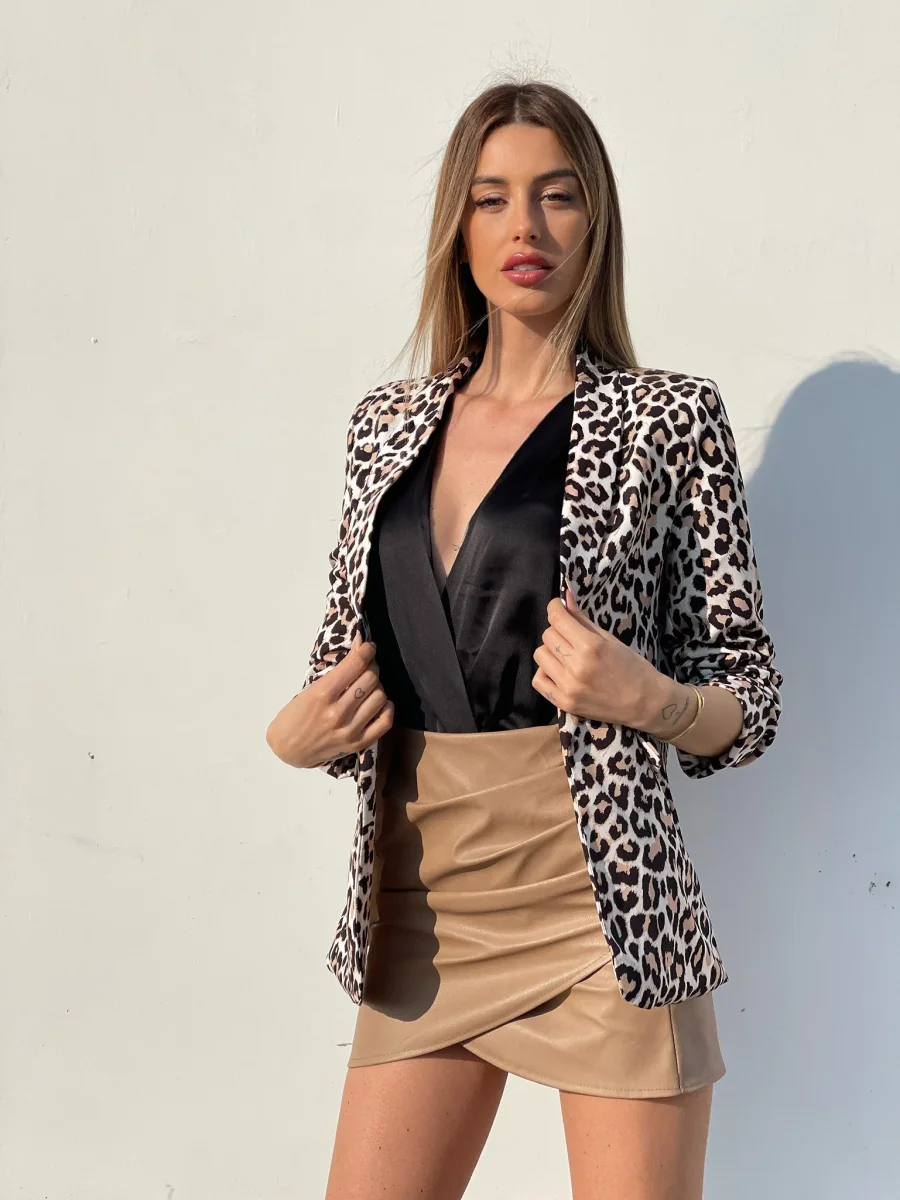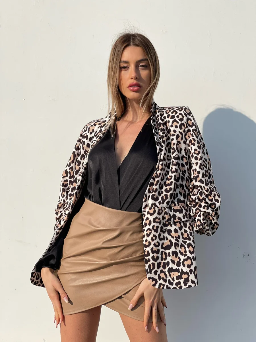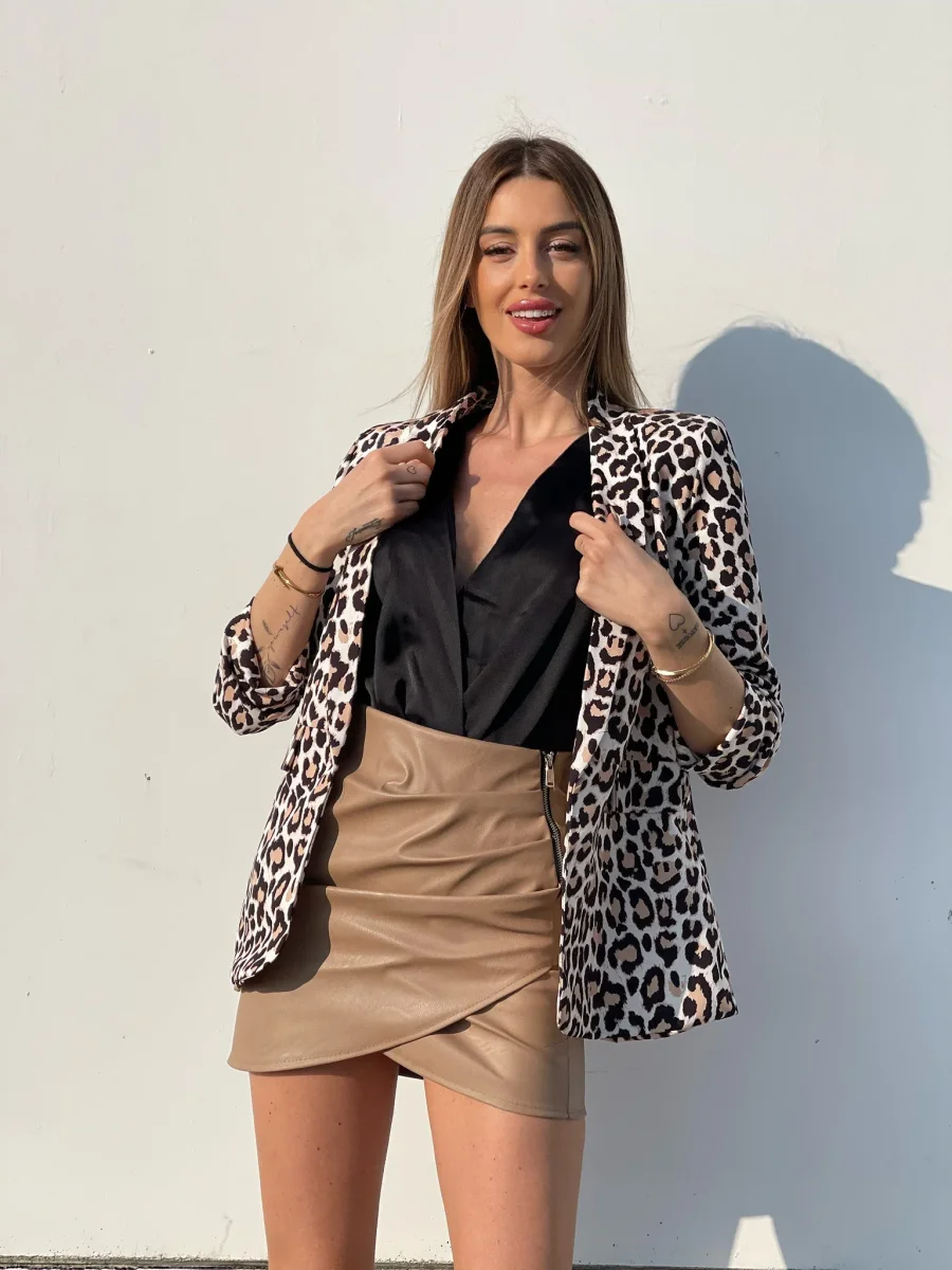 Giacca donna foderata in trama maculata Fuxia e nera. Manica leggermente arricciata.