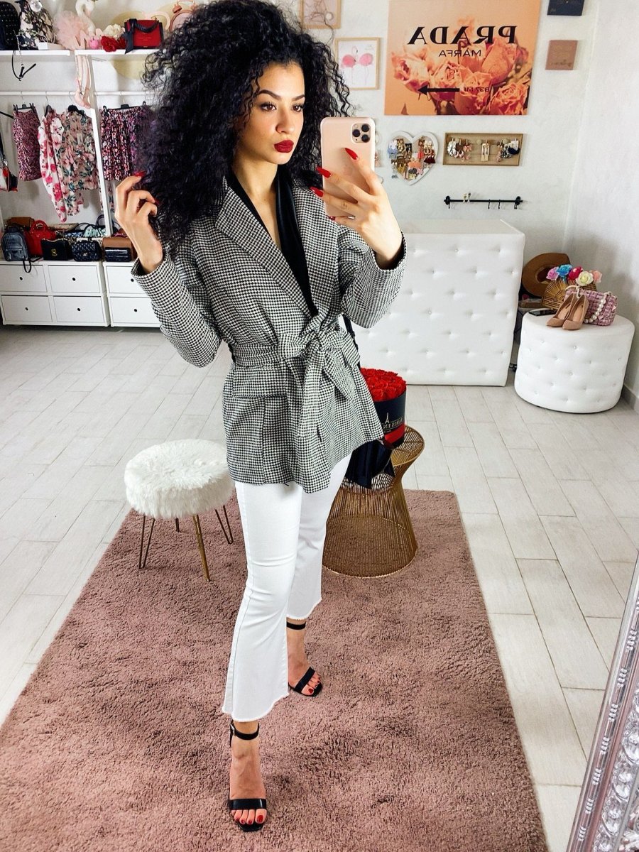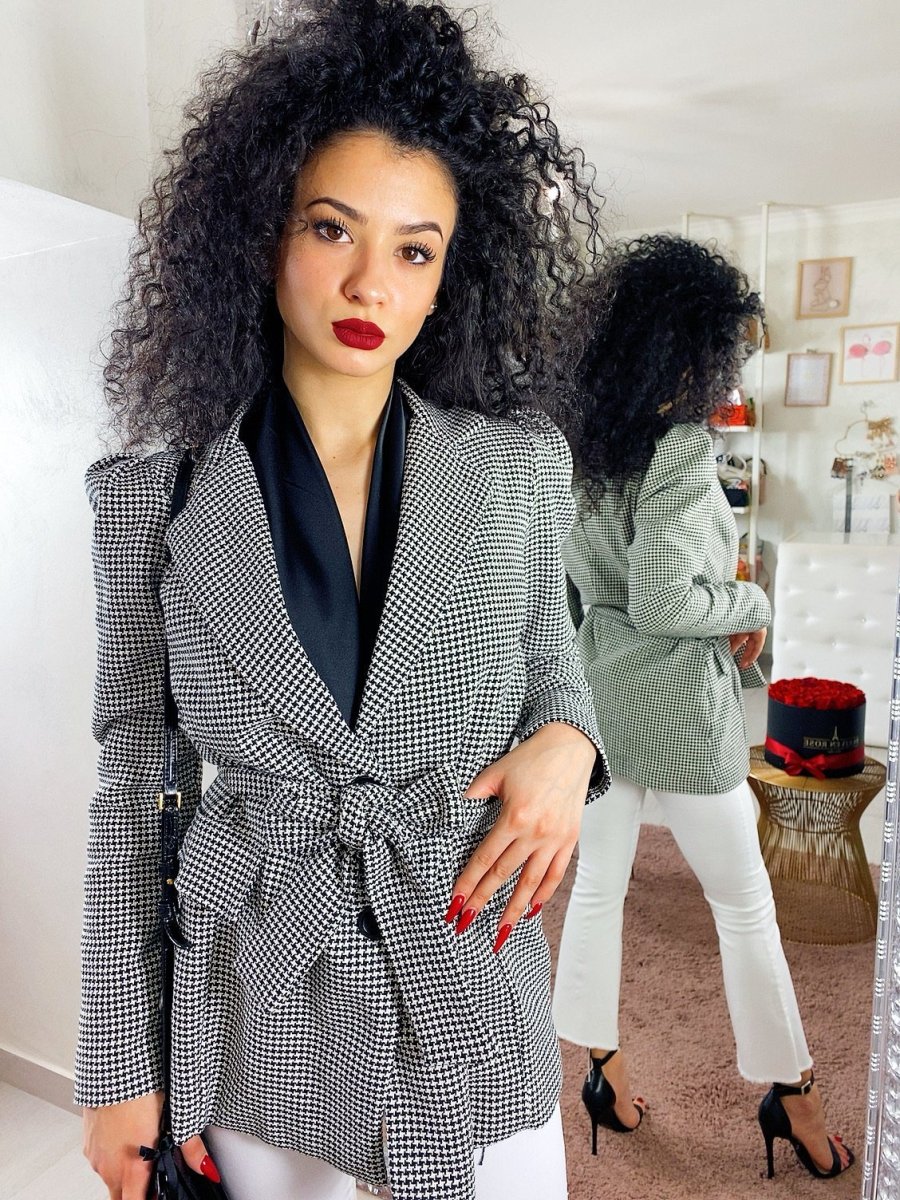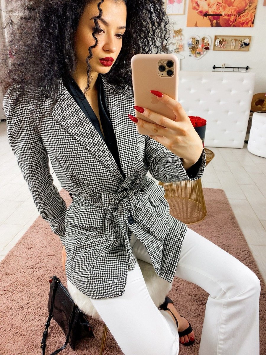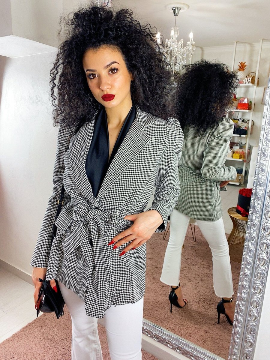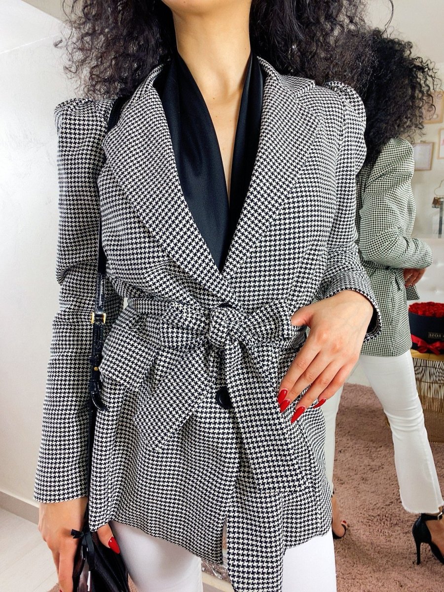 Giacca pied de poule con cintura