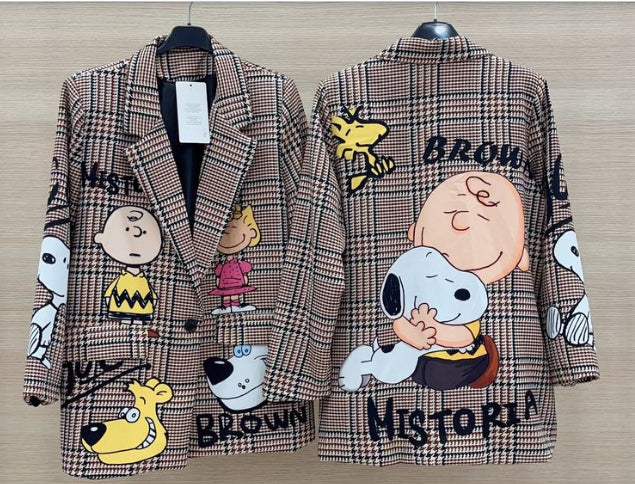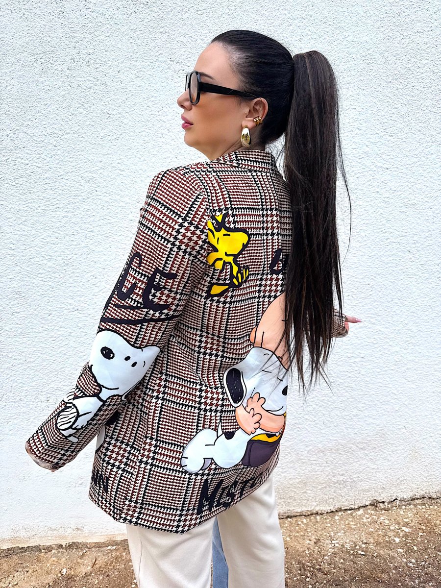 Giacca vestibilità over con stampa e fodera interna, spalline imbottite