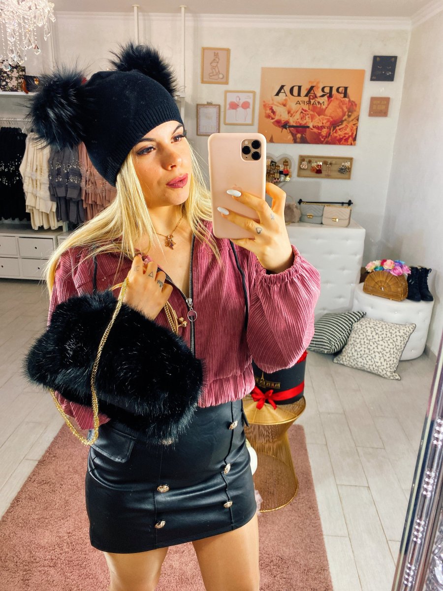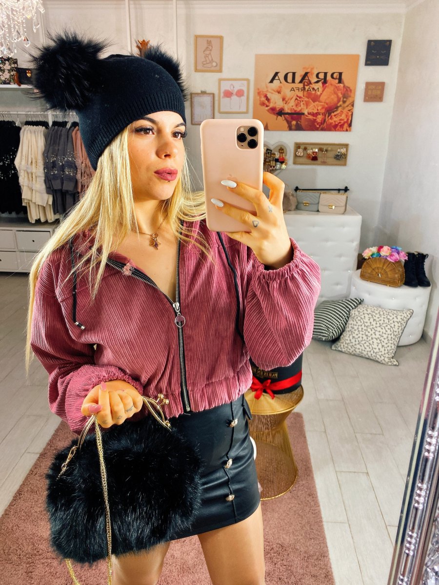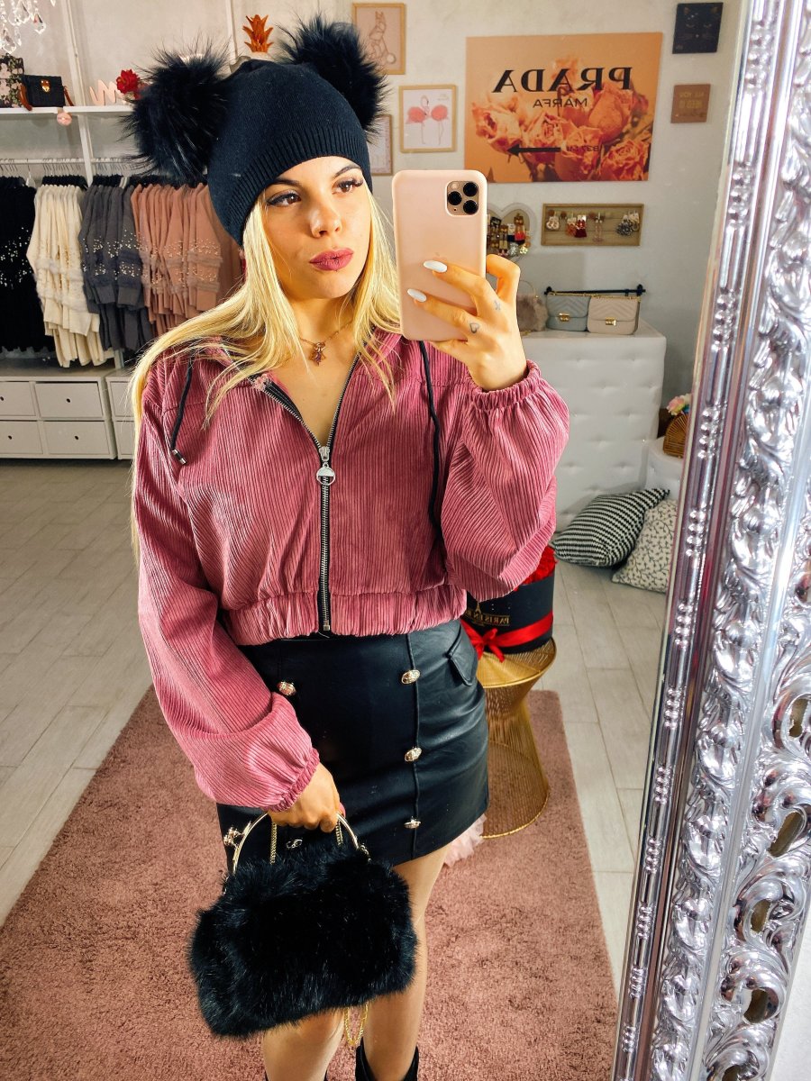 Giacchino in velluto con chiusura a zip. Taglia unica