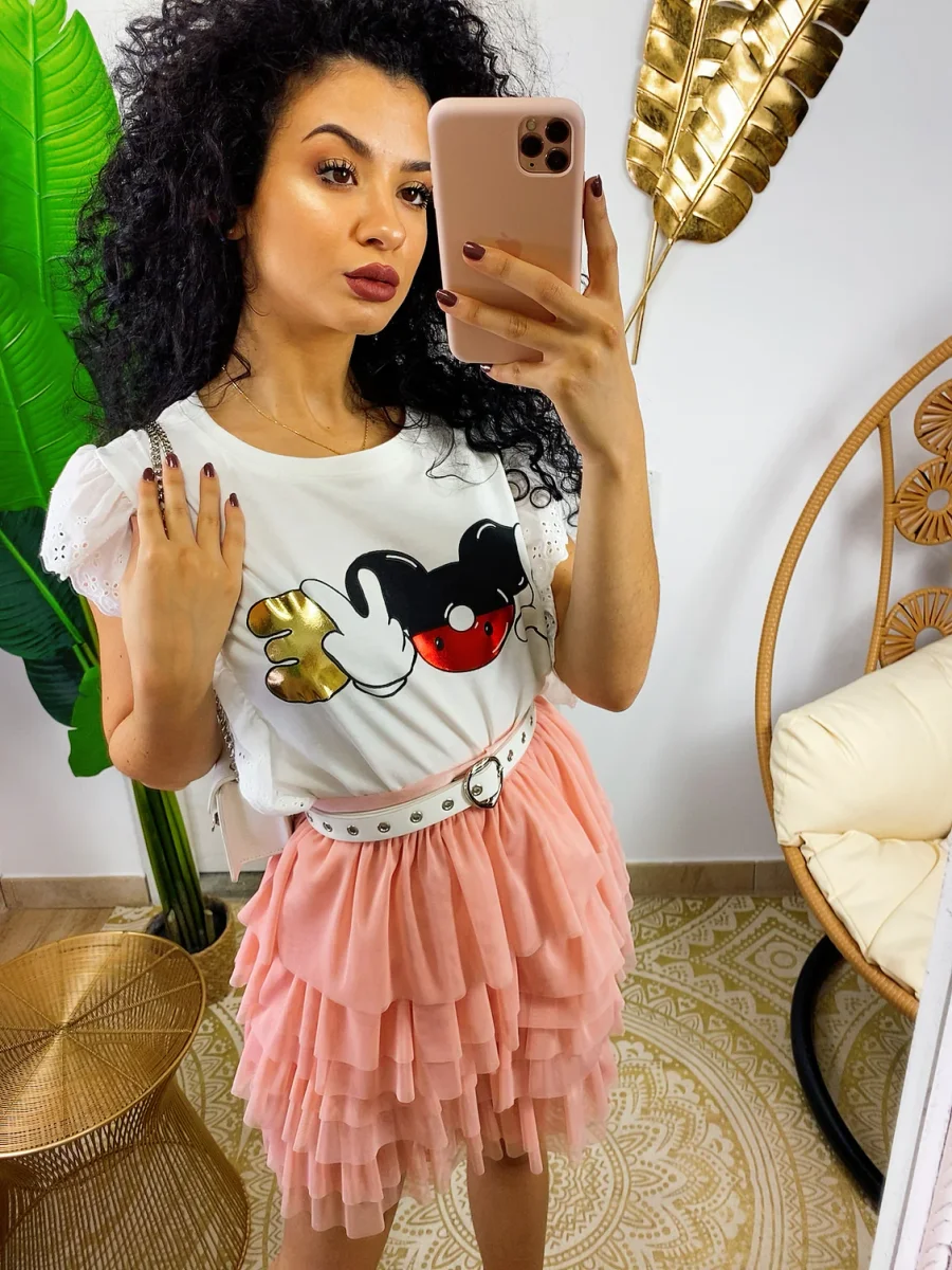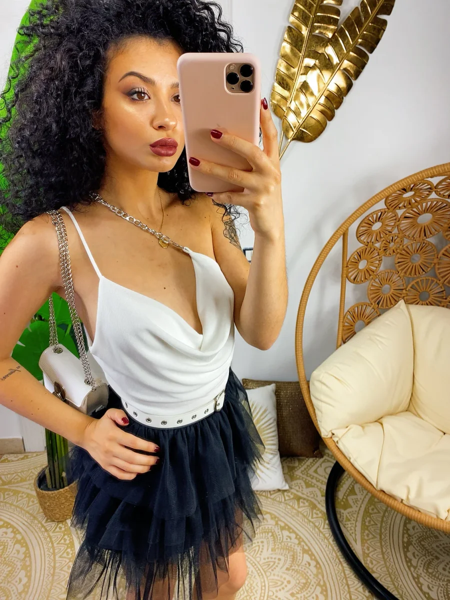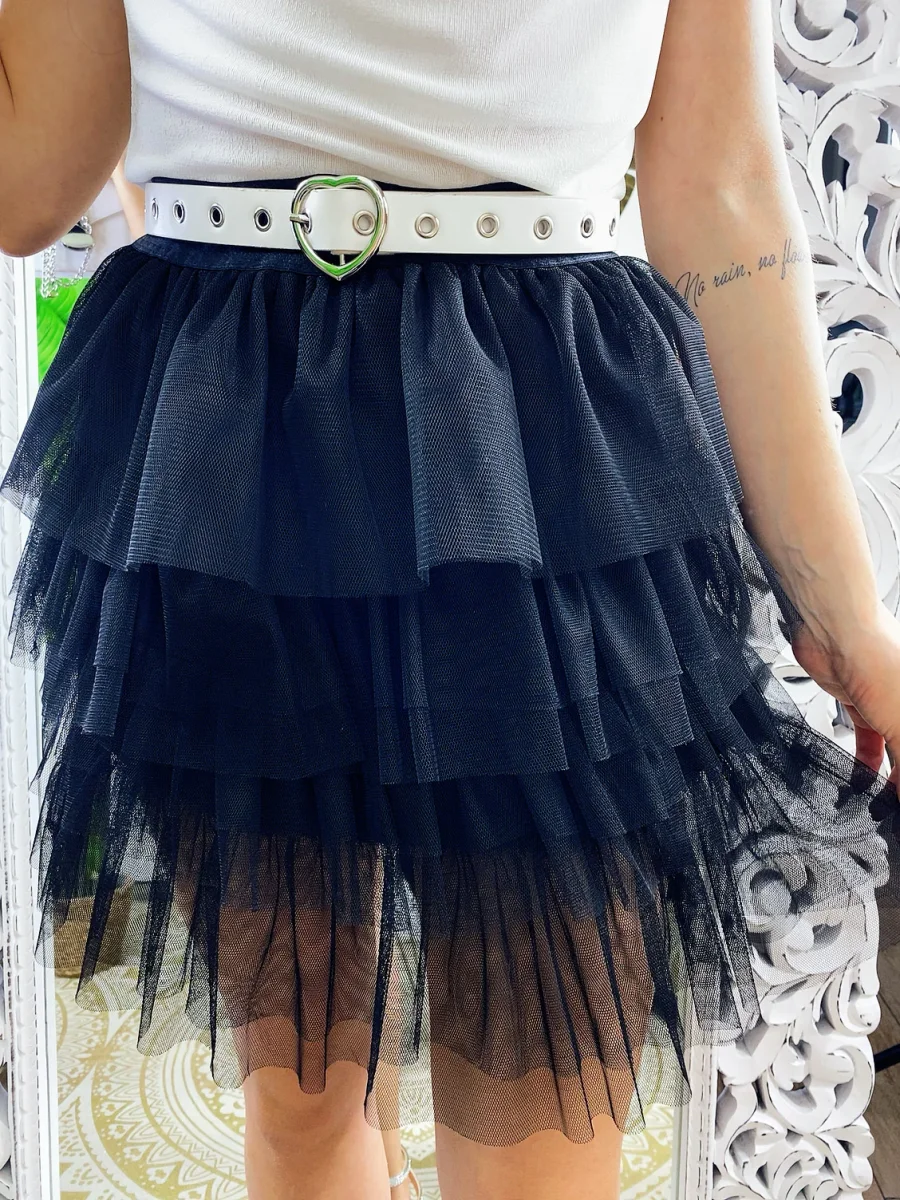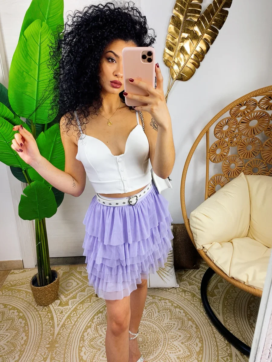 Gonna con elastico in vita e balze in tulle. Foderata e comoda. Abbinala con un top o un body