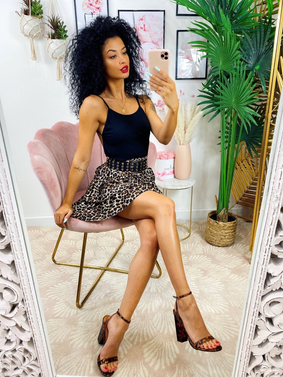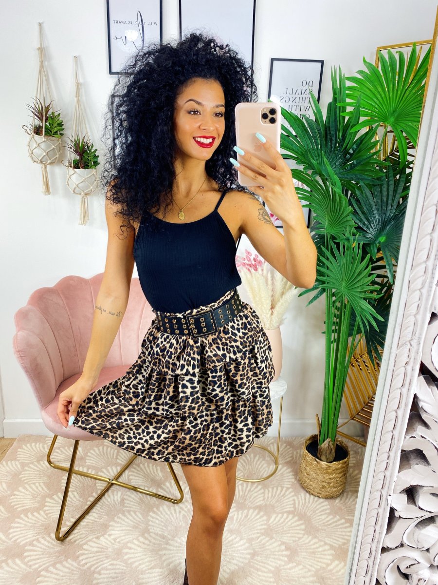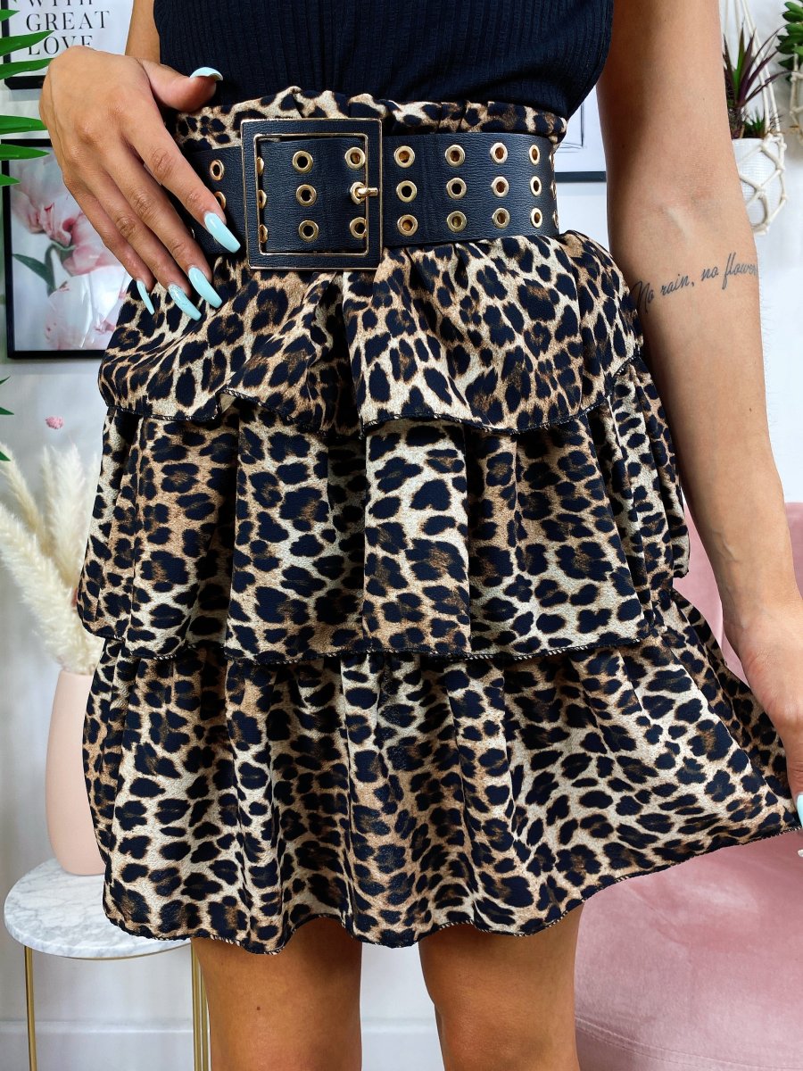 Gonna a balze in tessuto a fantasia. La gonna è dotata di un elastico in vita così da renderla adattabile a tutte le taglie. La gonna è foderata