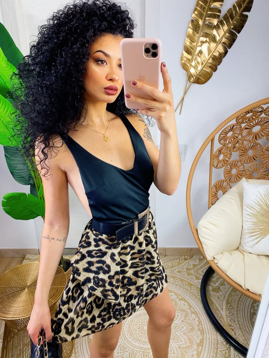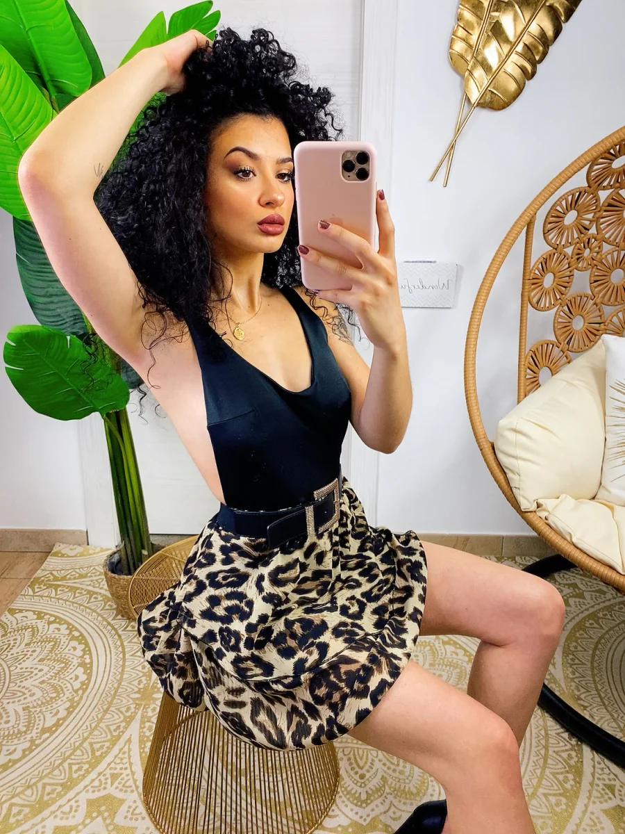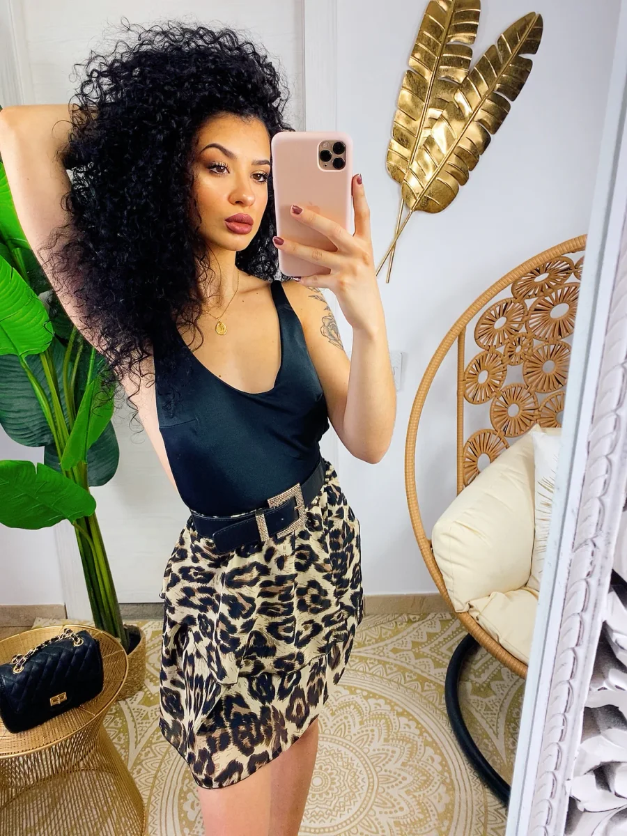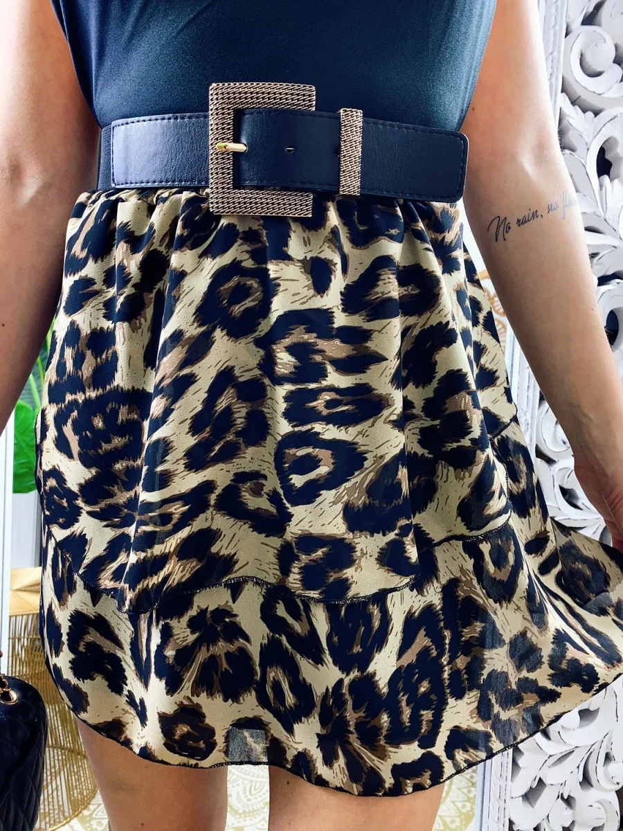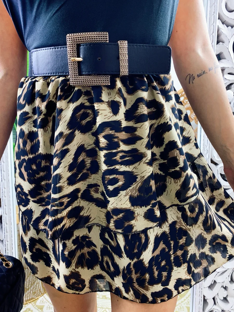 Gonna a balze maculata trama stretta . La gonna è dotata di un elastico in vita così da renderla adattabile a tutte le taglie. La gonna è foderata