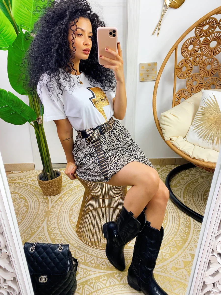 Gonna a balze maculata trama piccola