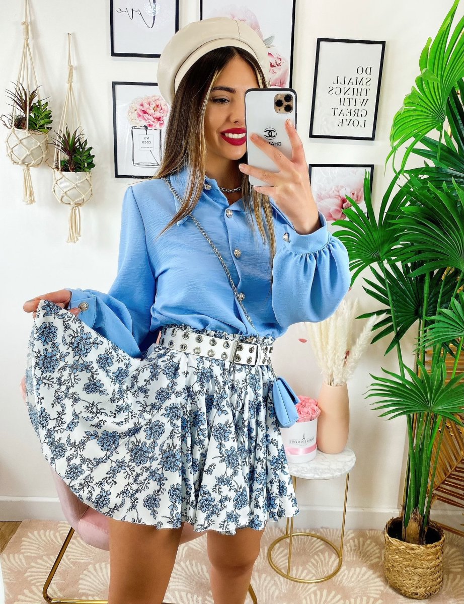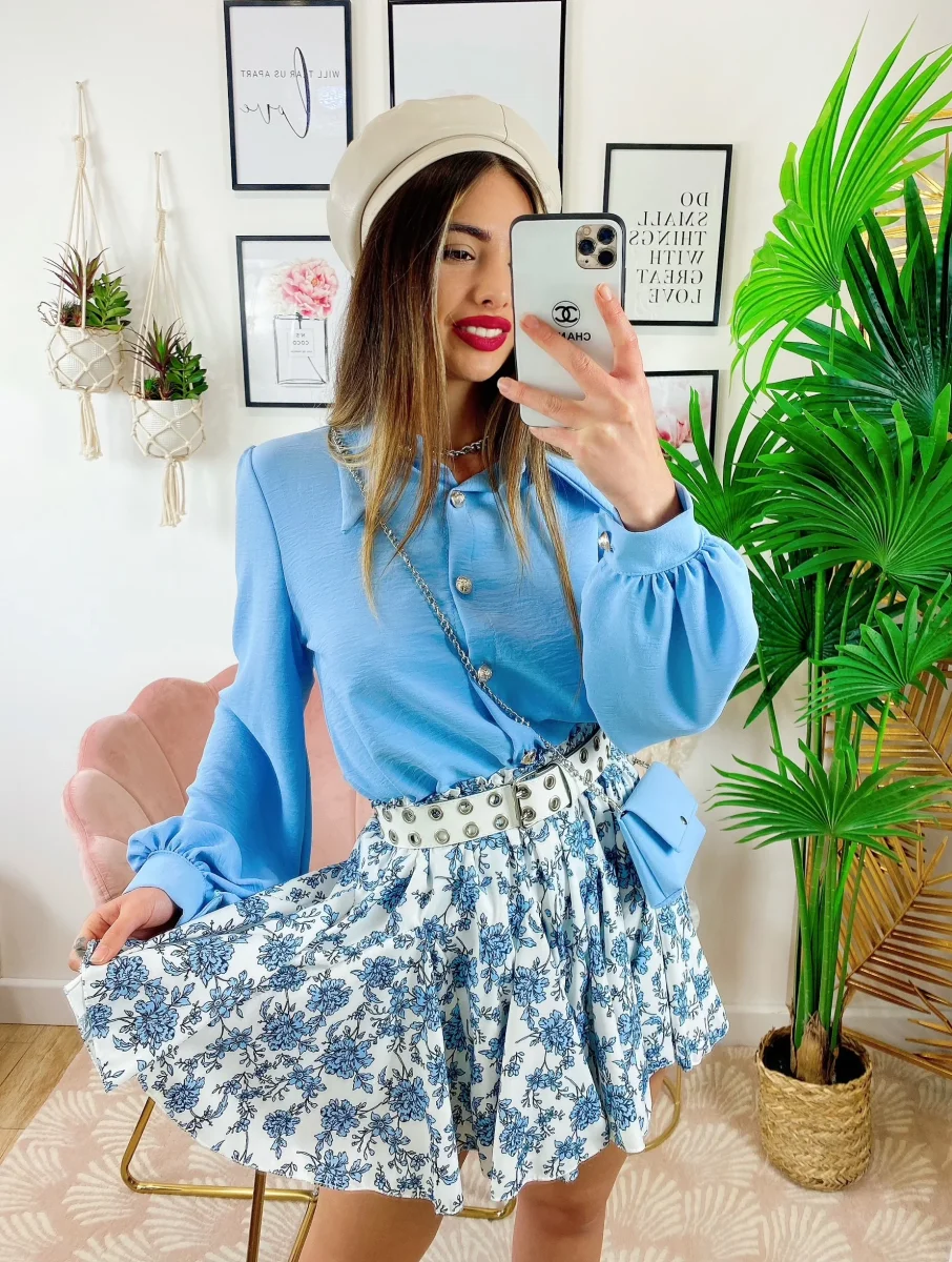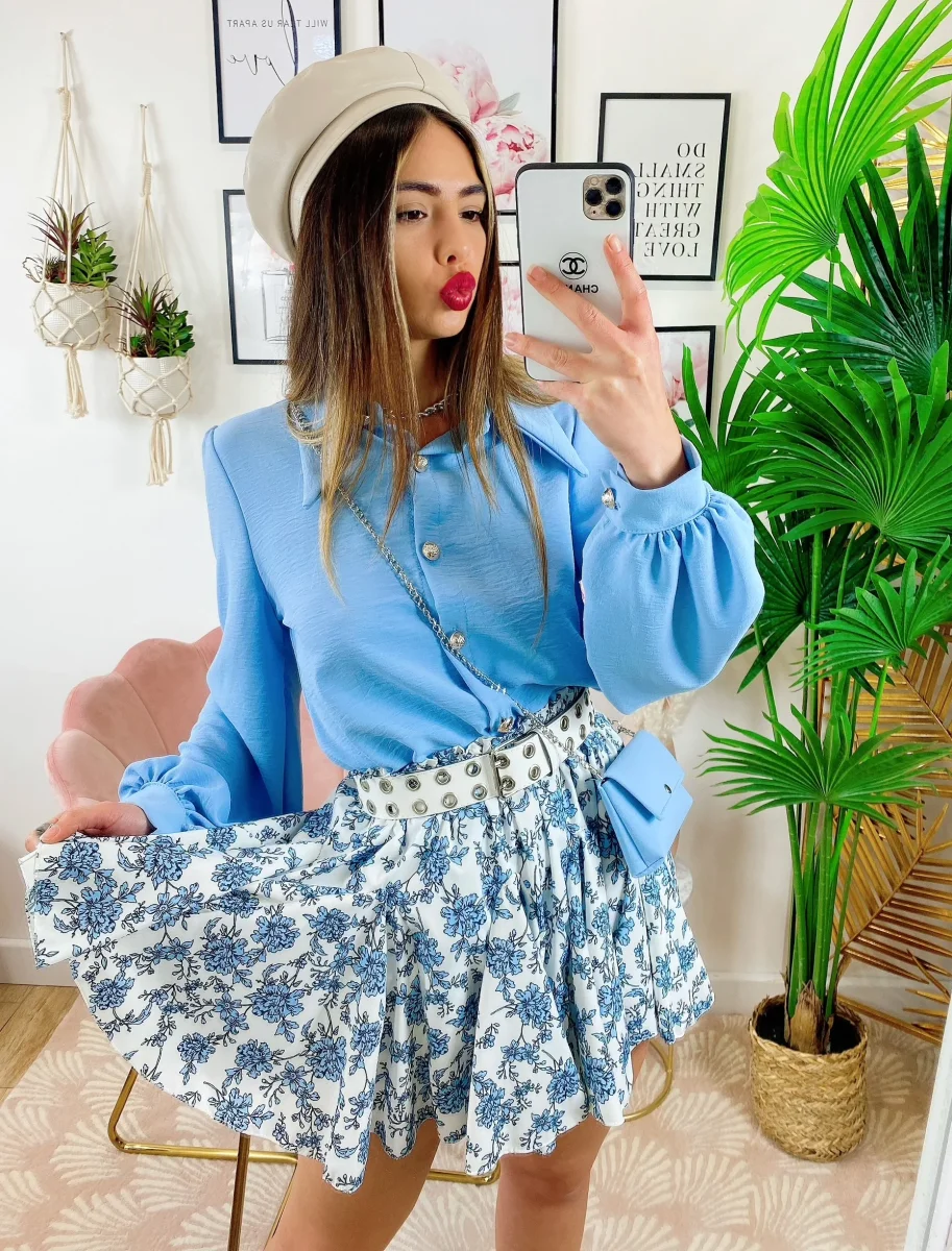 Gonna a fiorellini celeste Elasticizzata e comoda.