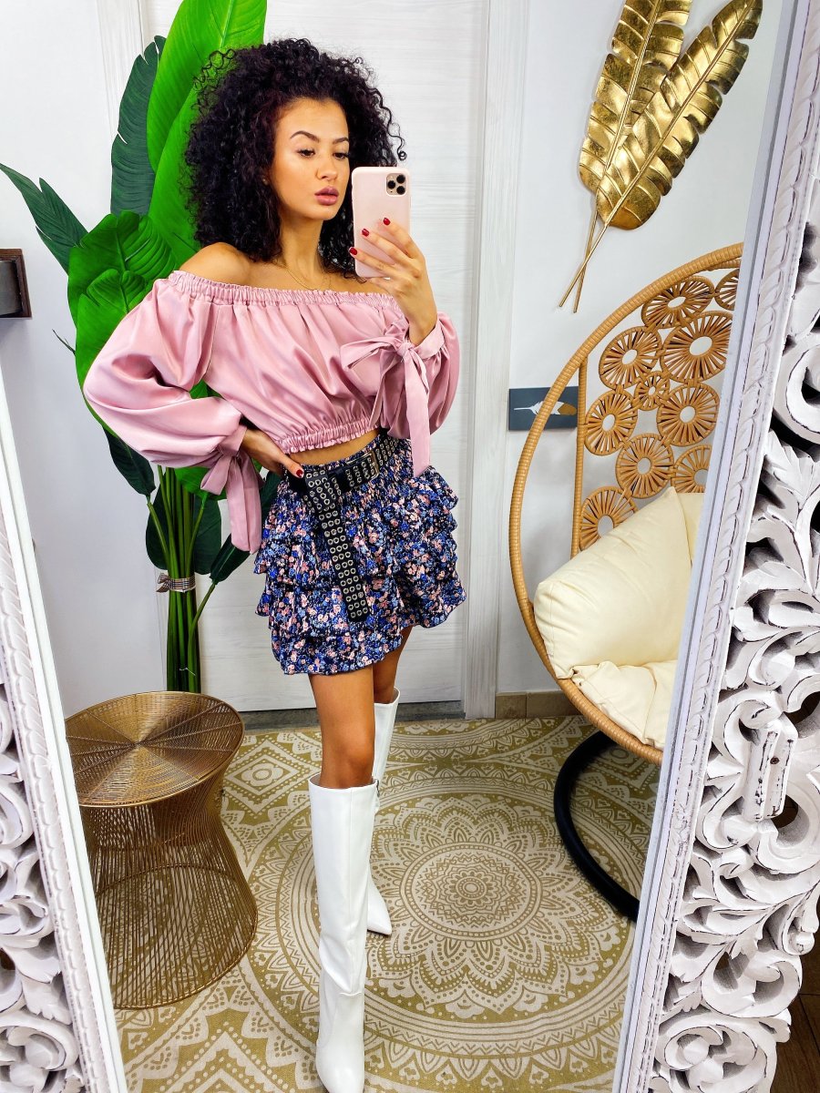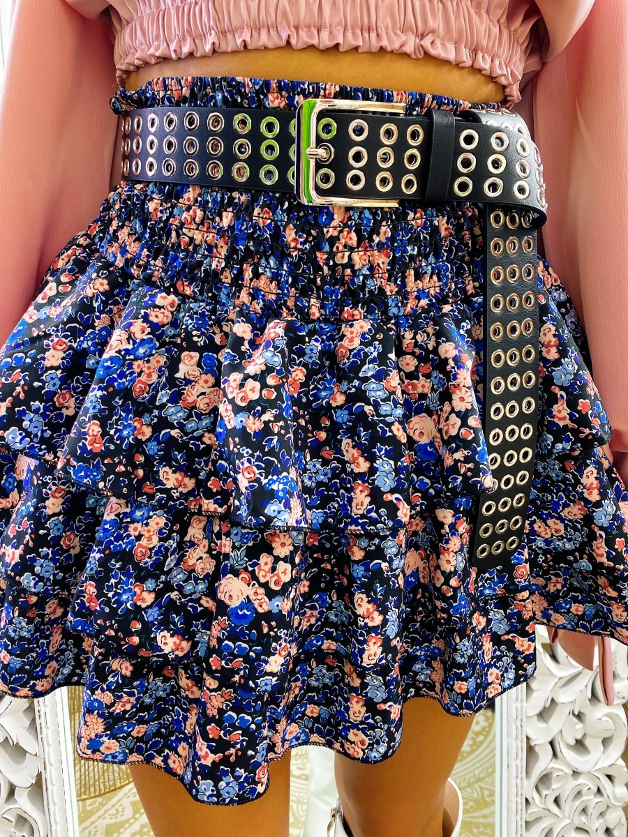 Gonna a fiori azzurri e rosa