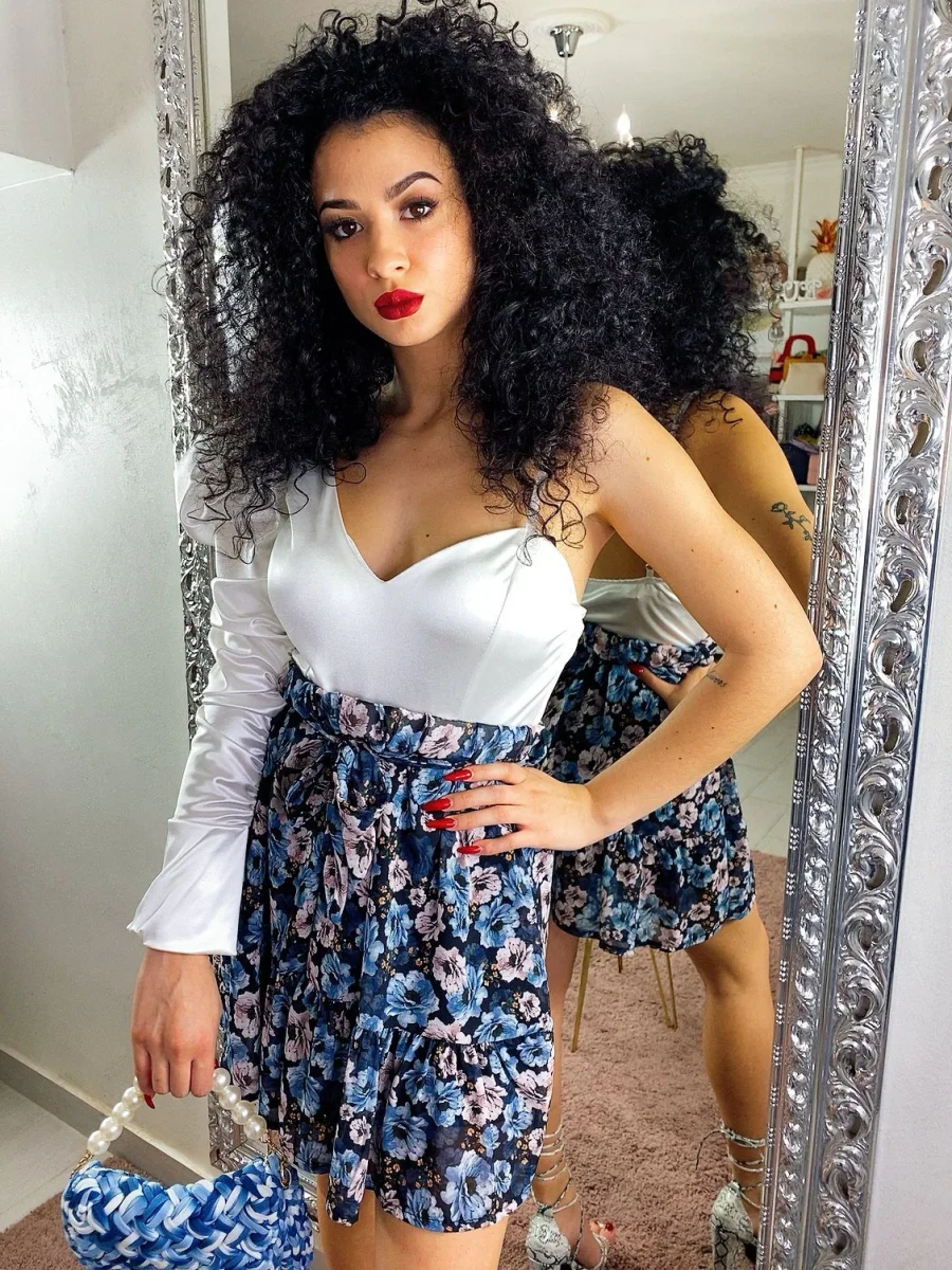 Gonna foderata in tessuto leggero. Elastico in vita e cintura nello stesso tessuto.