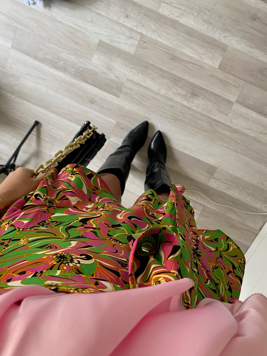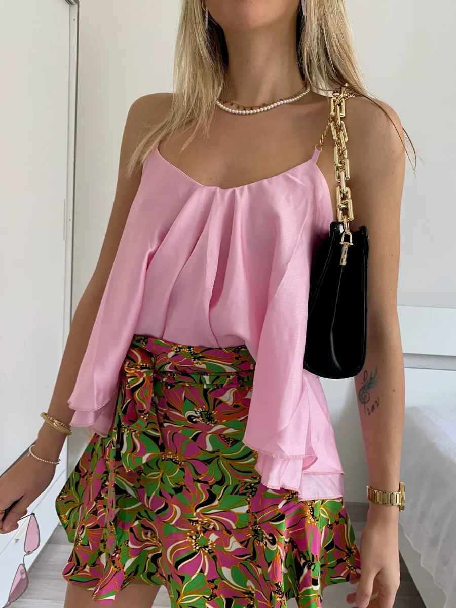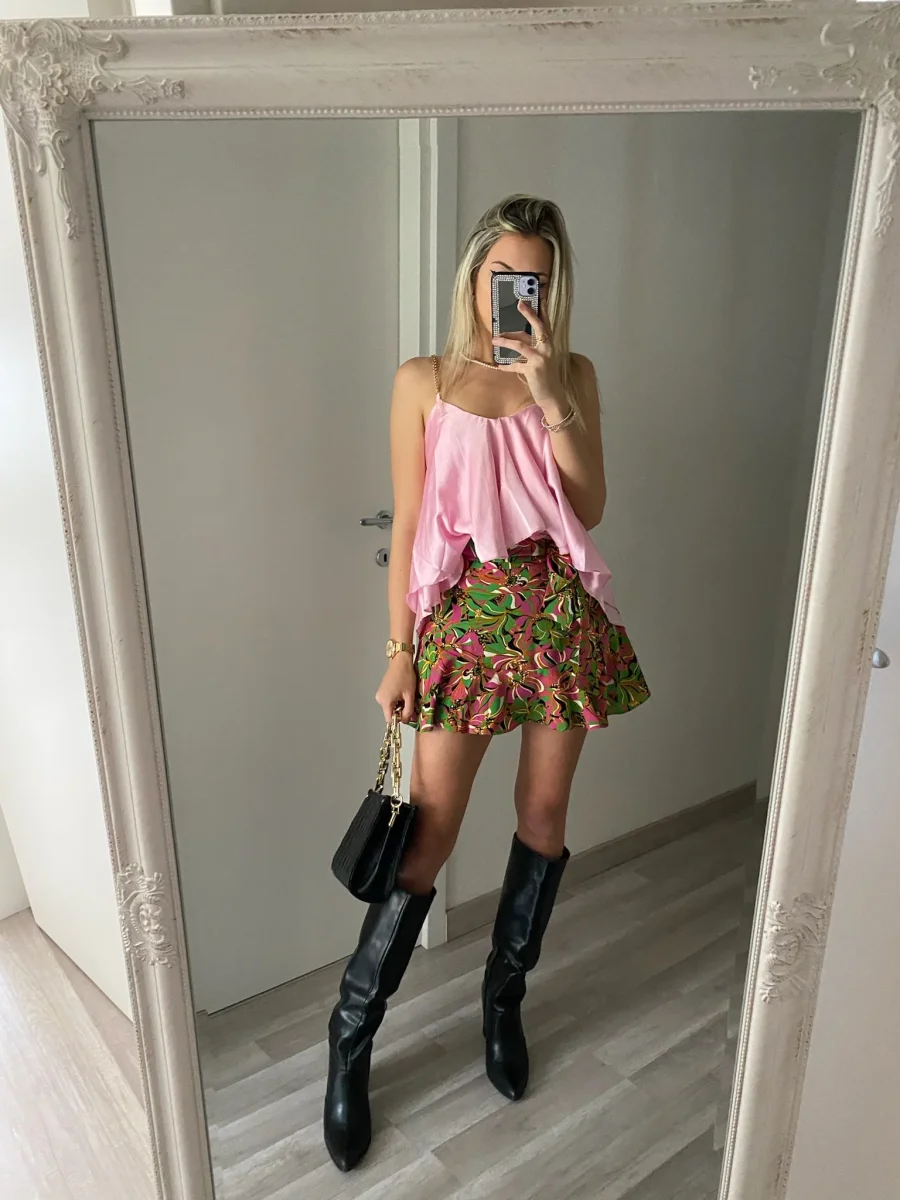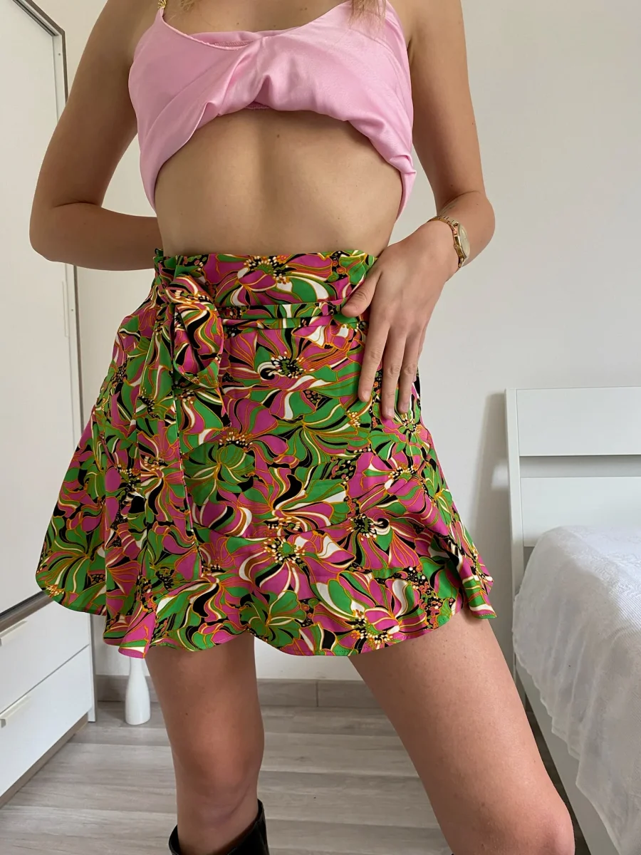 Gonna con taglio irregolari con fantasia floreale con cintura in vita tono su tono