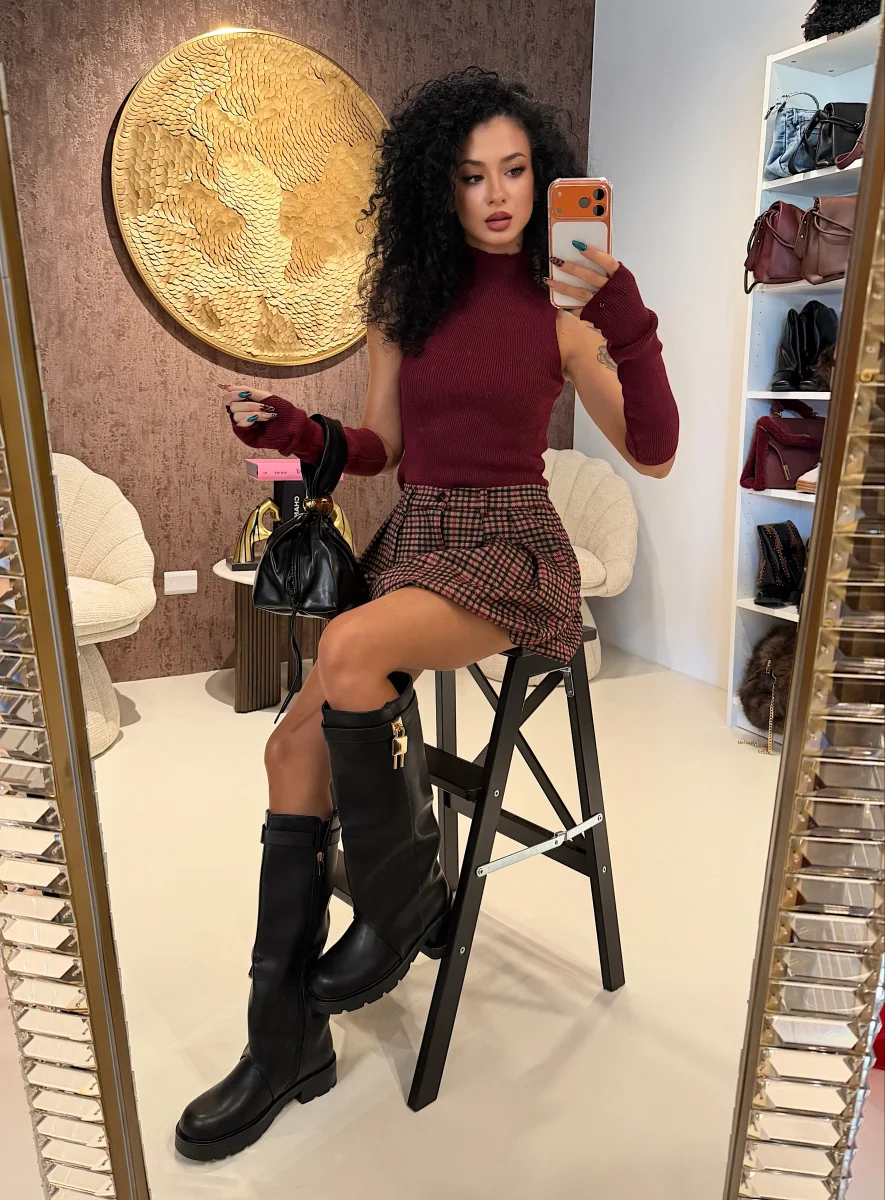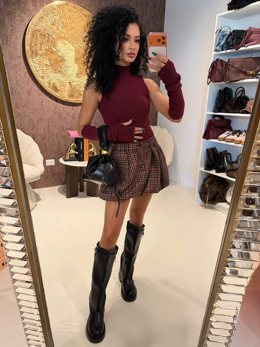 Gonna foderata con elastico in vita, zip e bottoncino. Effetto palloncino