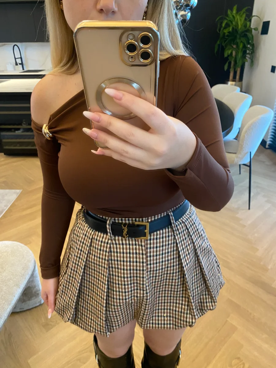 Gonna foderata con elastico in vita, zip e bottoncino. Effetto palloncino
