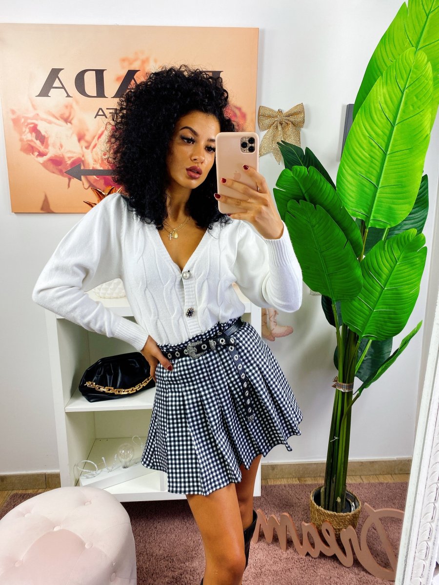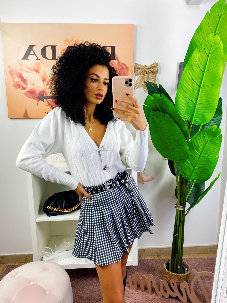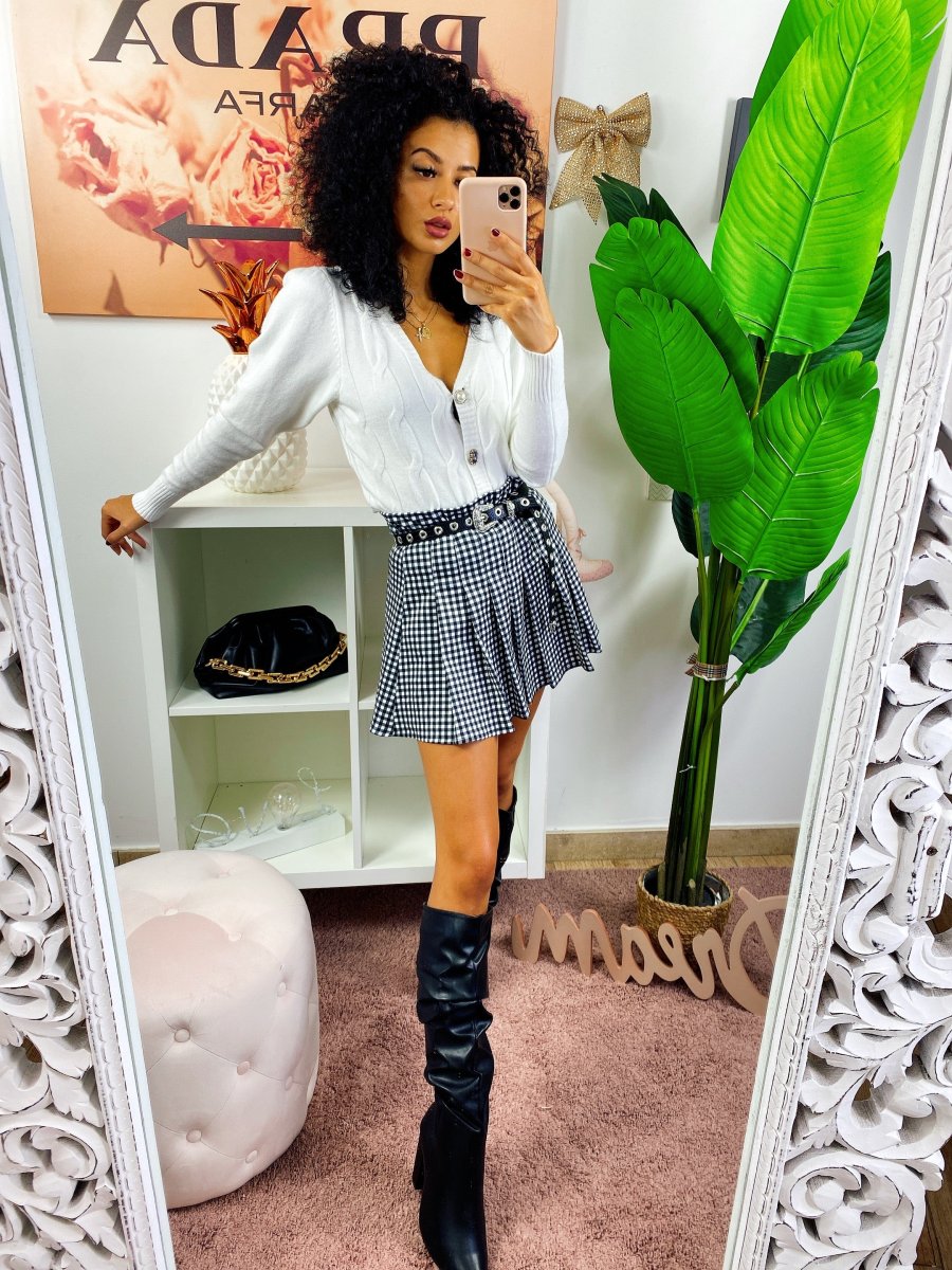 Gonna elasticizzata in vita con pieghine. Fodera a pantaloncino.